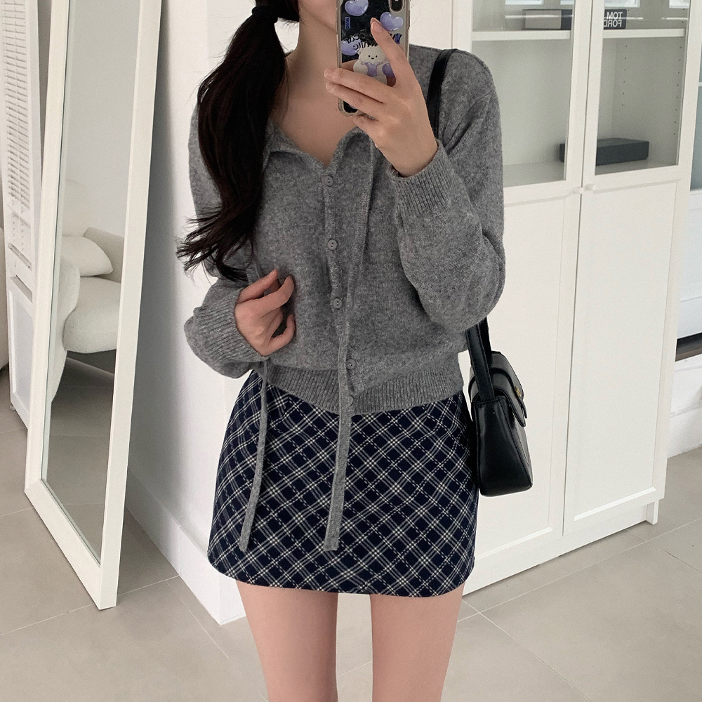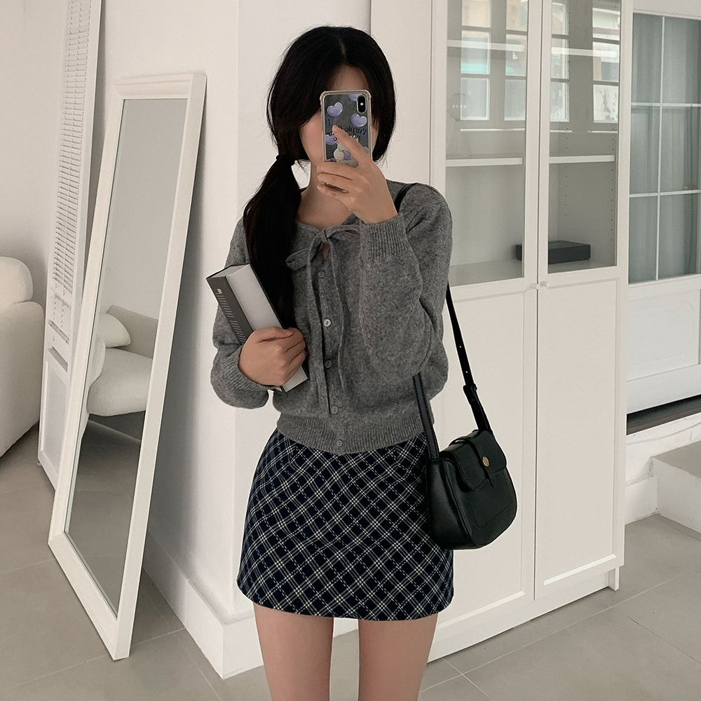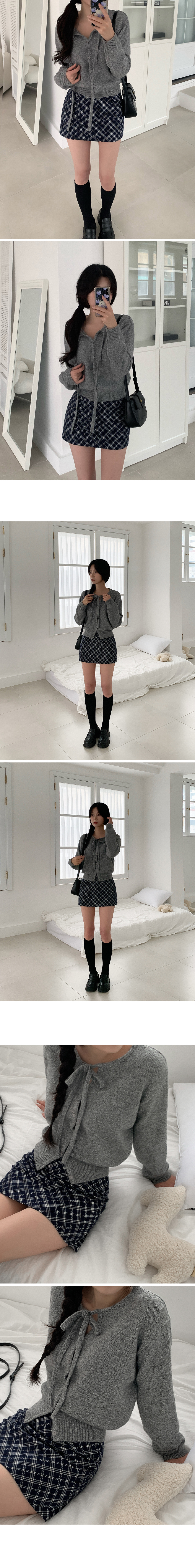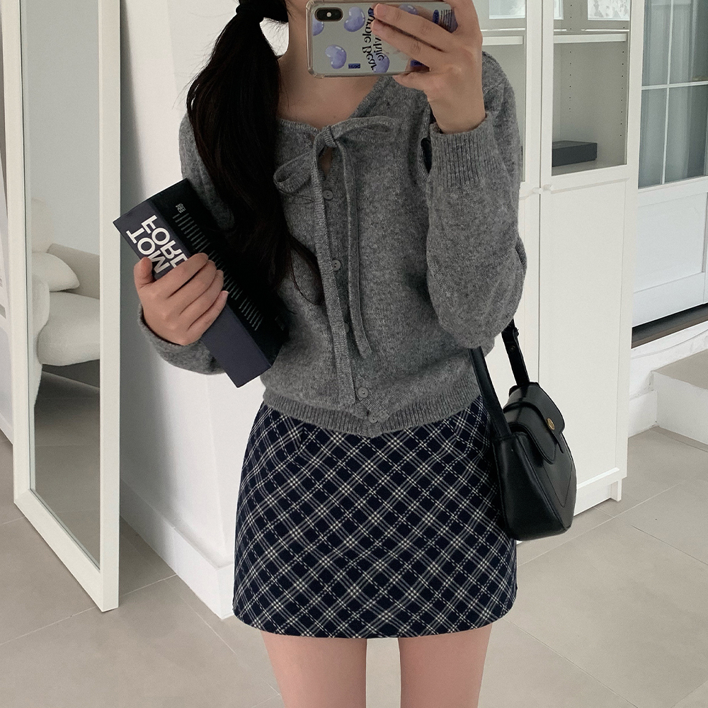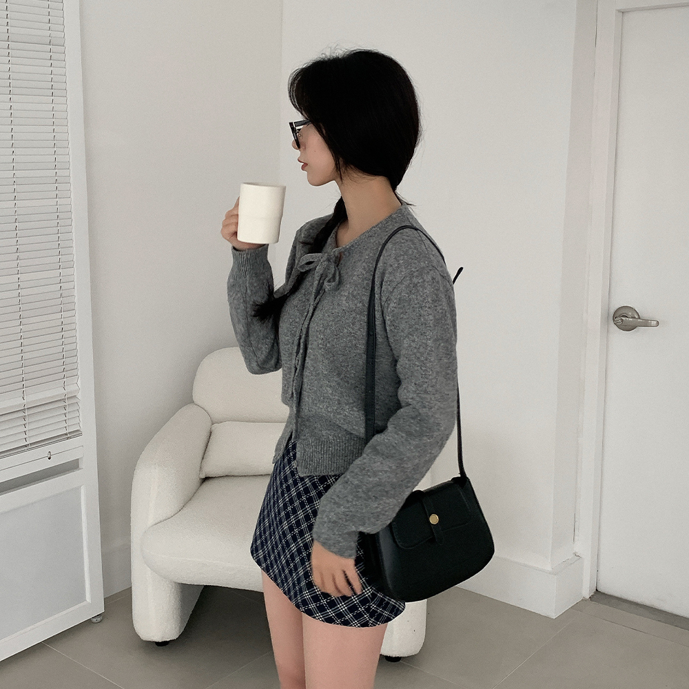 リボン付きラウンドニットカーディガン