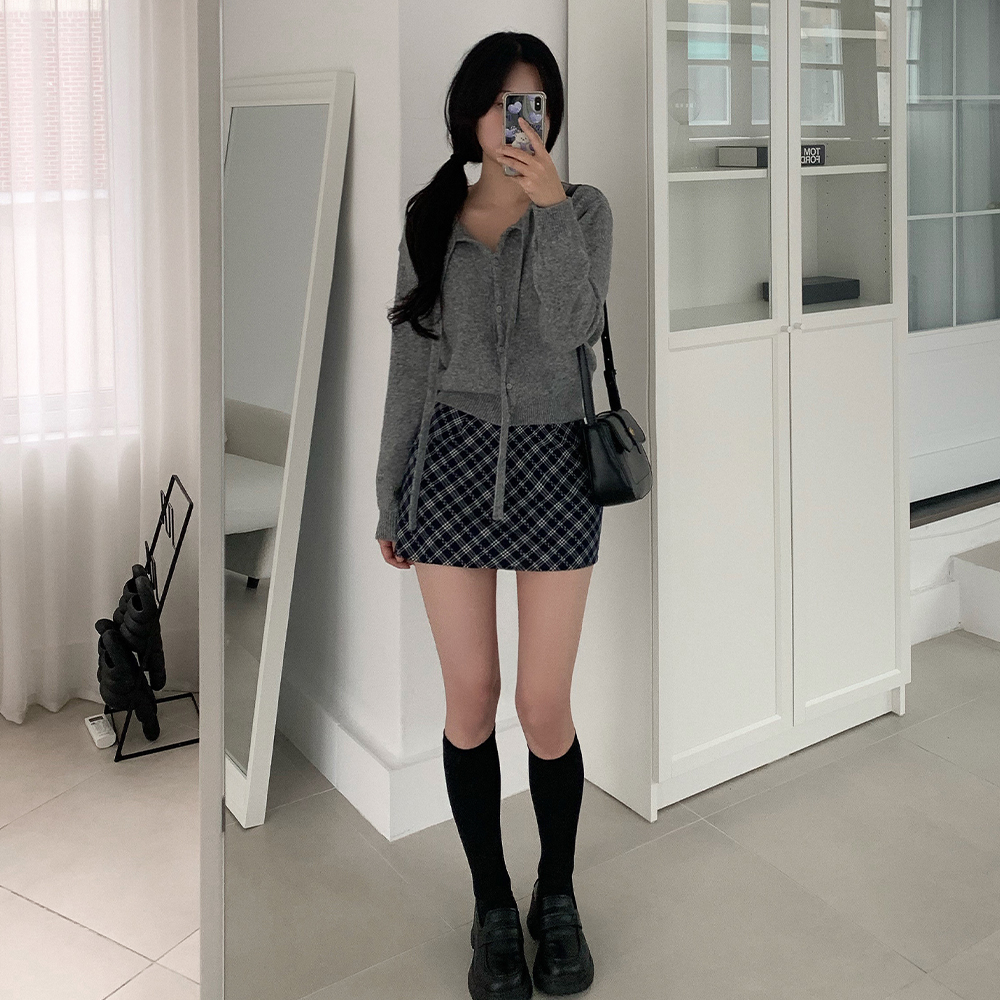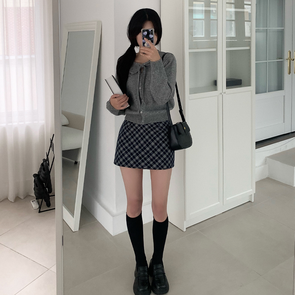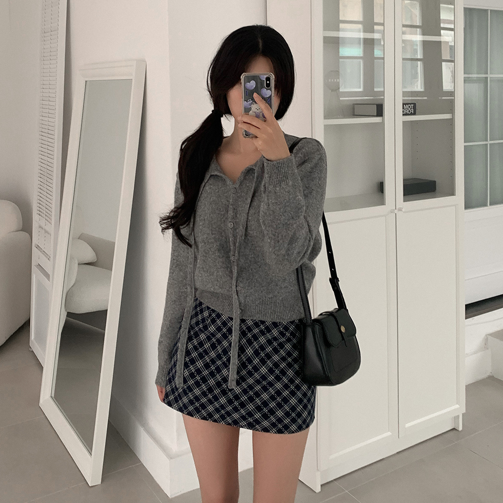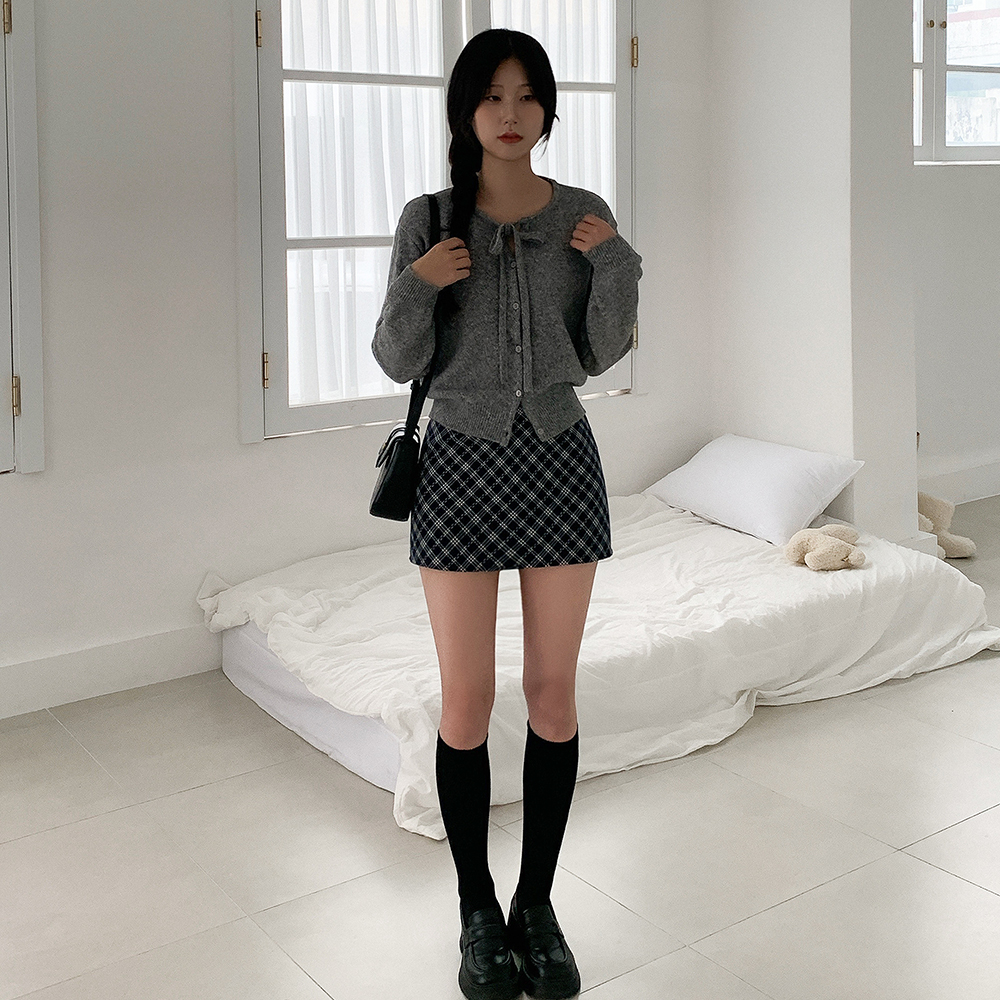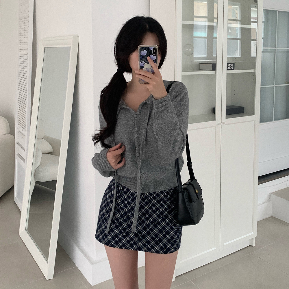 リボン付きラウンドニットカーディガン