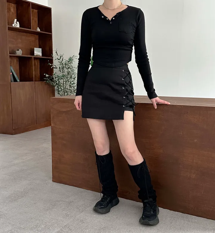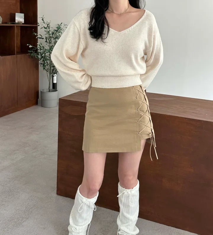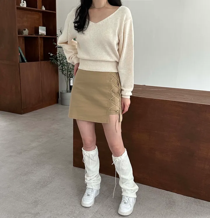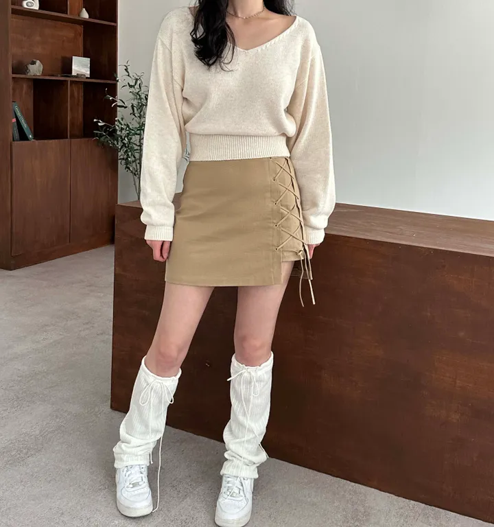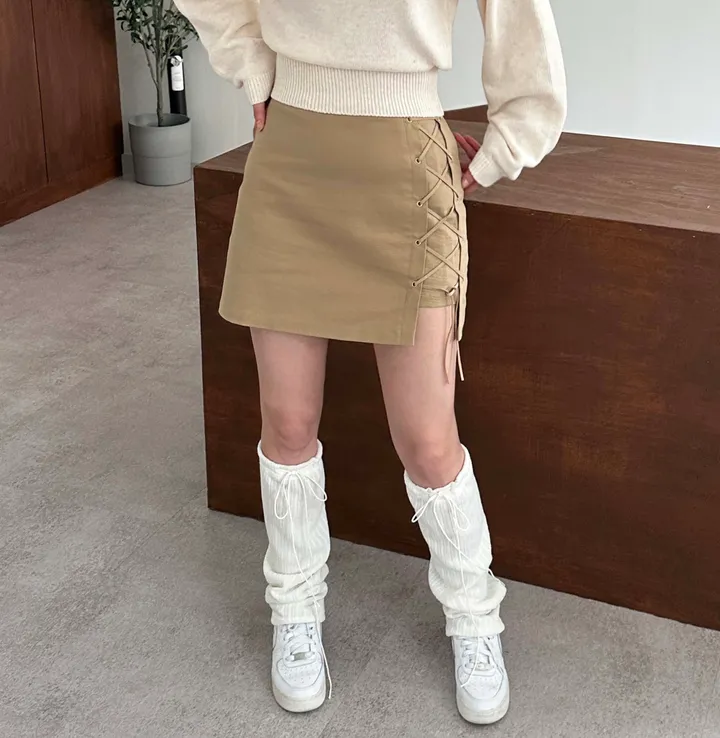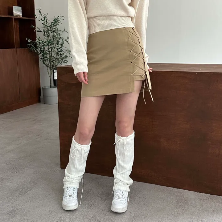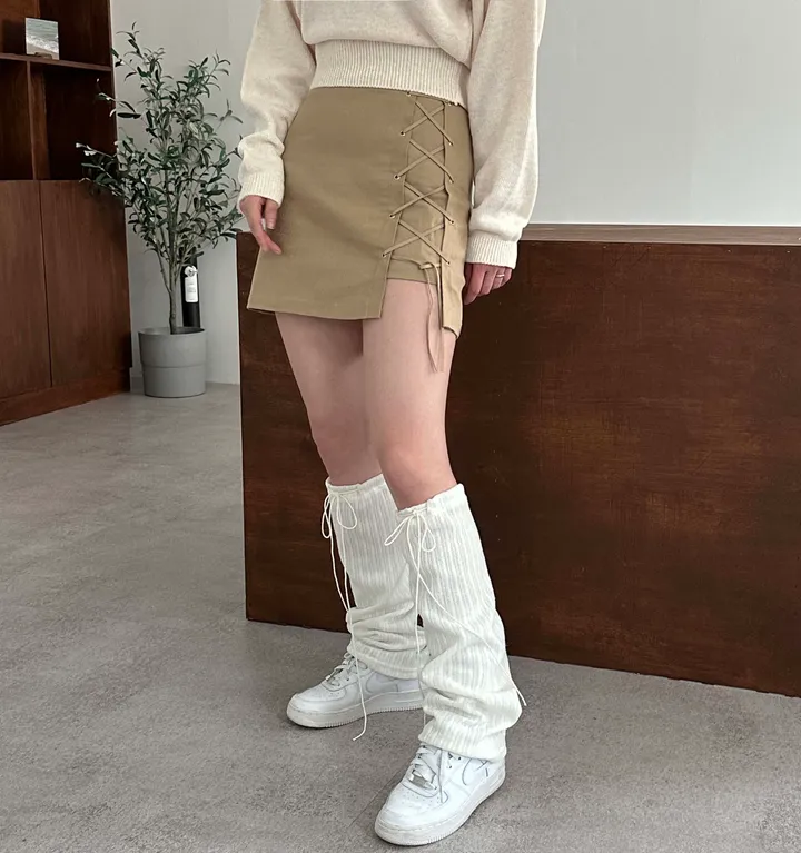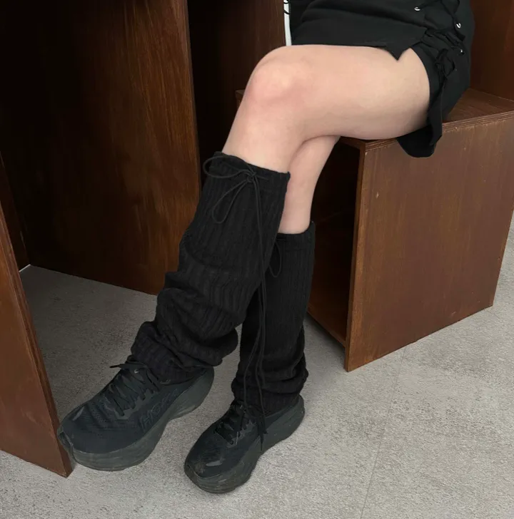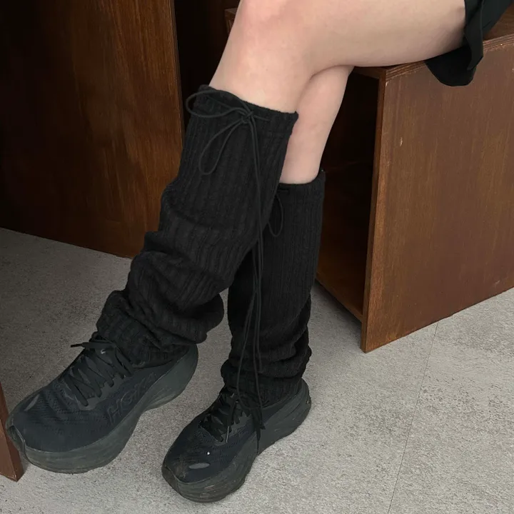 リボン紐リブレッグウォーマー(3color)
