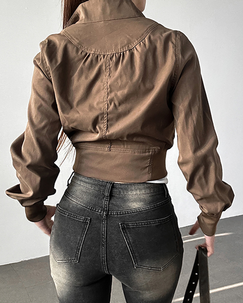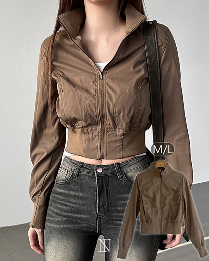ハイネックウエストゴムショート丈ブルゾン
