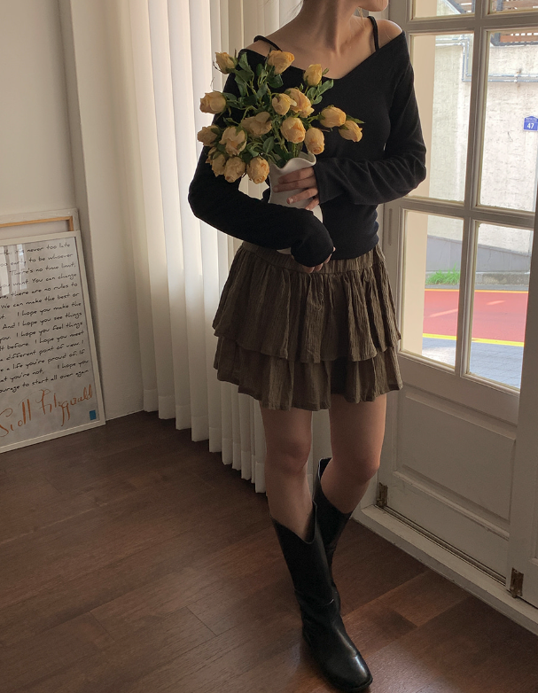 肩紐オフショル長袖Tシャツ