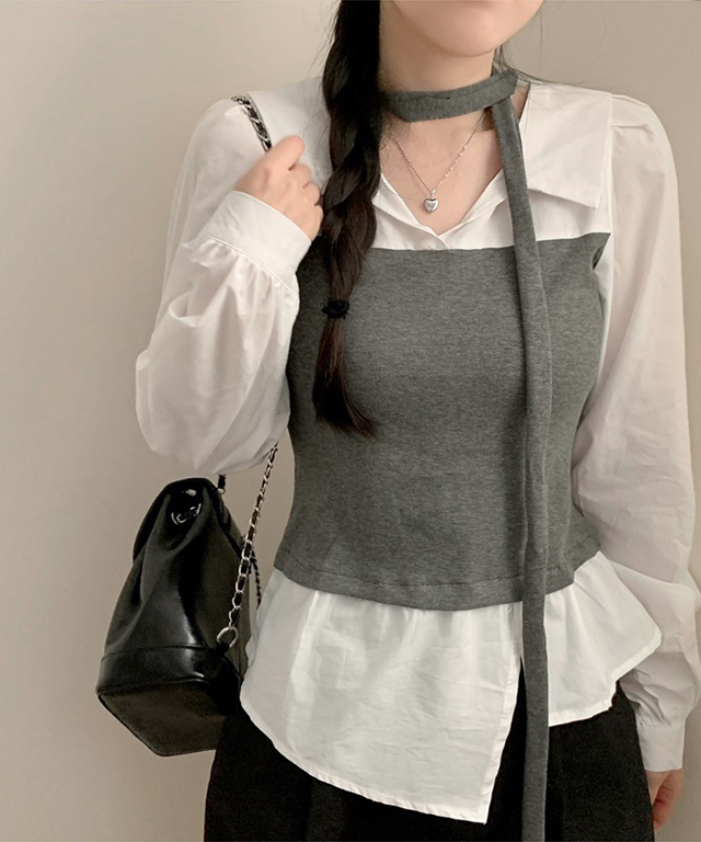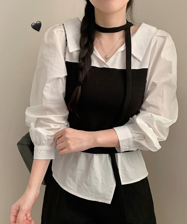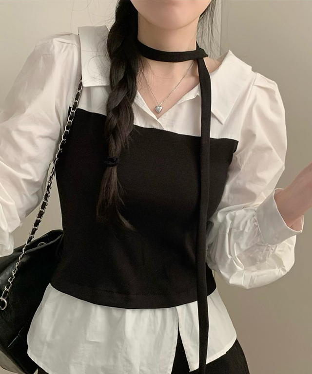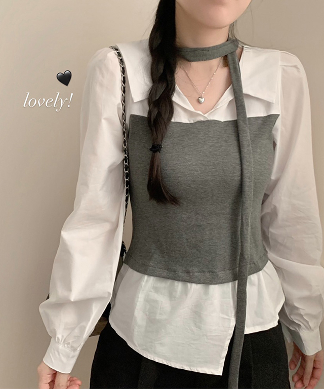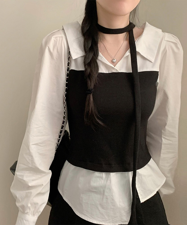 [SET](2color)オープンカラービスチェ&シャツセット