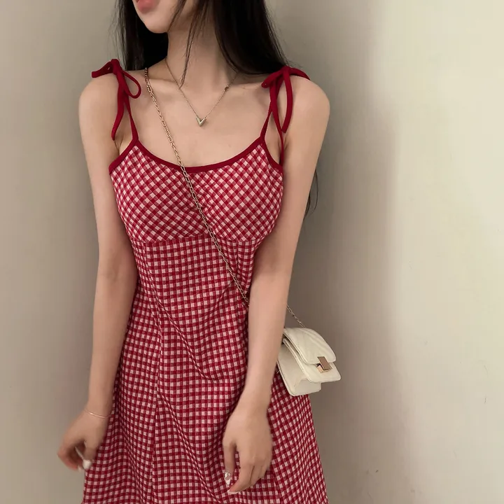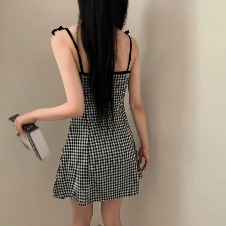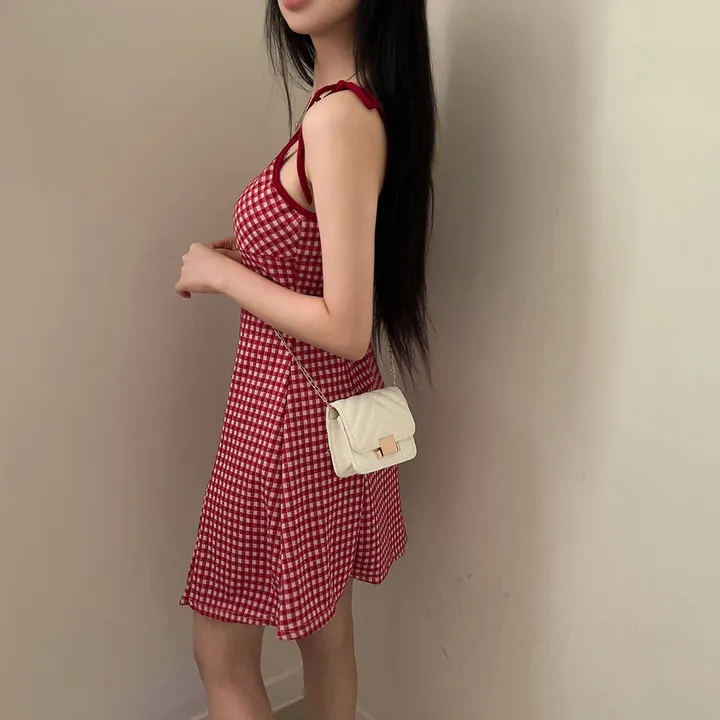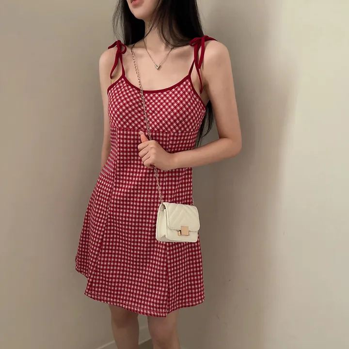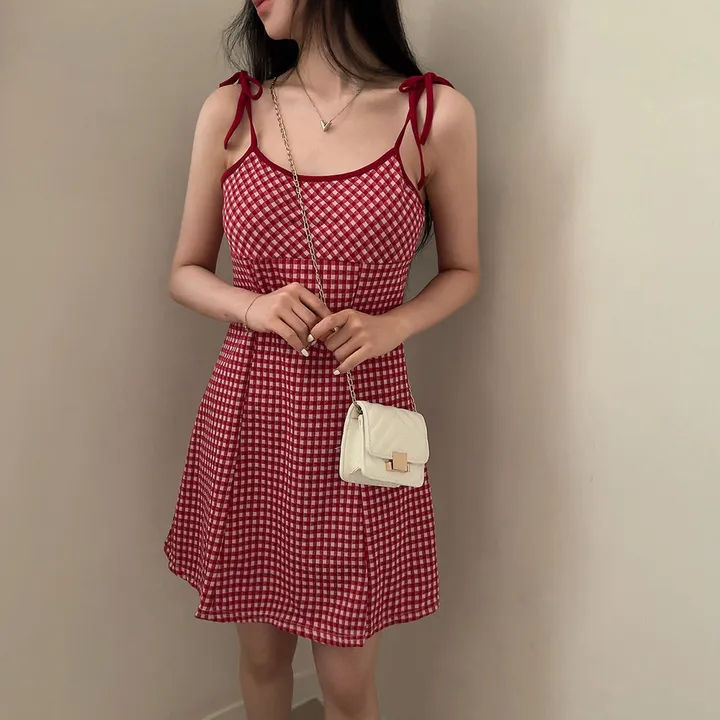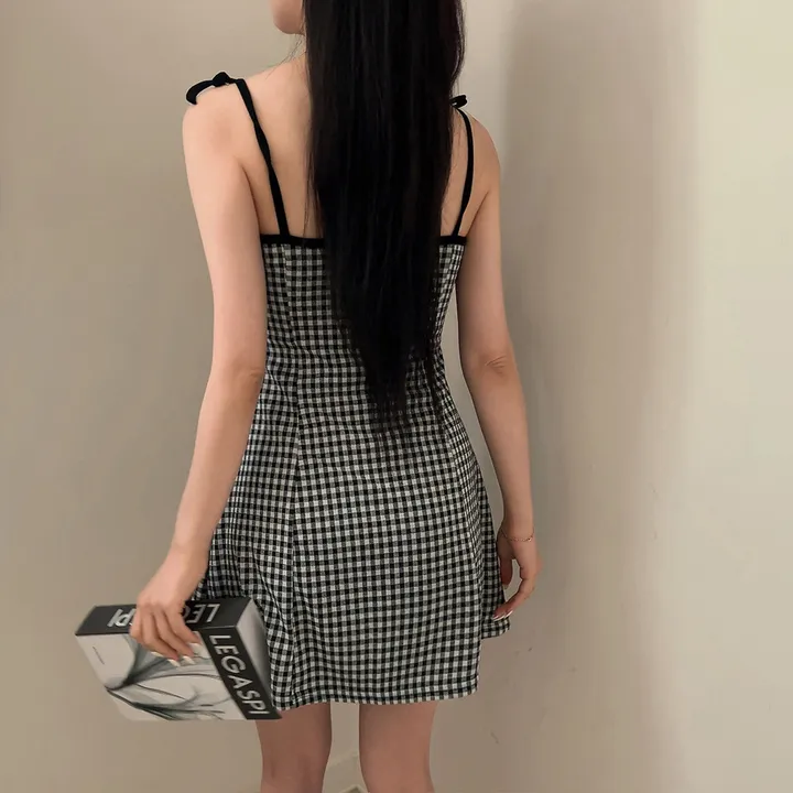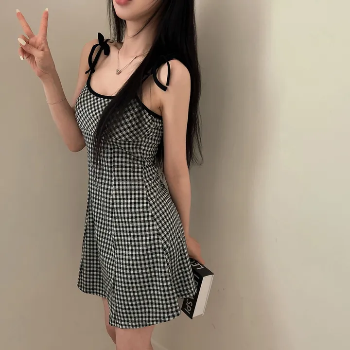 チェックリボンキャミソールミニワンピース