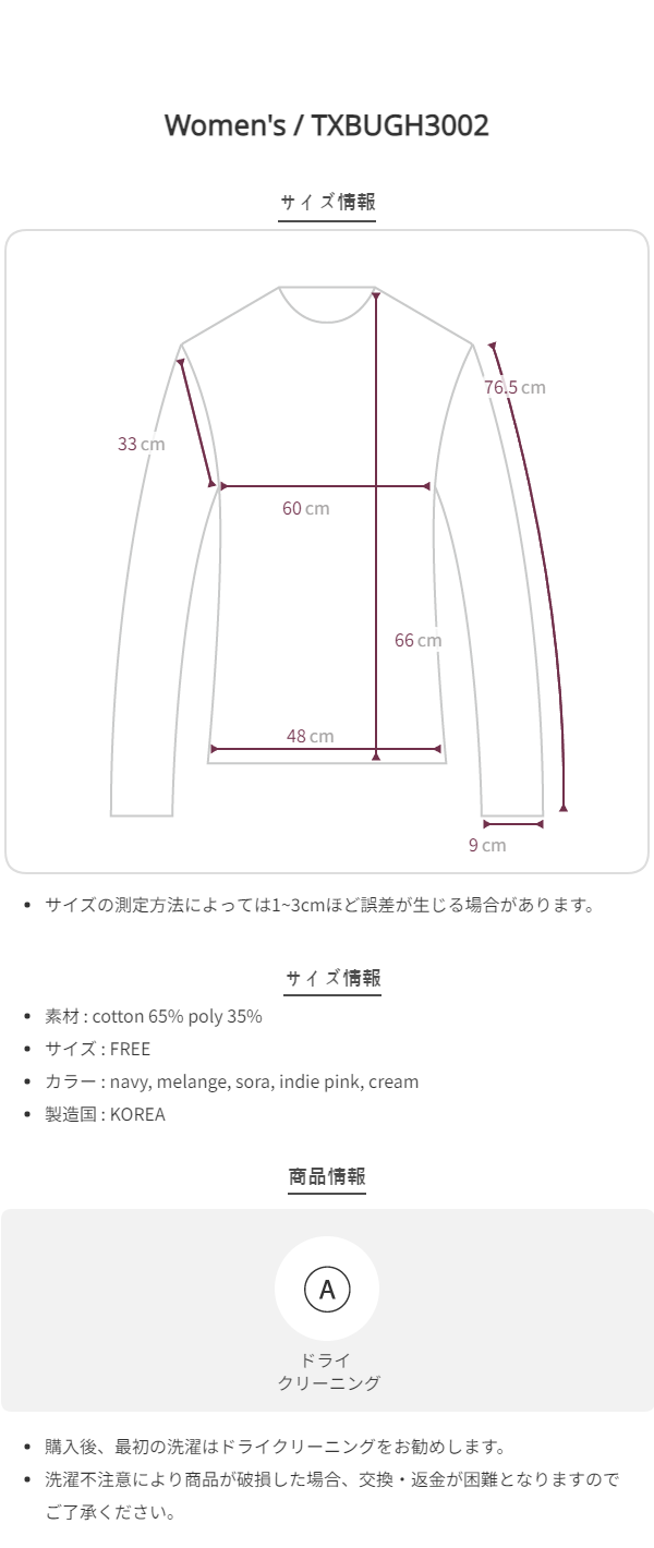 CREAM / INDIE PINK / SORA / MELANGE / NAVY