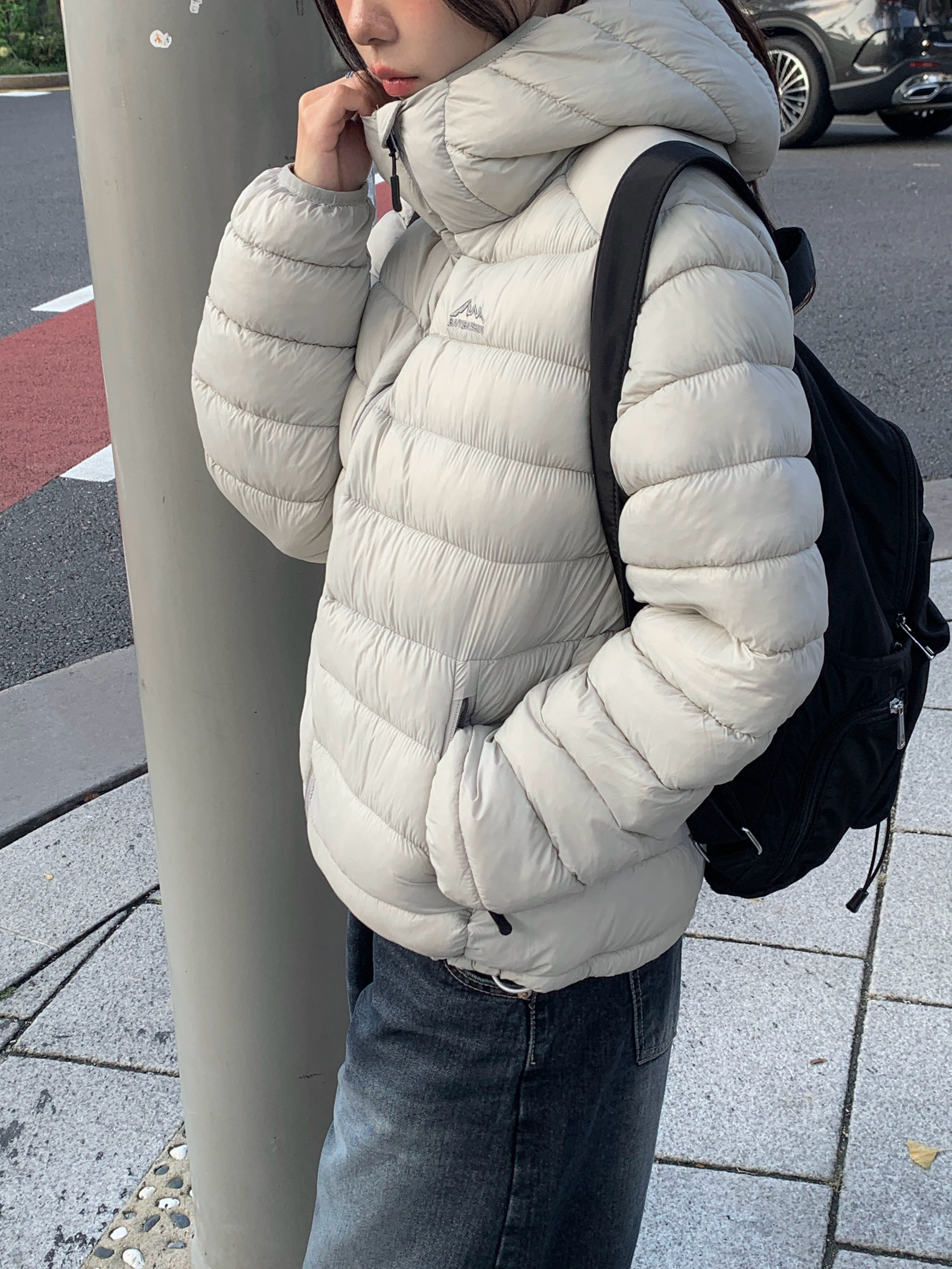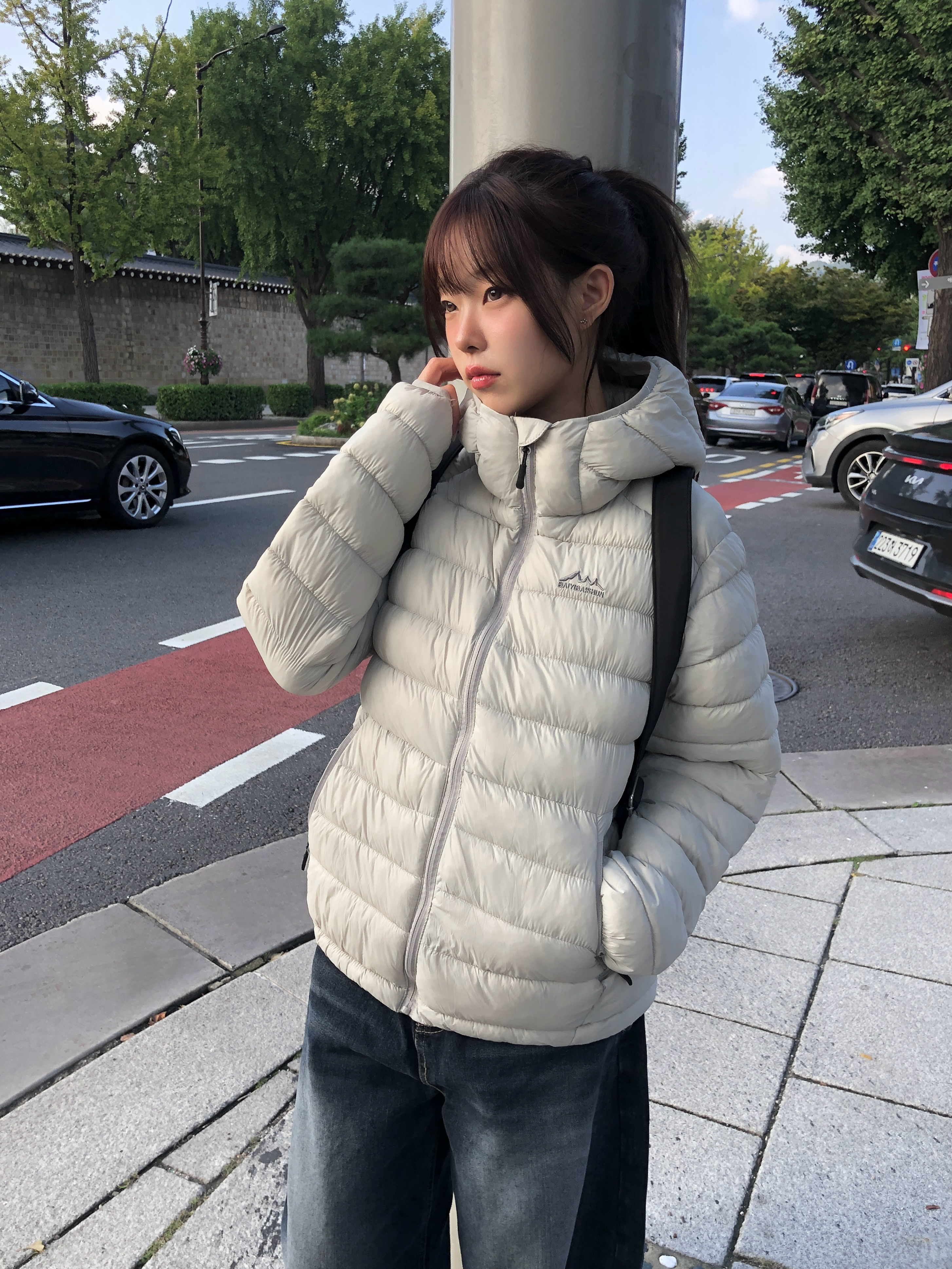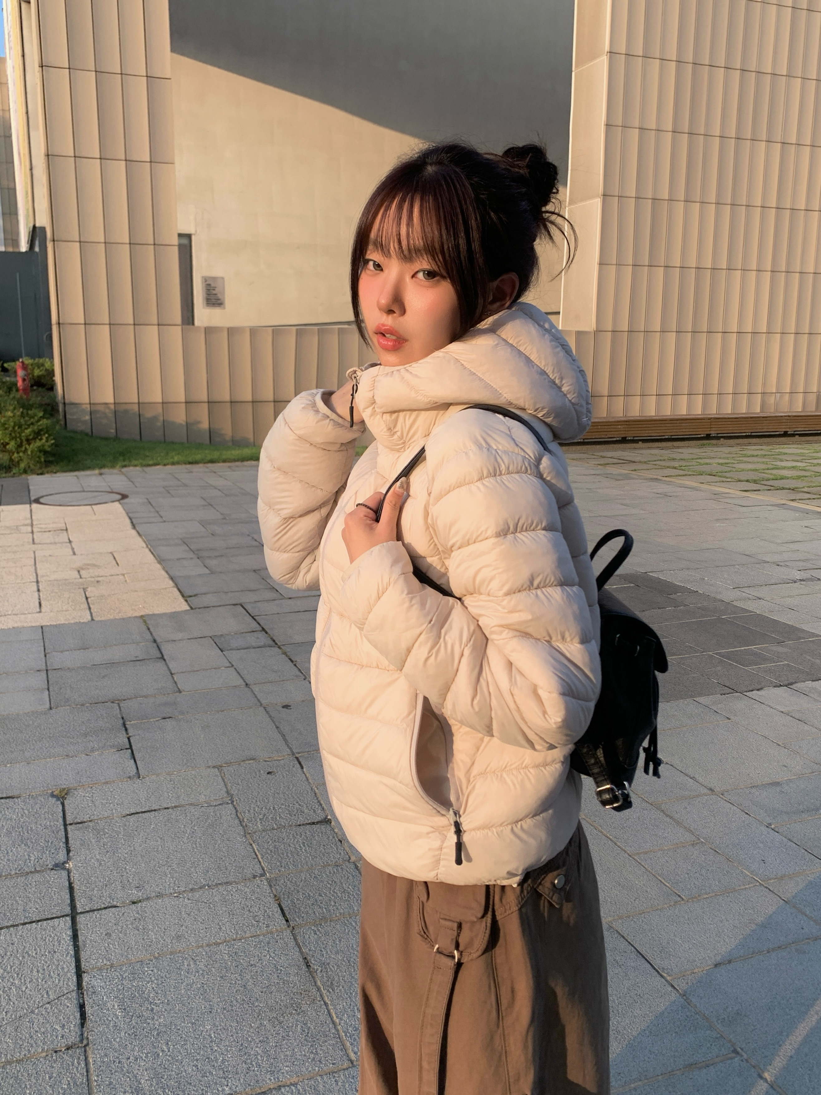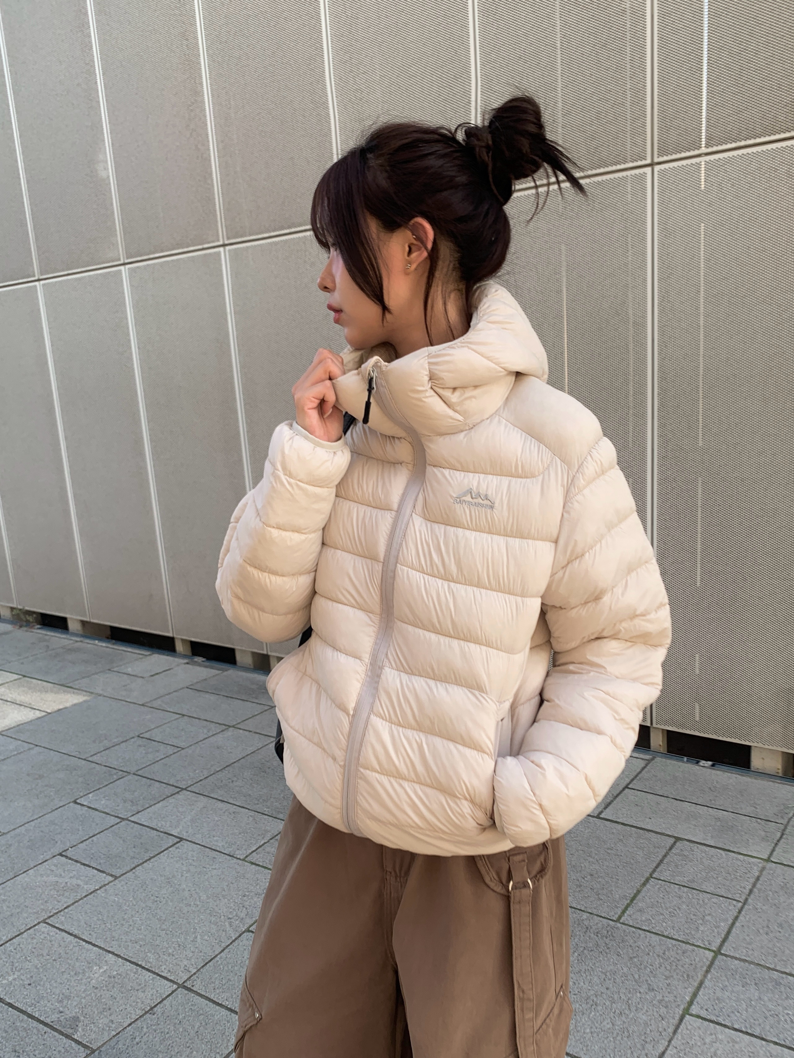 裾ドロストウェルロンフード軽量ダウンジャケット