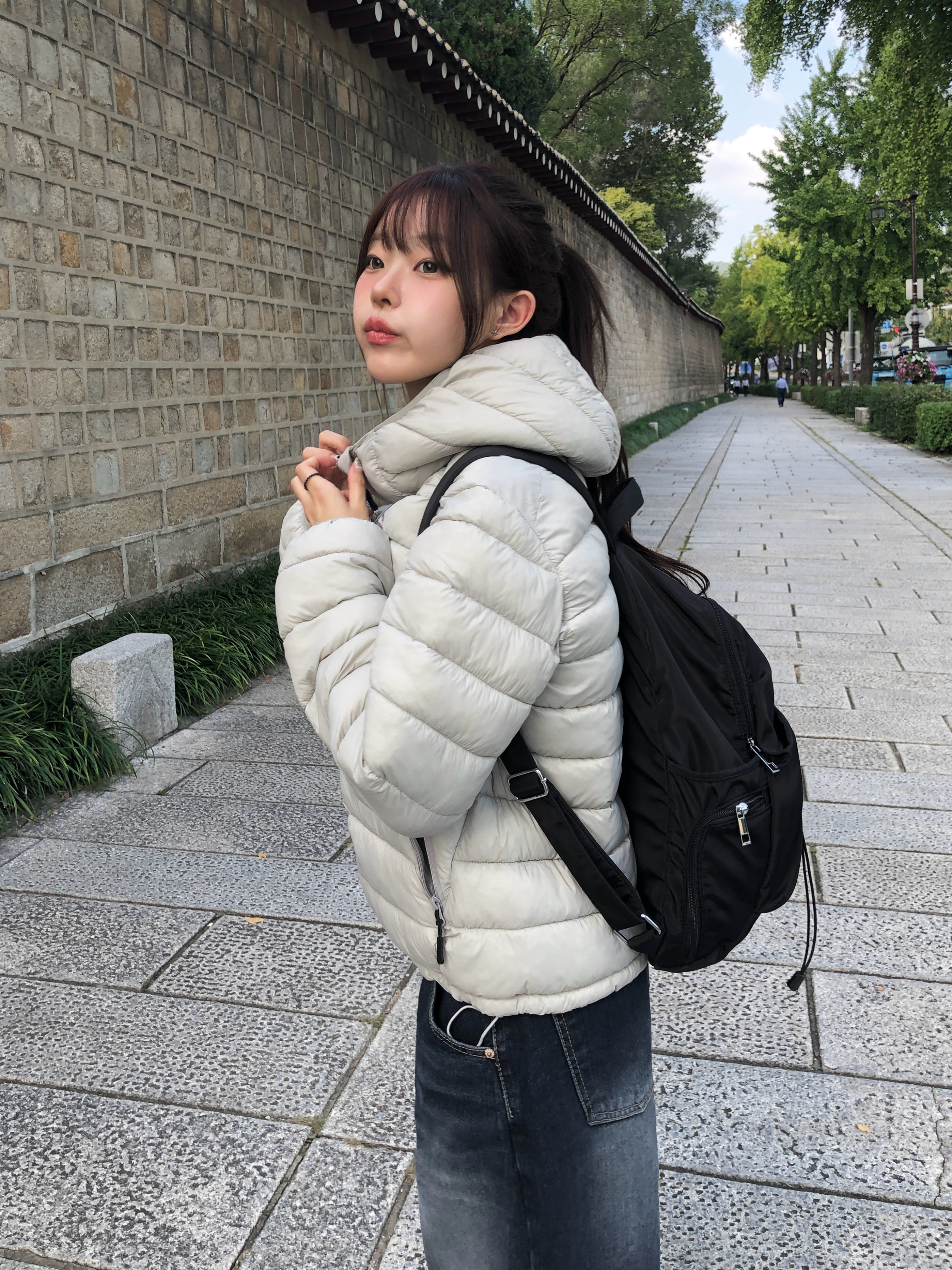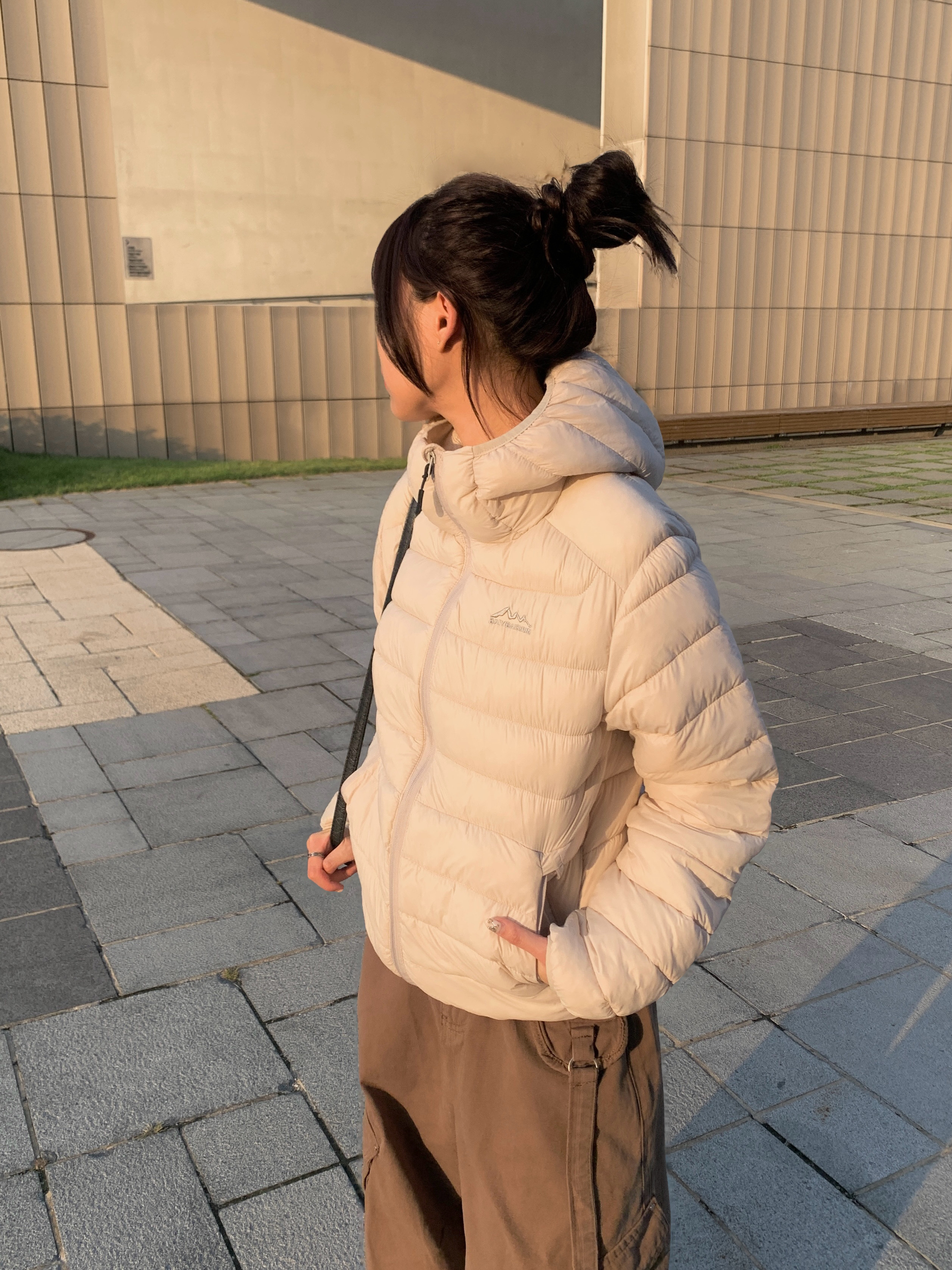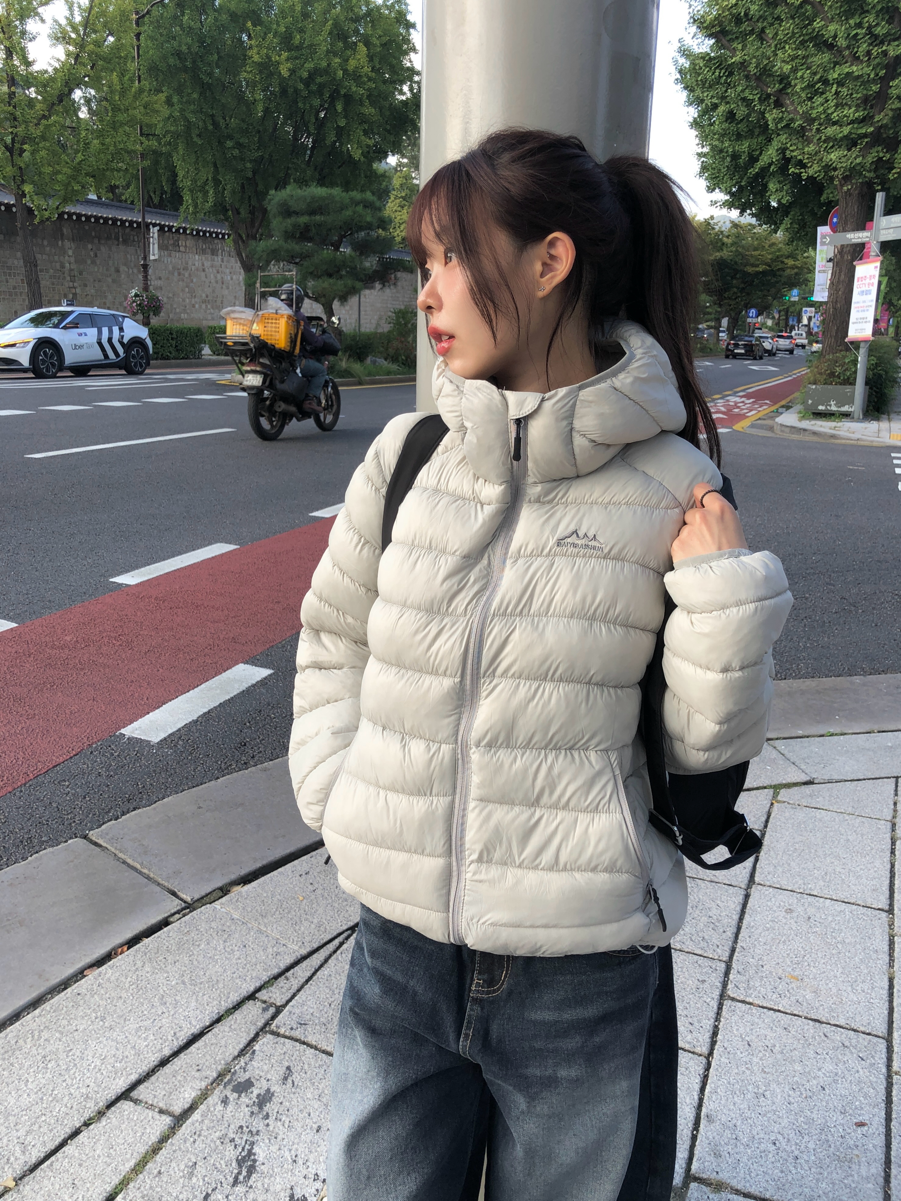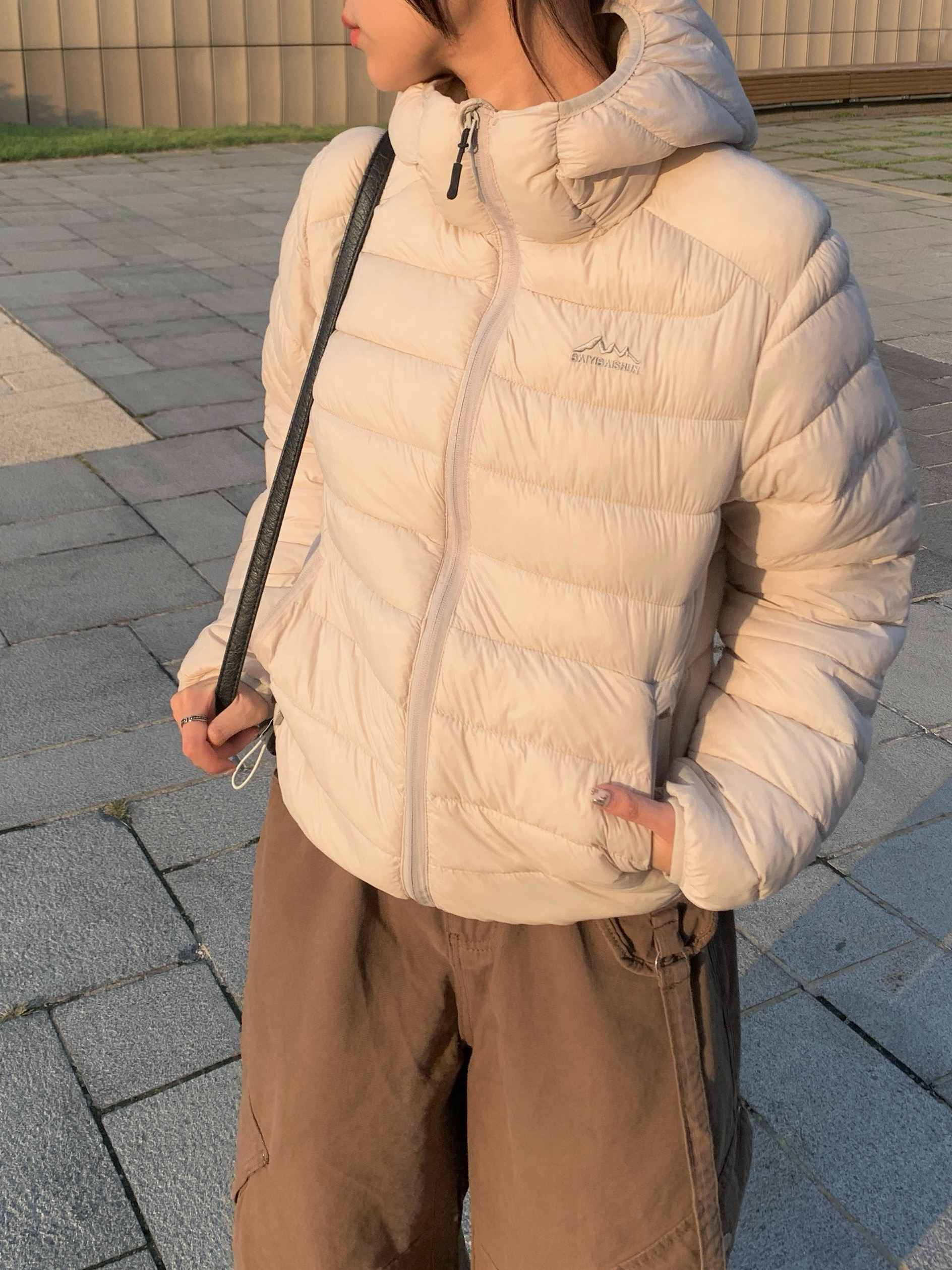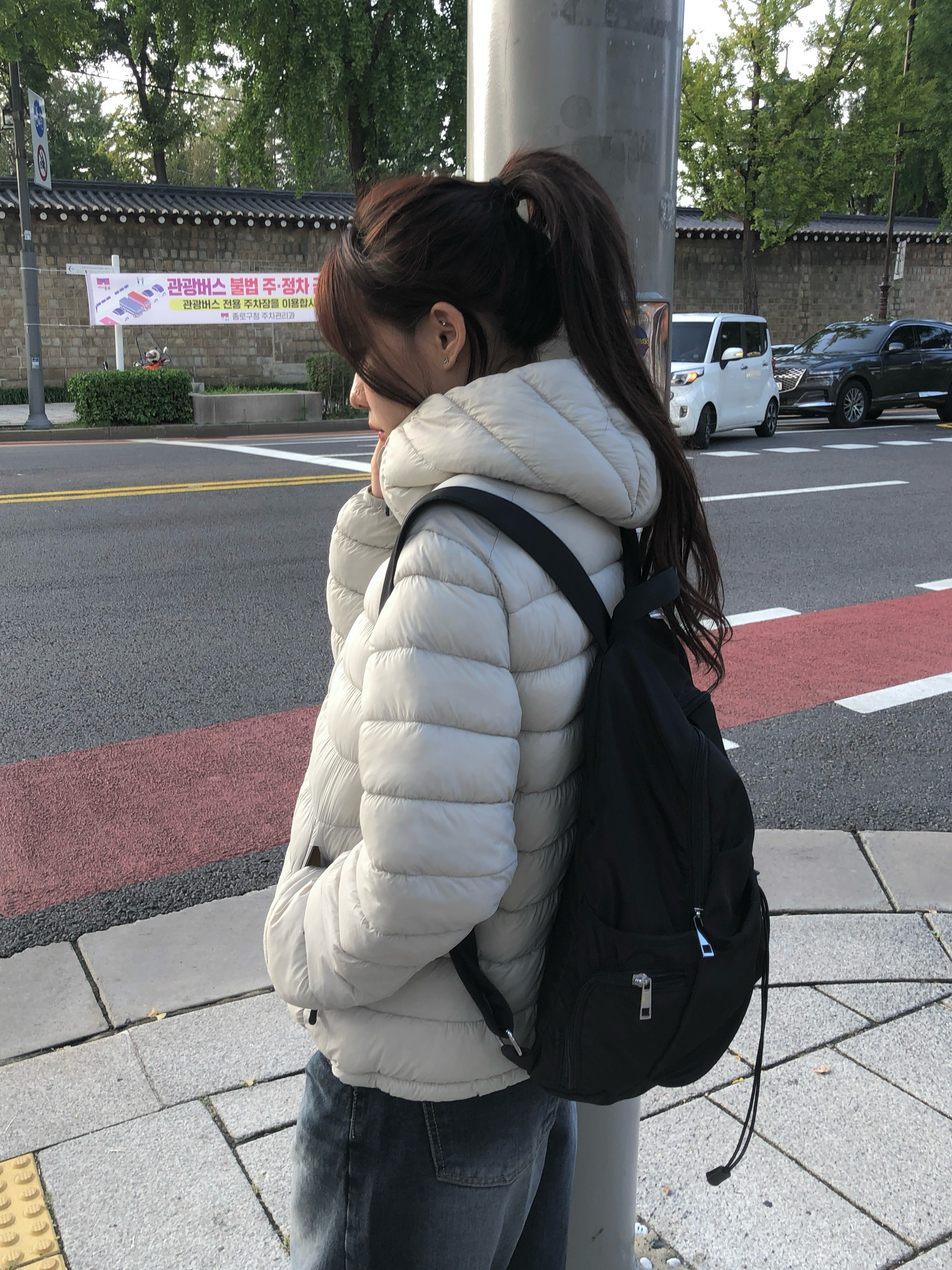 裾ドロストウェルロンフード軽量ダウンジャケット