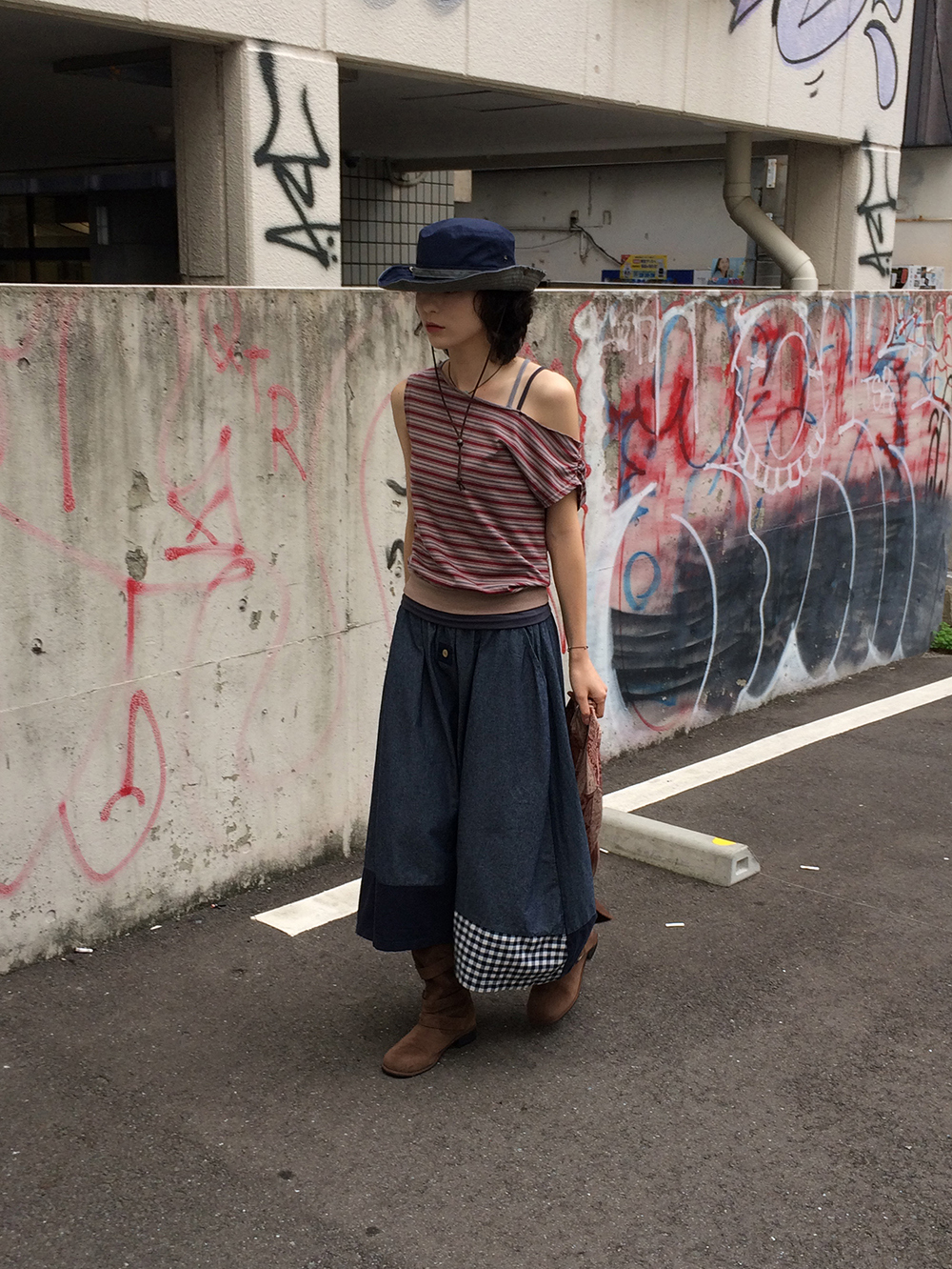 デニムバイカラースカート