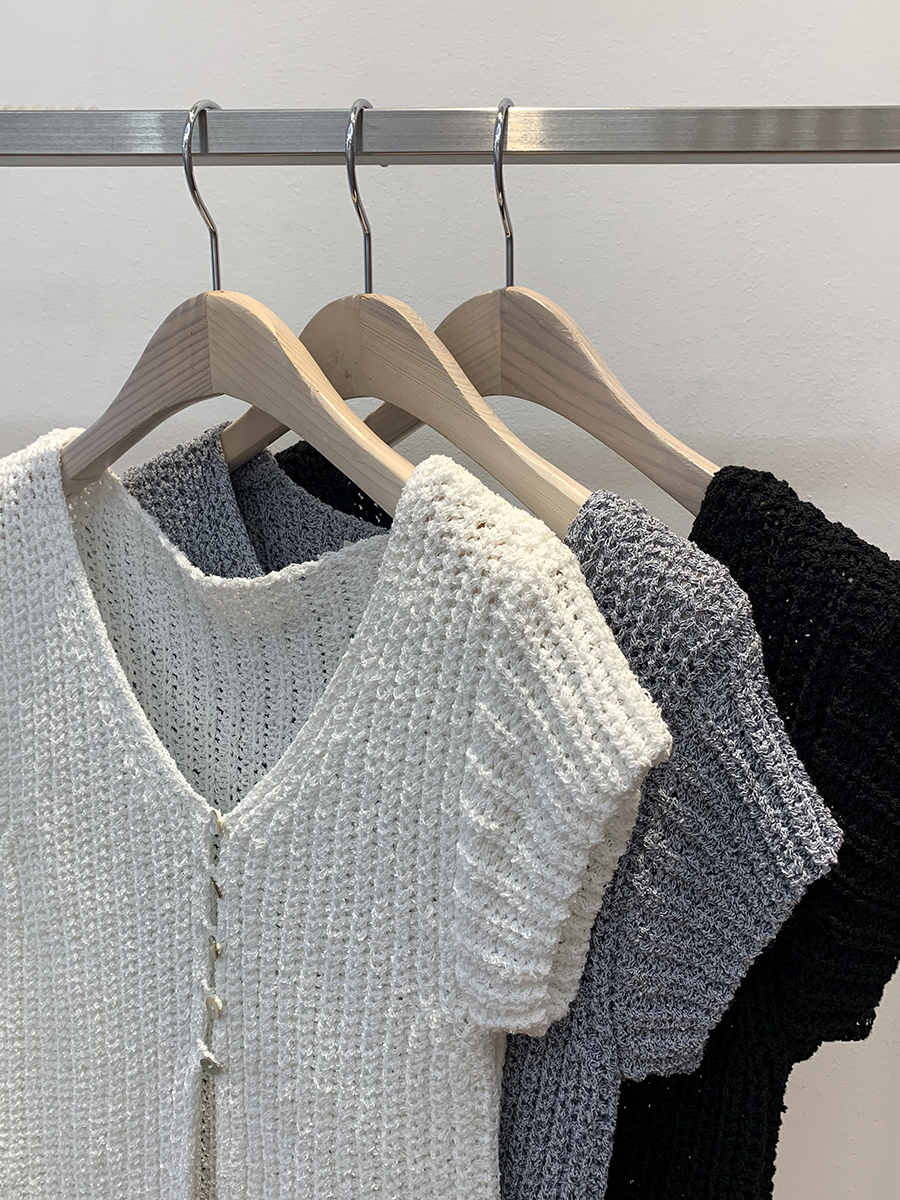 透かし編スリットレイヤード半袖ニットクロップドカーディガン3color