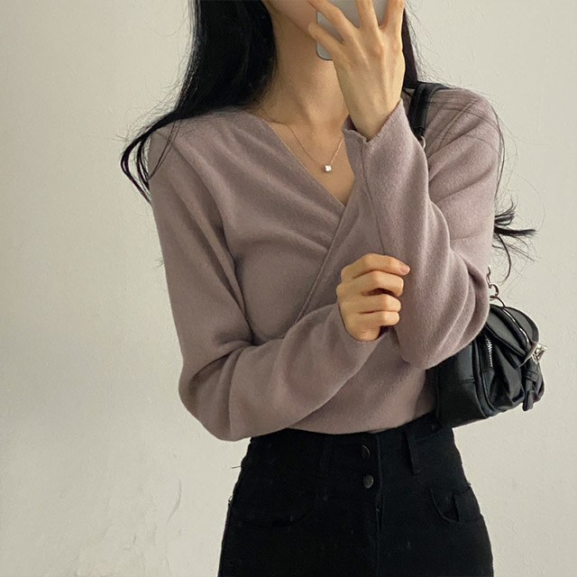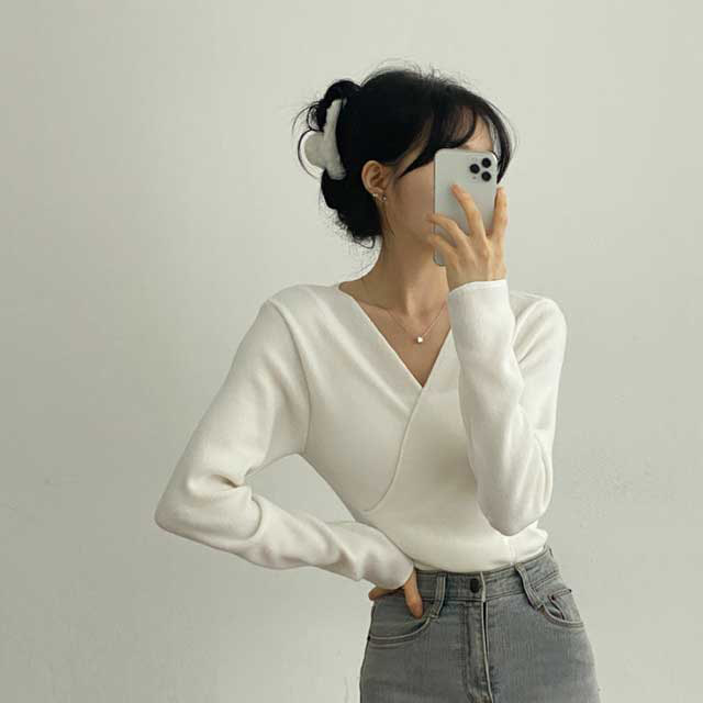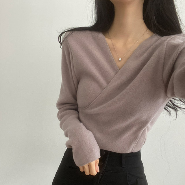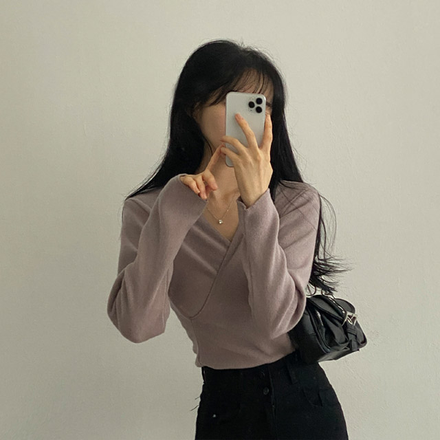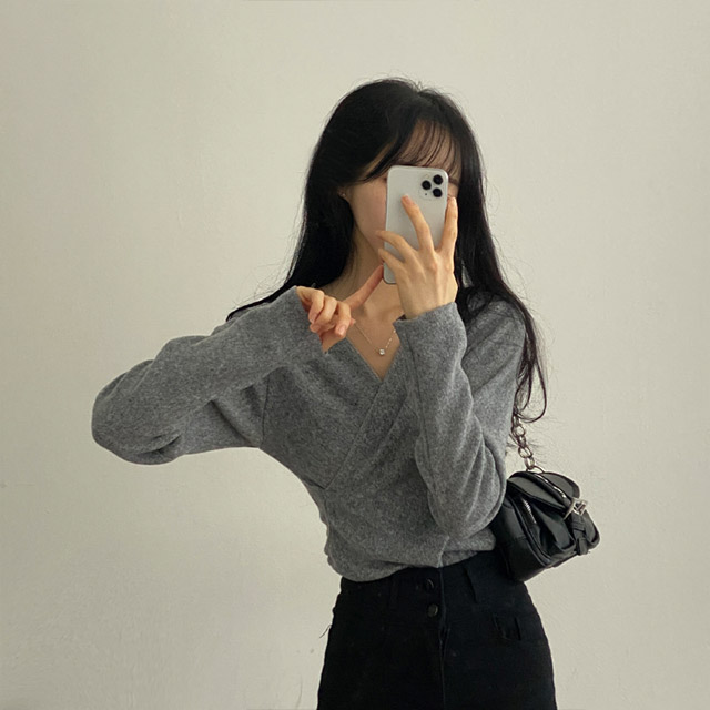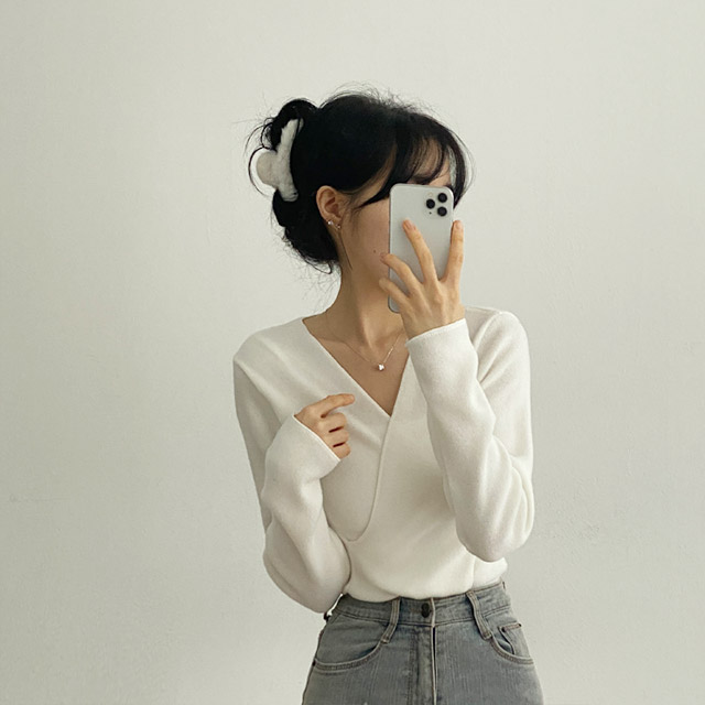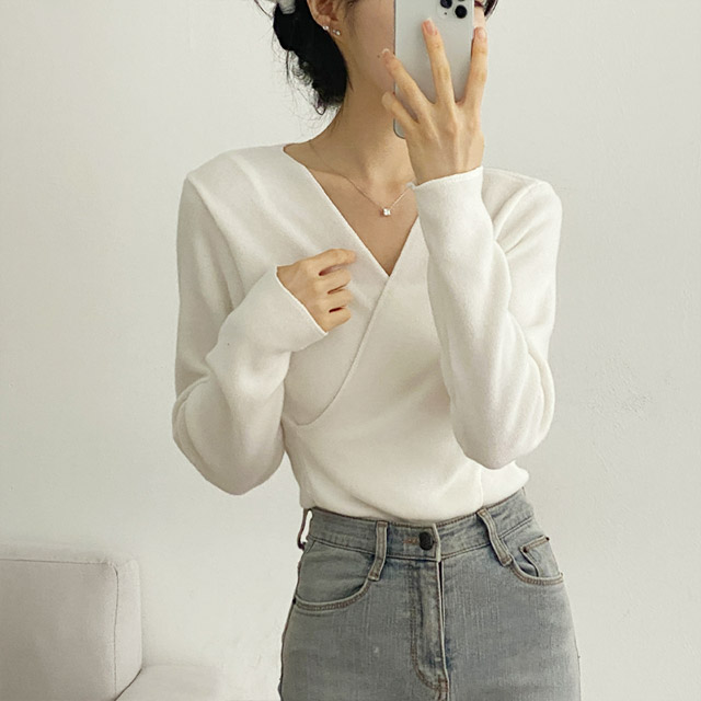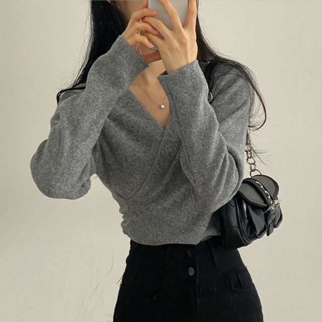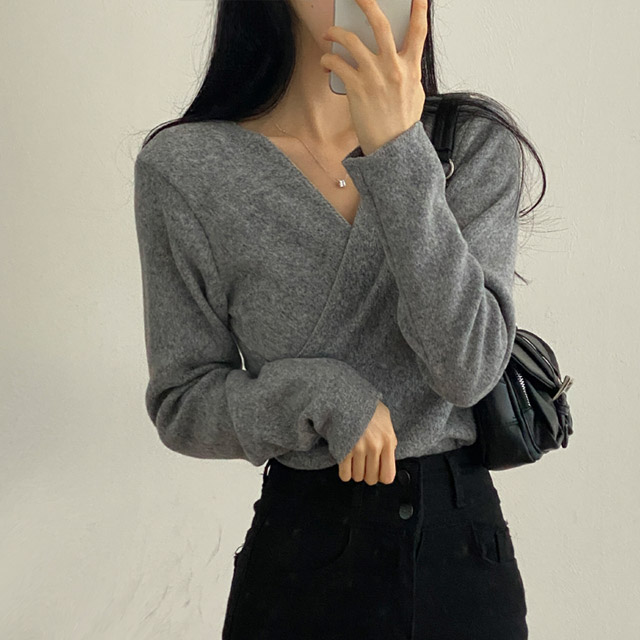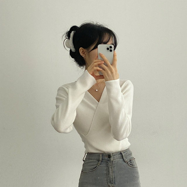 [3color/起毛素材] ツイストVネックTシャツ