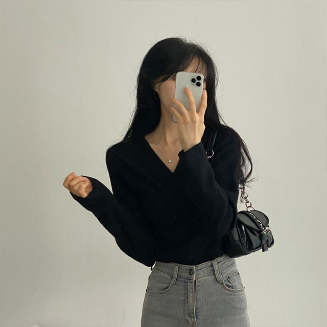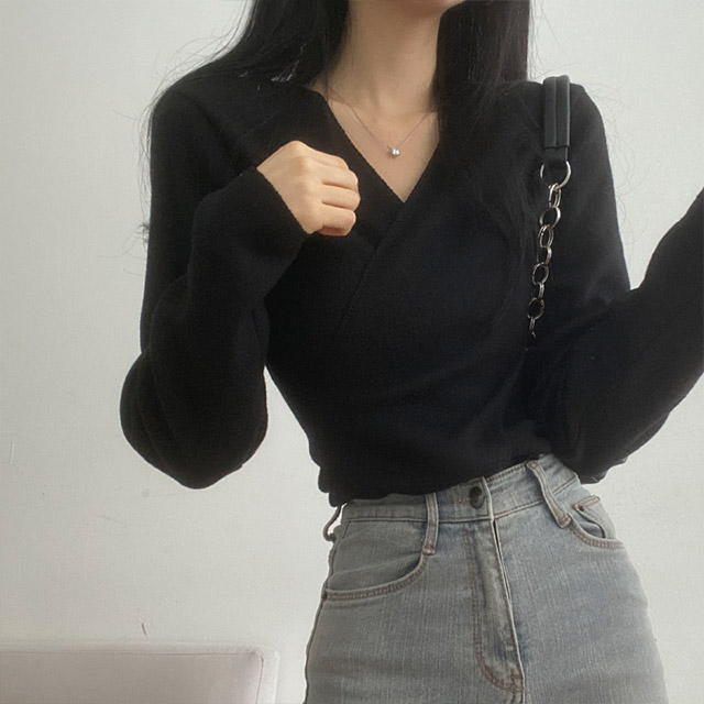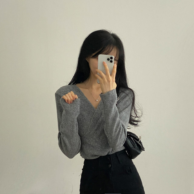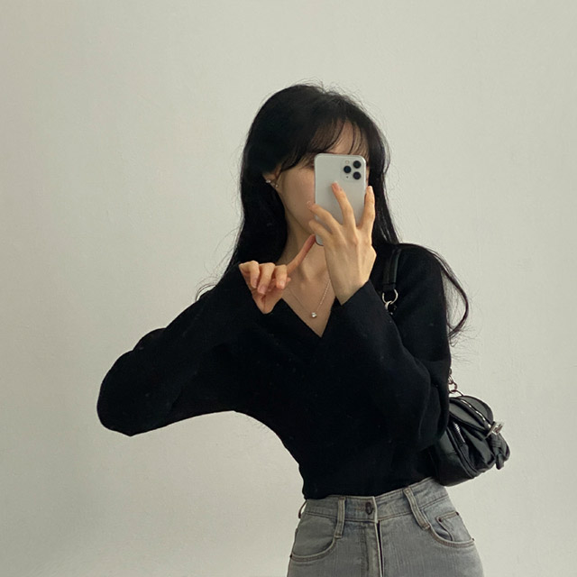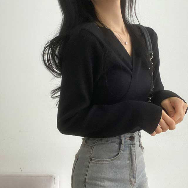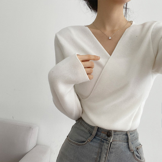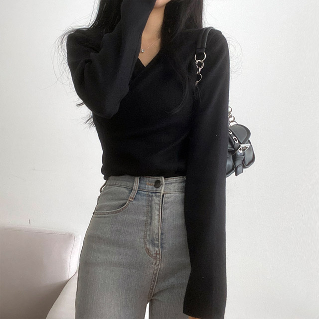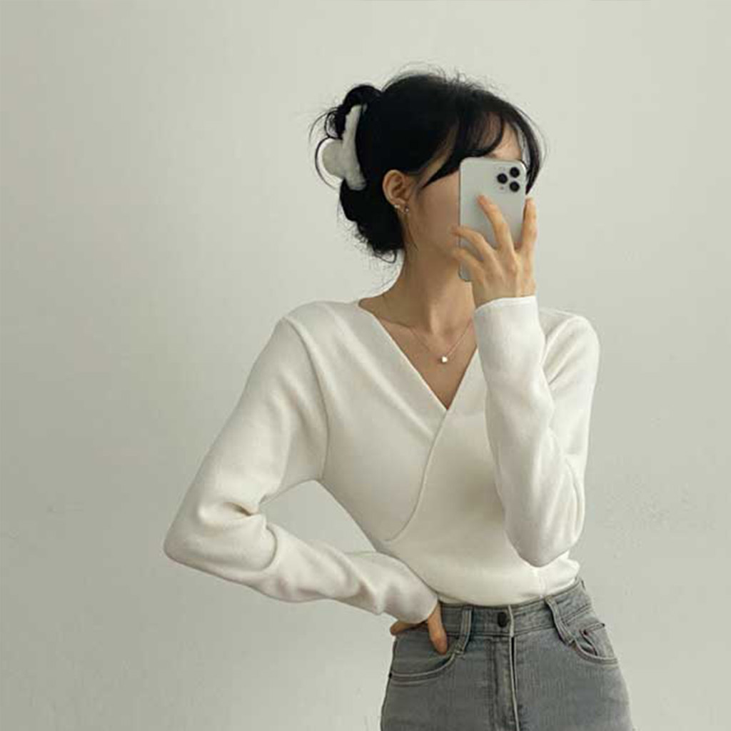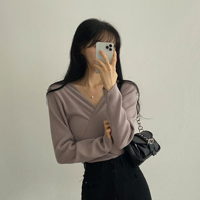 [3color/起毛素材] ツイストVネックTシャツ