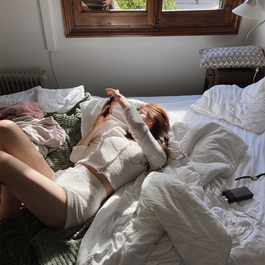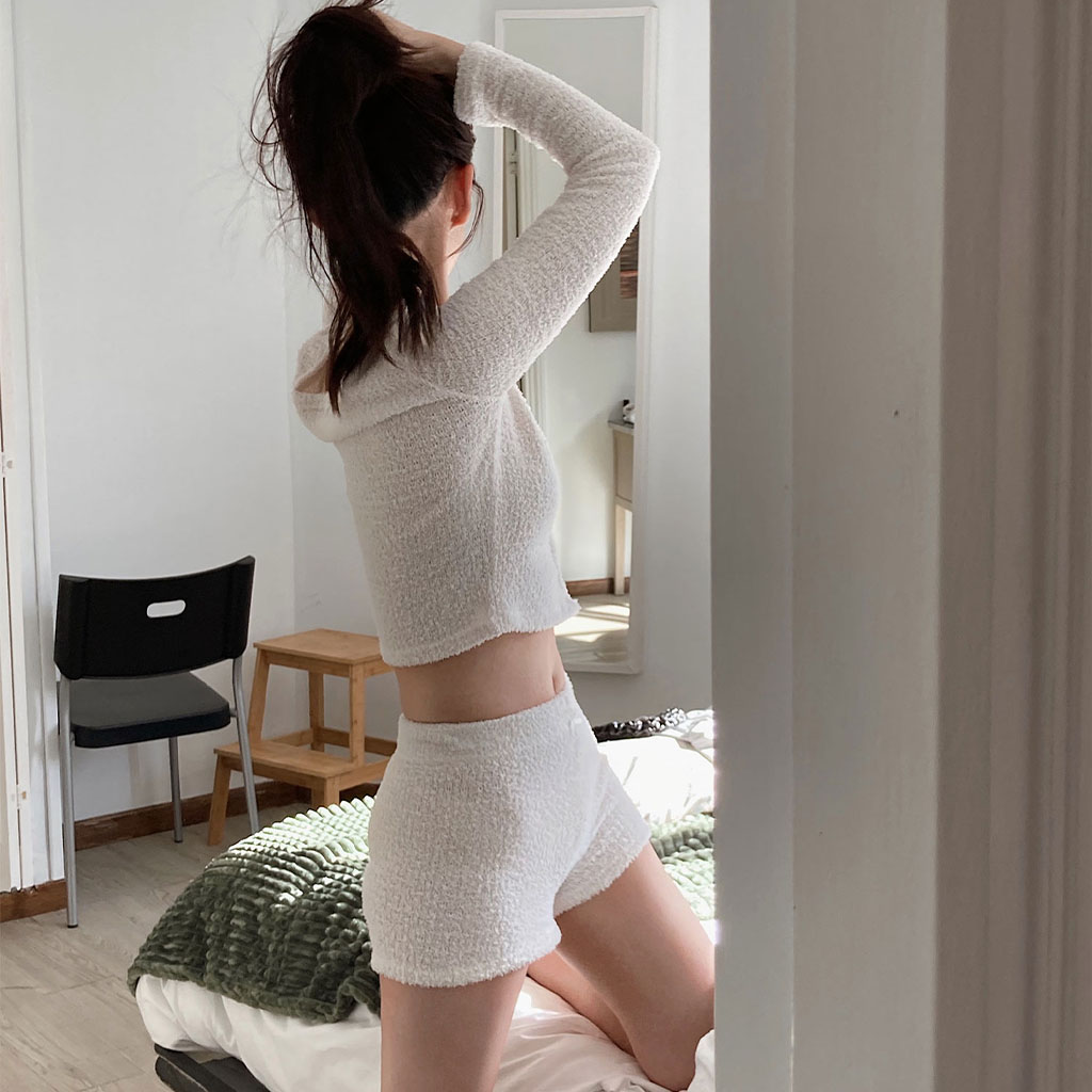 [SET] ブークレリボン長袖Tシャツ+ショートパンツセット