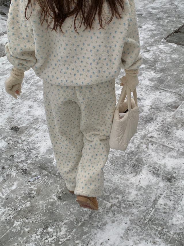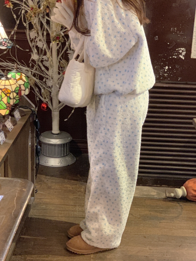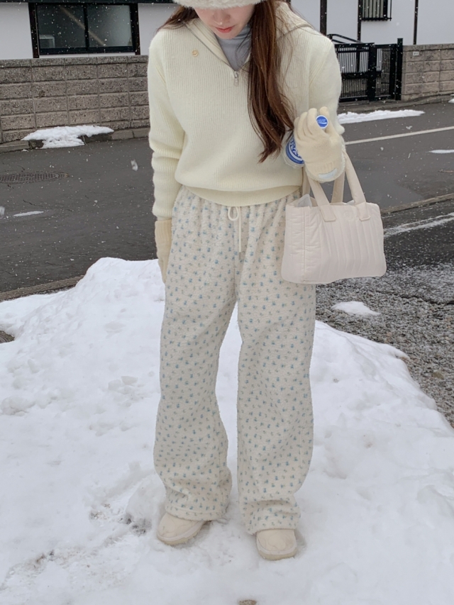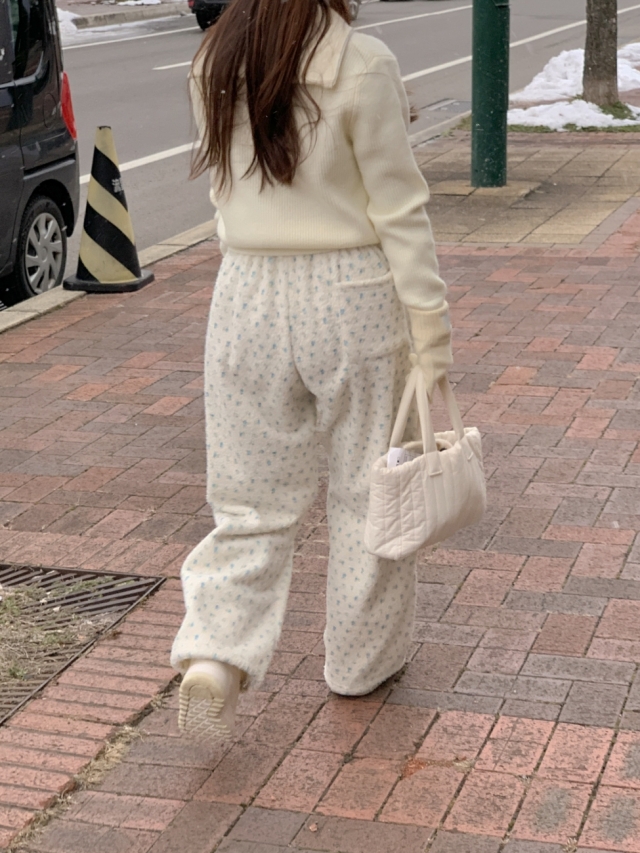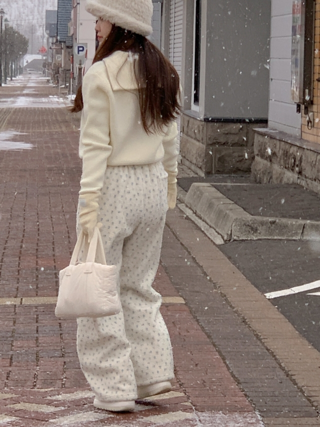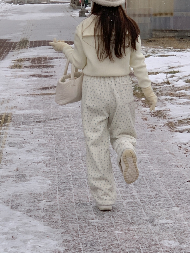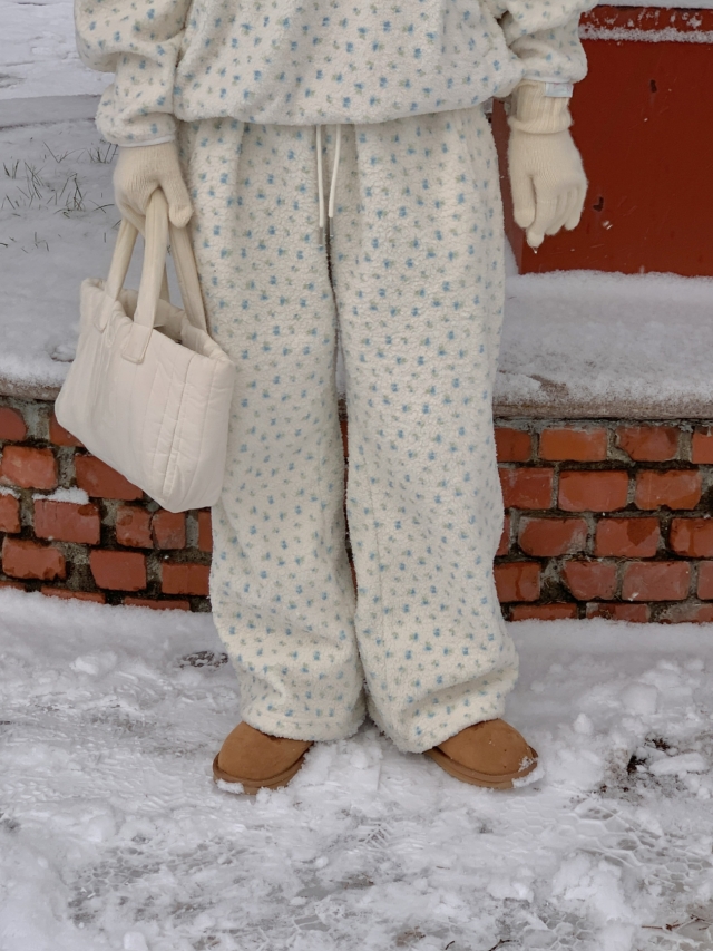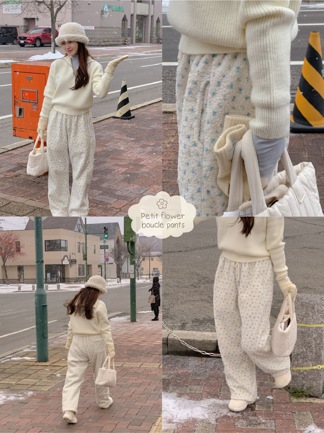[original]プチフラワーブークレ裏起毛2WAYジョガーパンツ