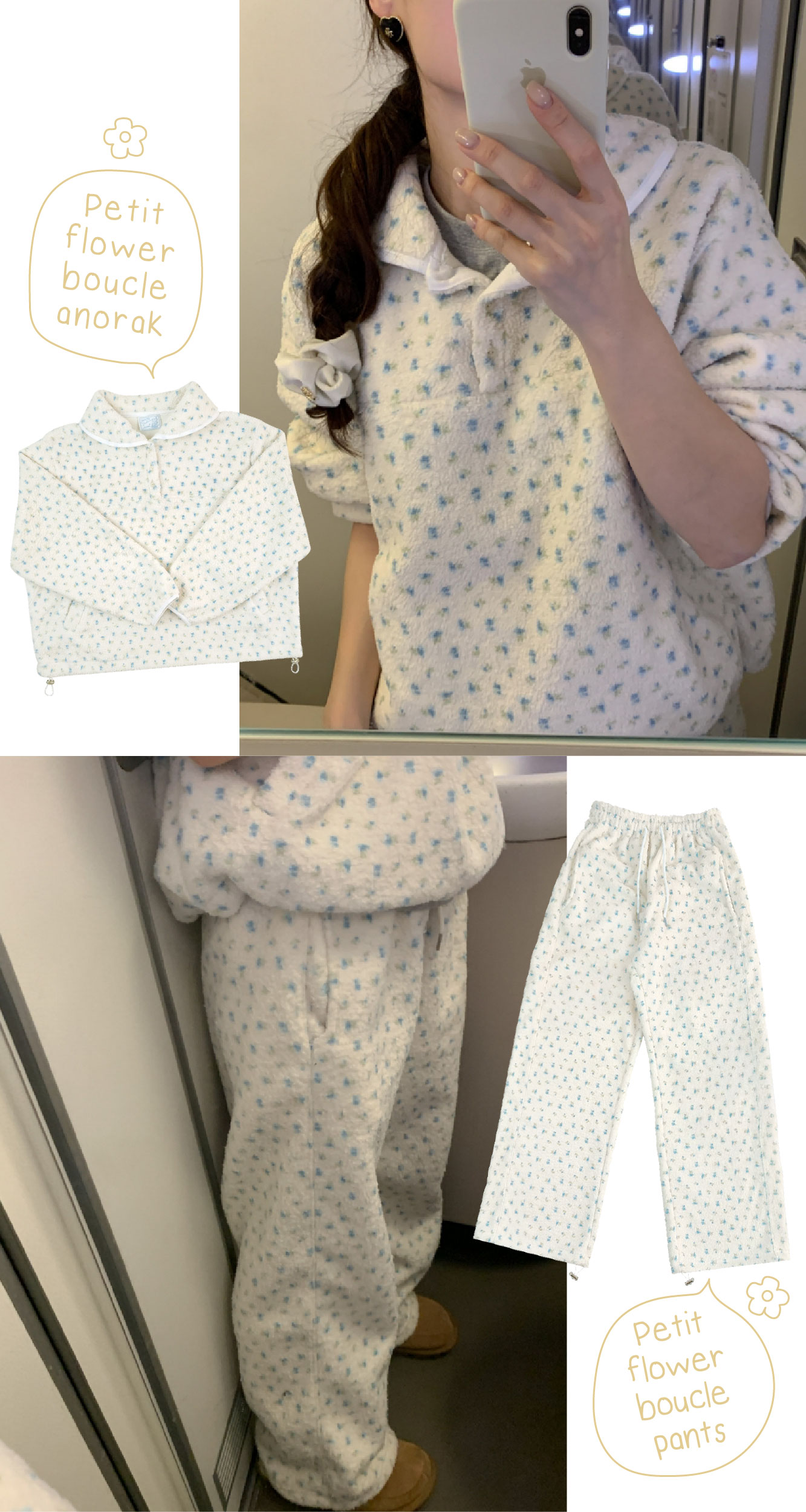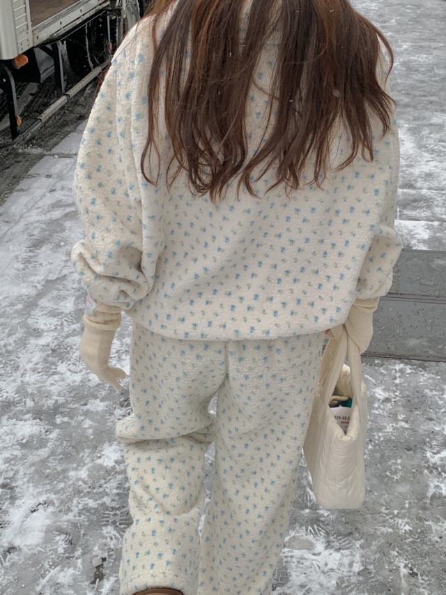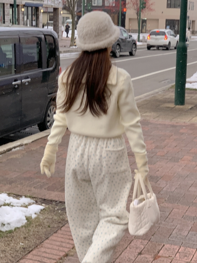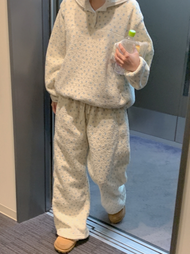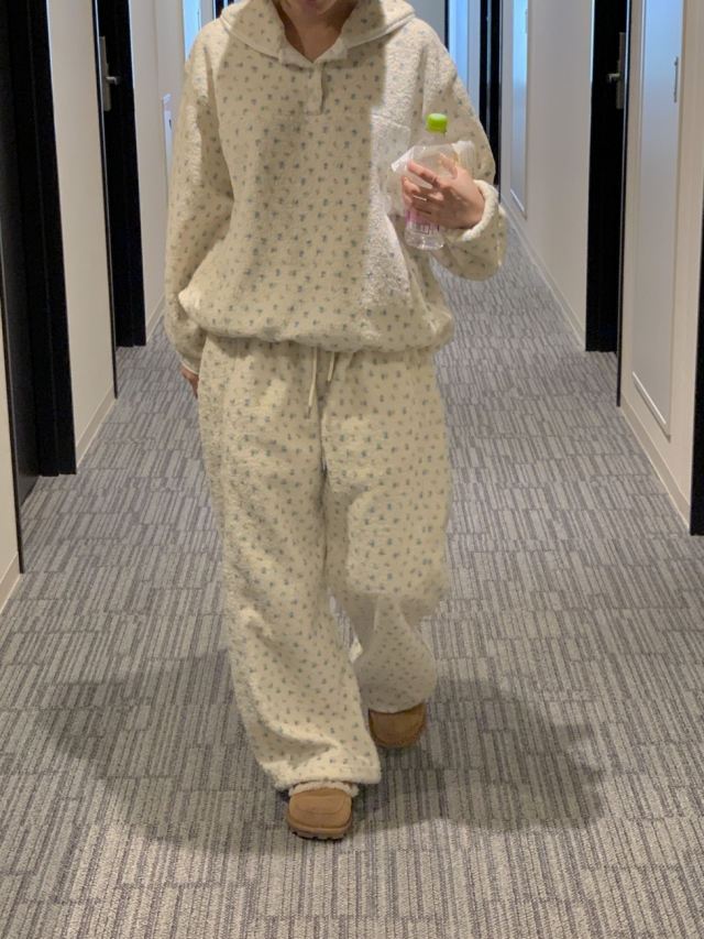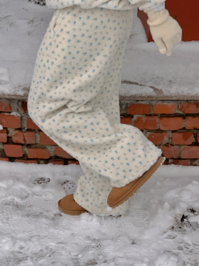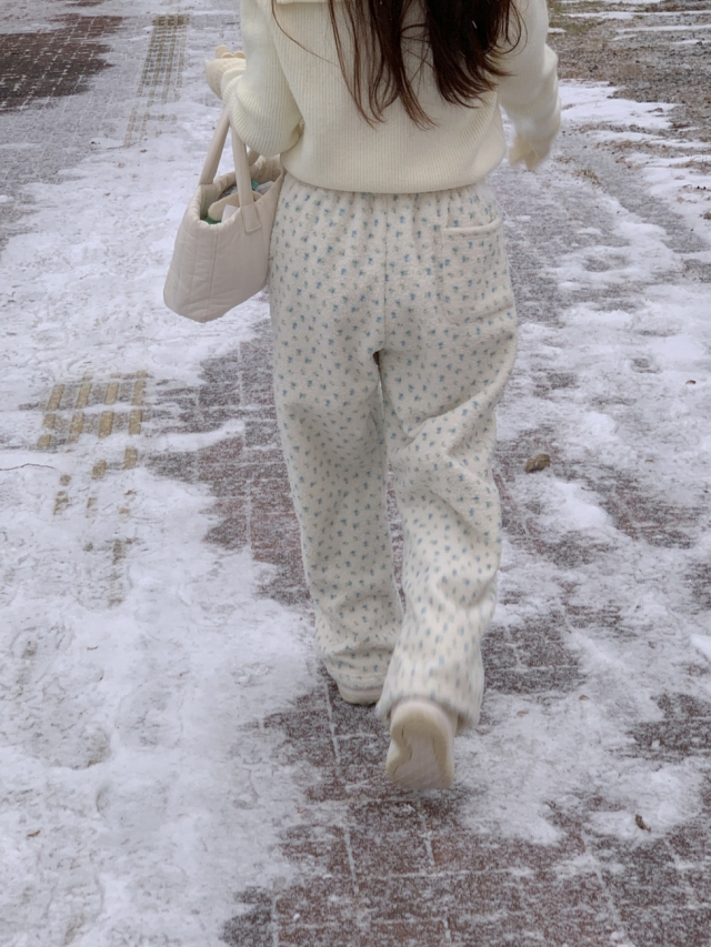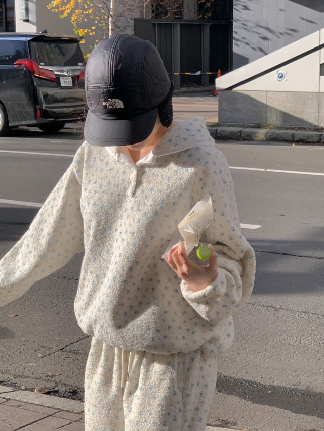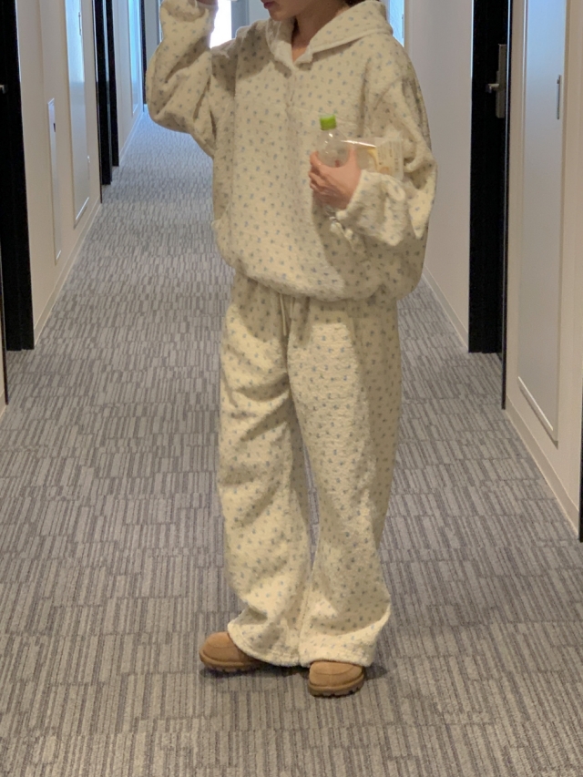[original]プチフラワーブークレ裏起毛2WAYジョガーパンツ