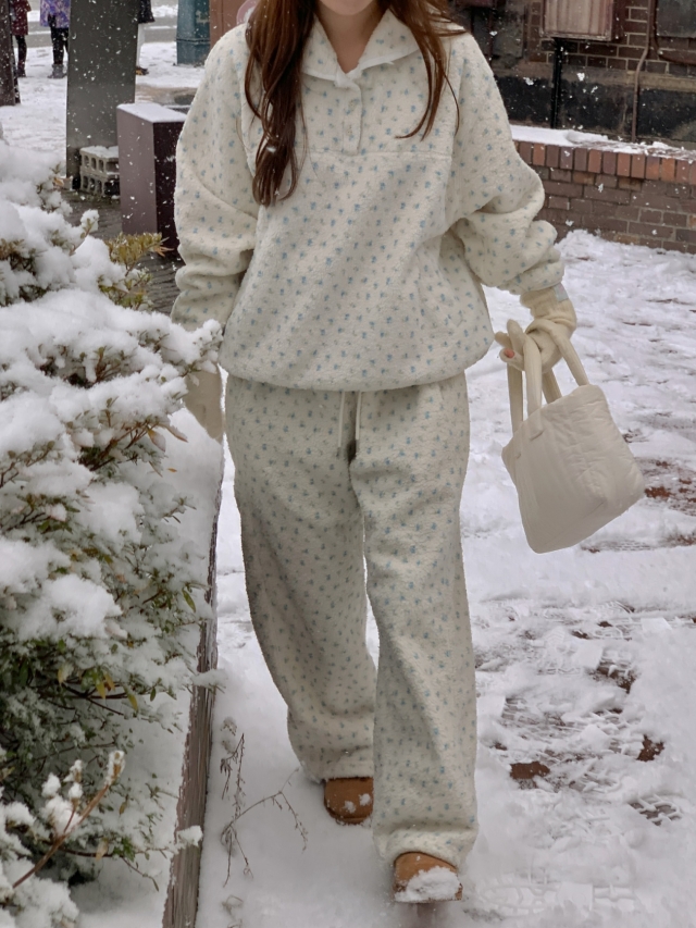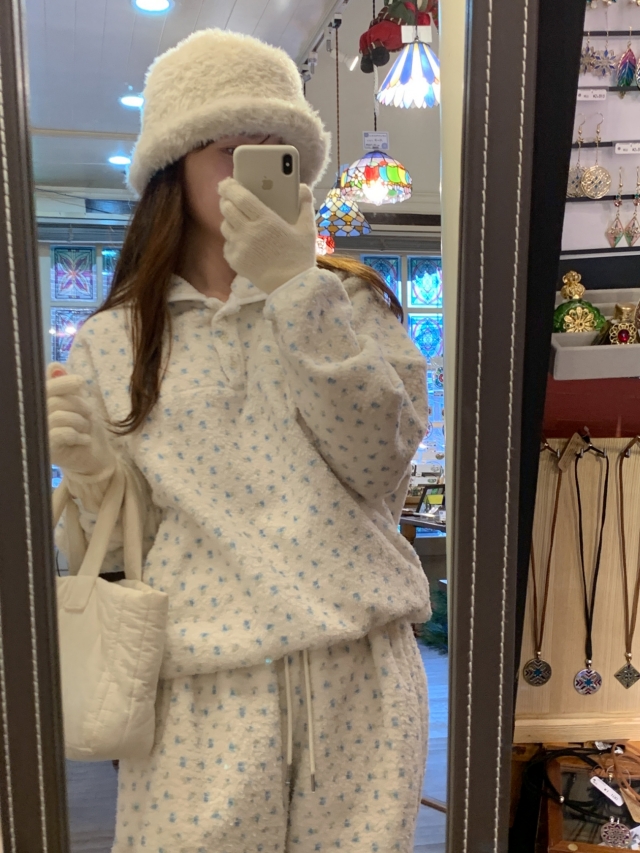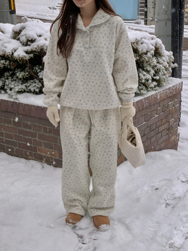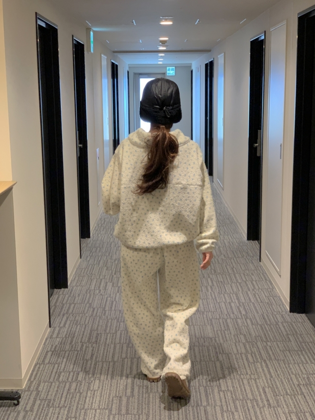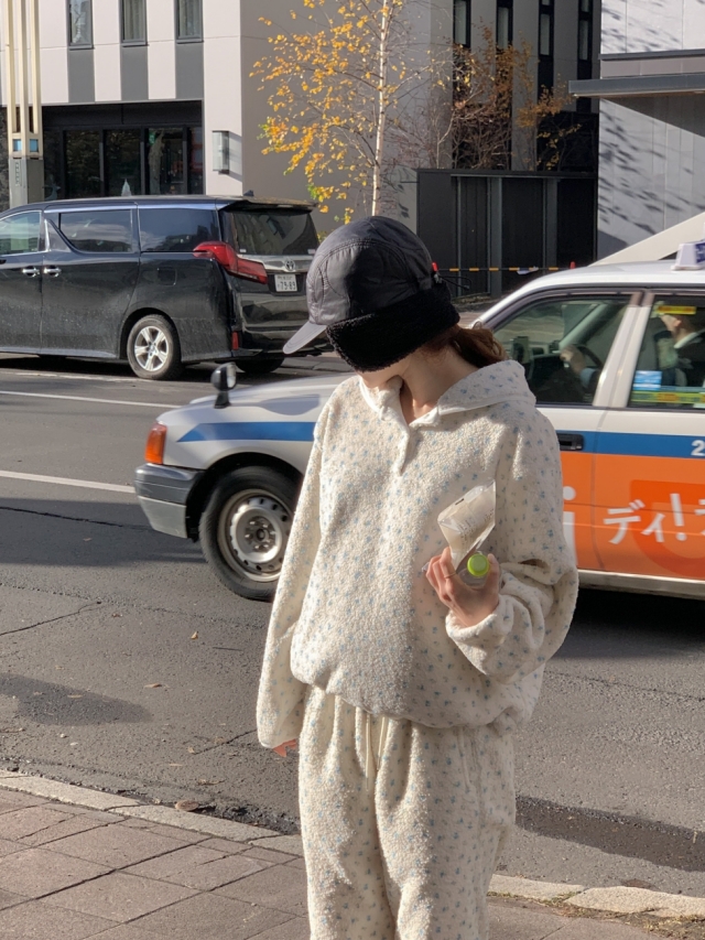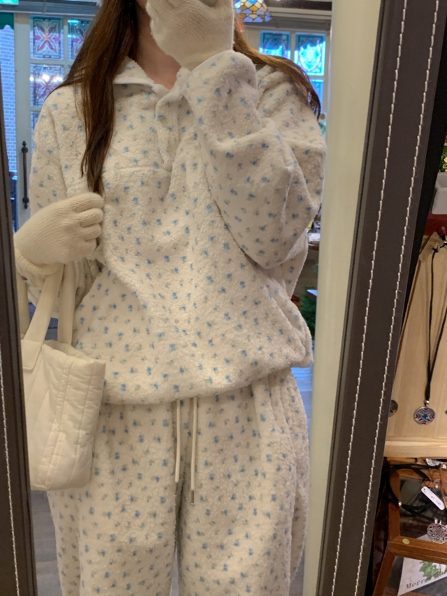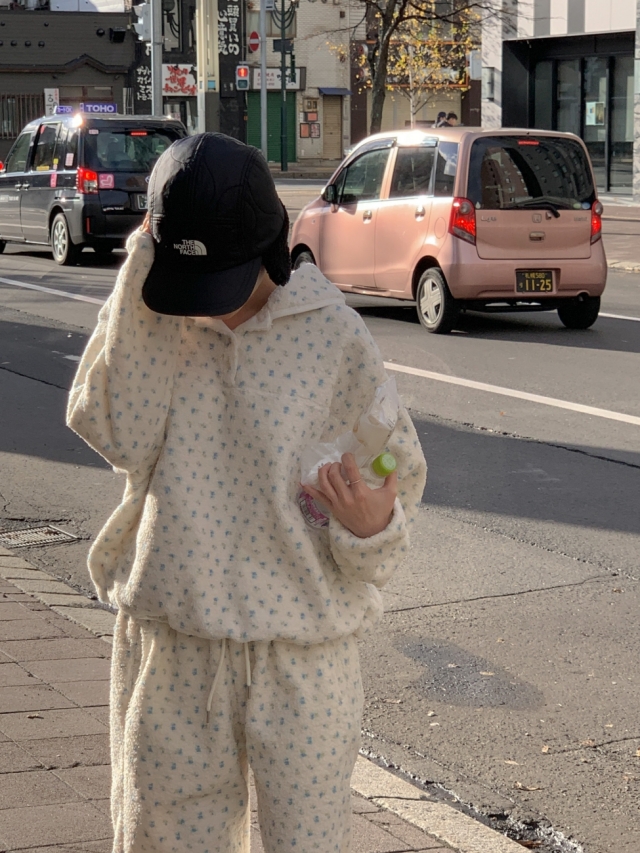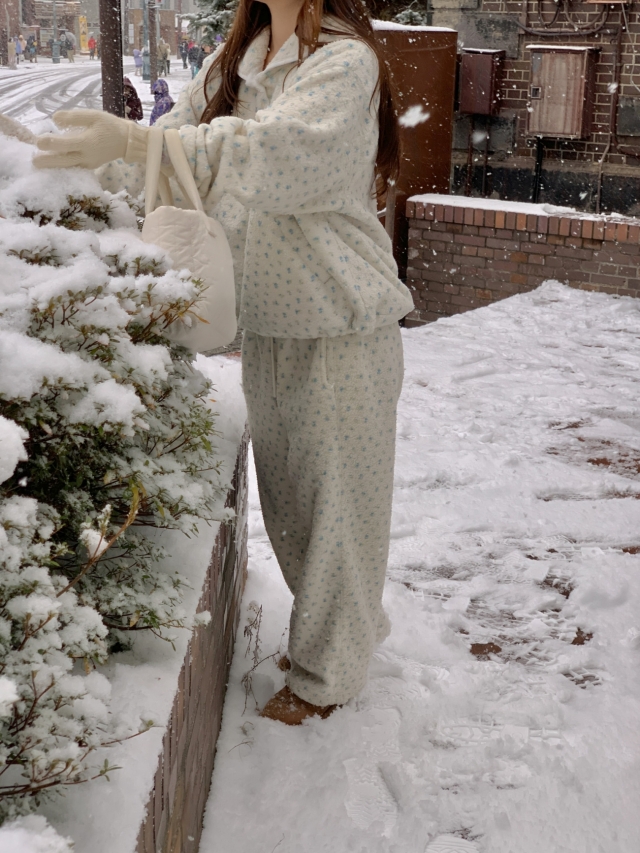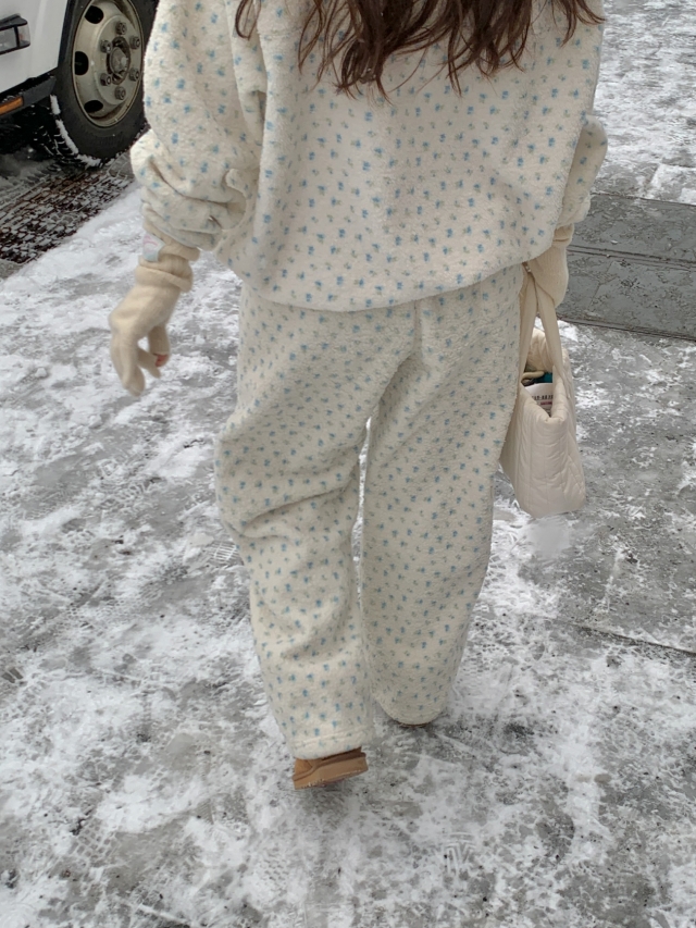 [original]プチフラワーブークレ裏起毛2WAYジョガーパンツ