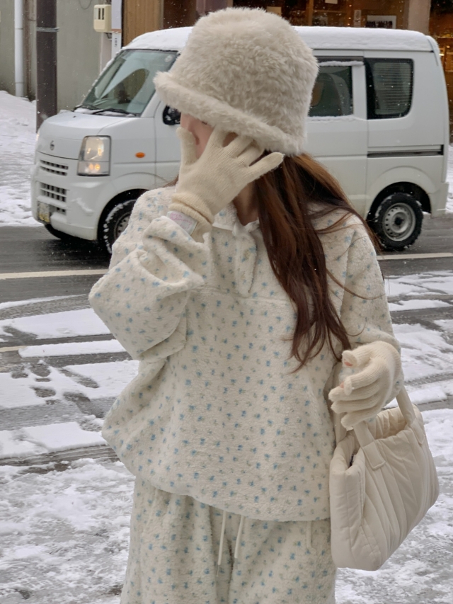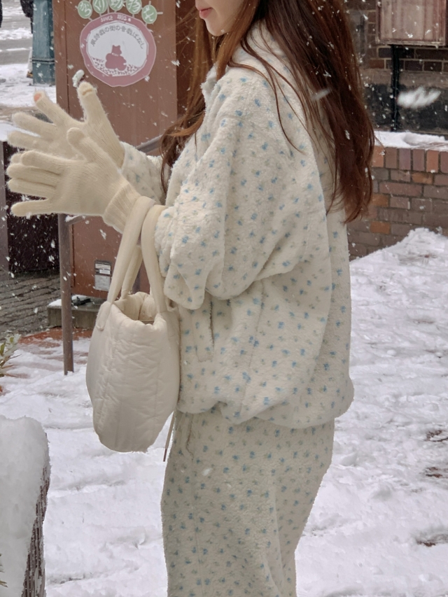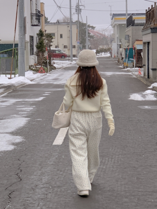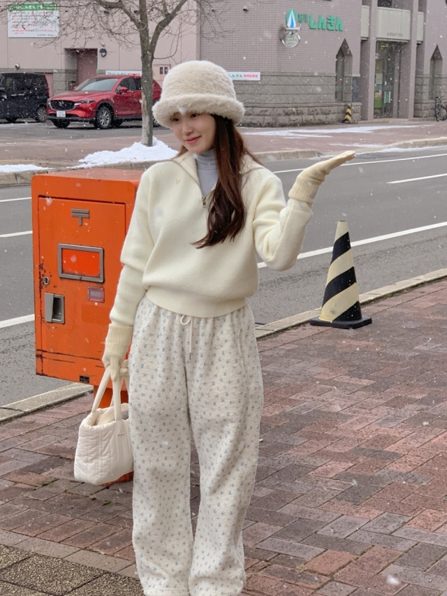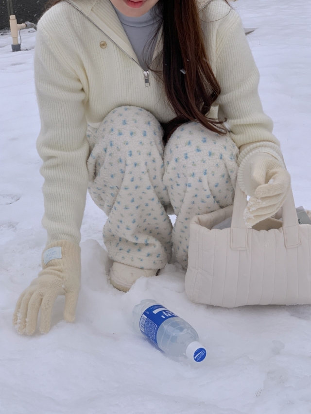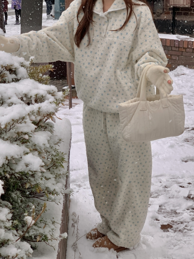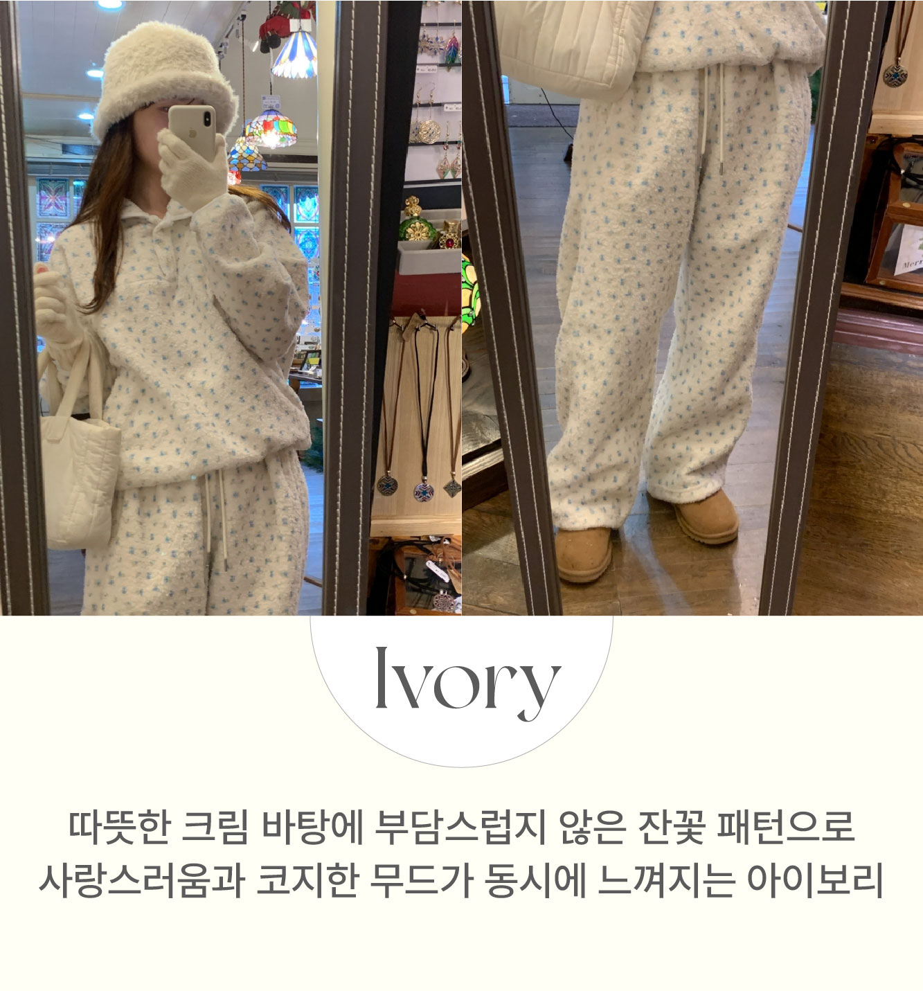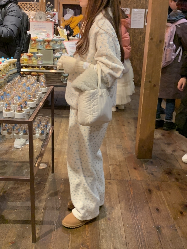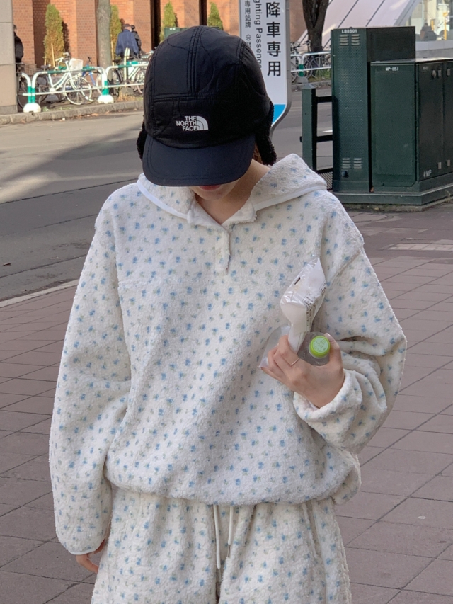 [original]プチフラワーブークレ裏起毛2WAYジョガーパンツ