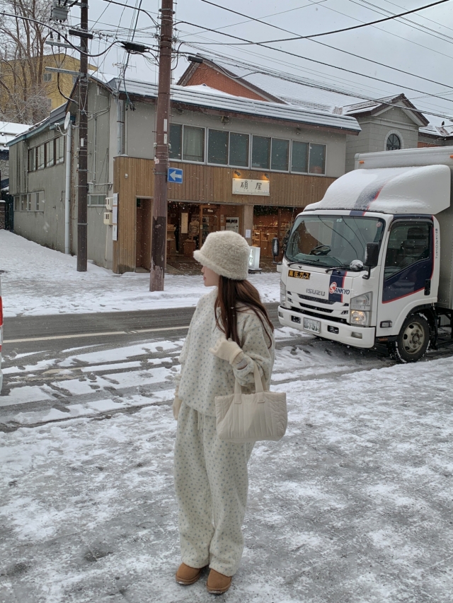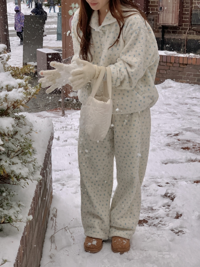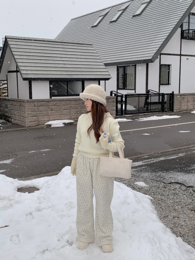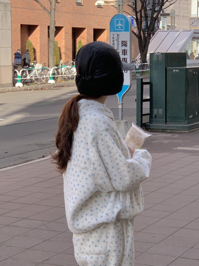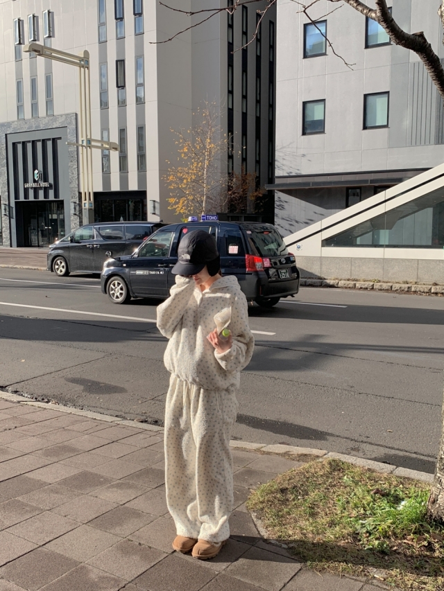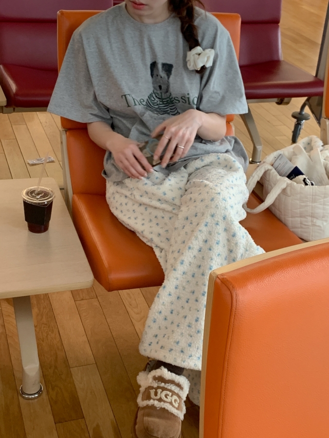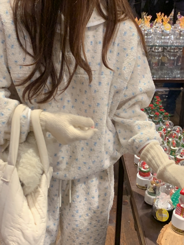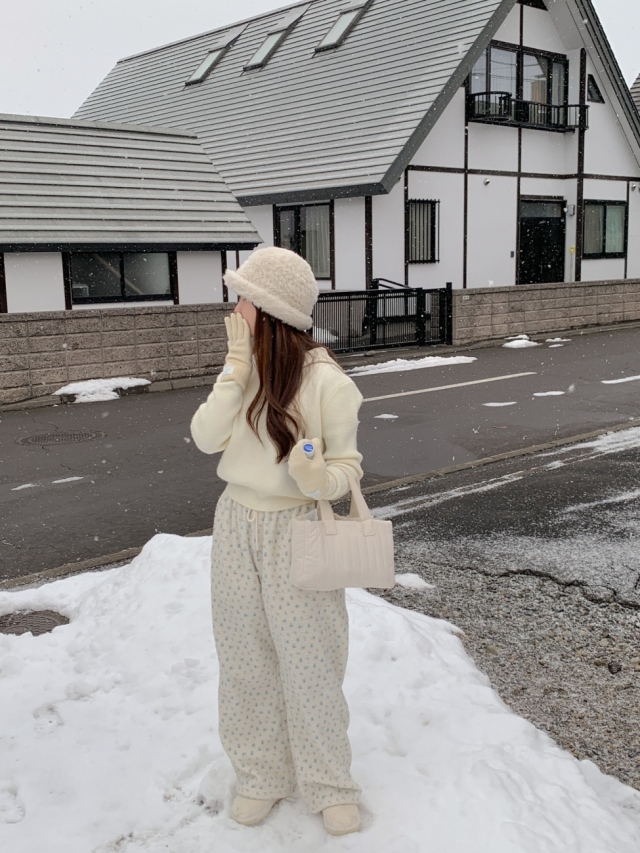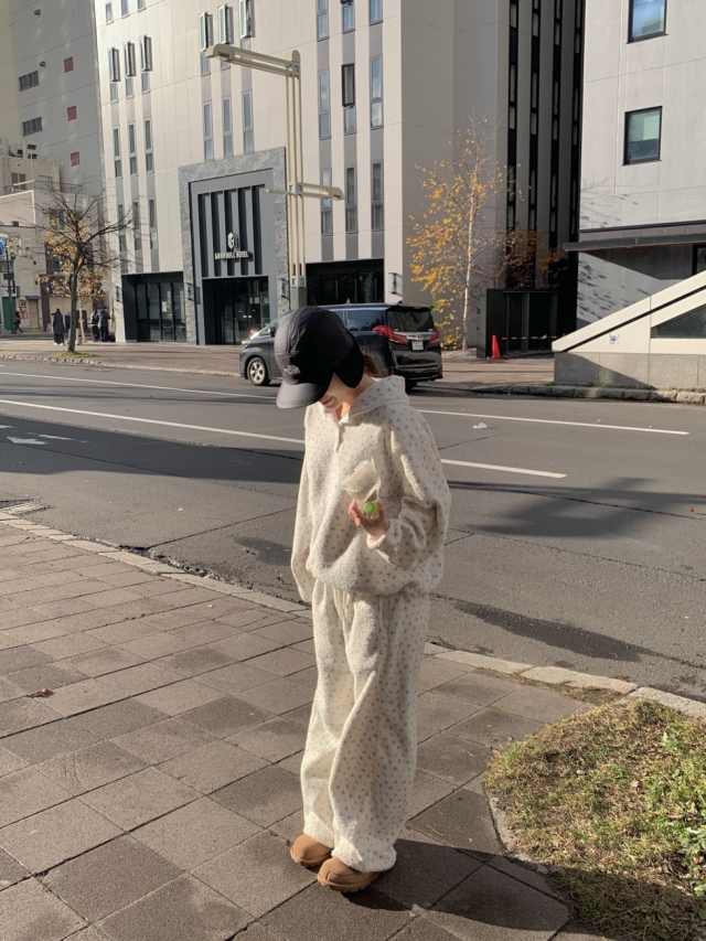[original]プチフラワーブークレ裏起毛2WAYジョガーパンツ