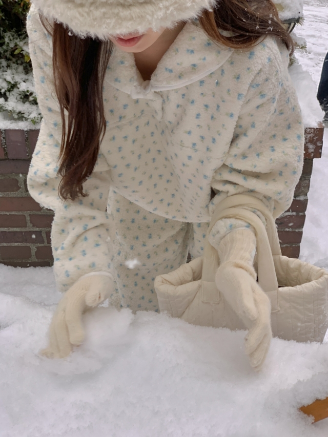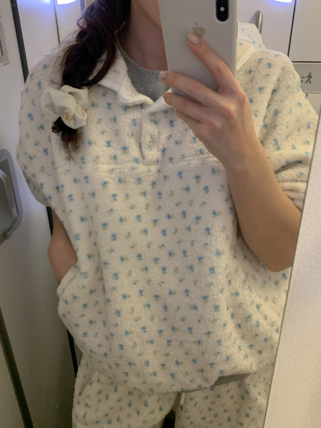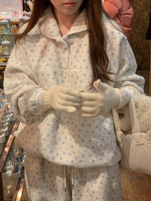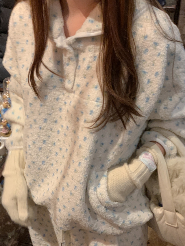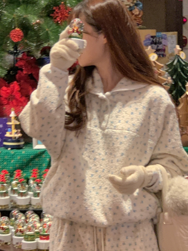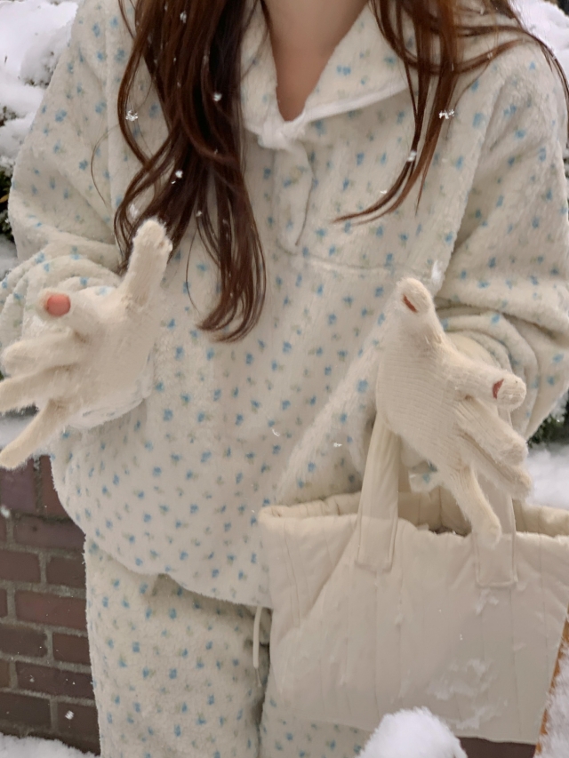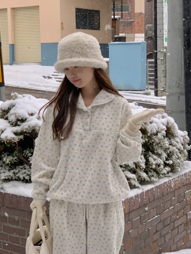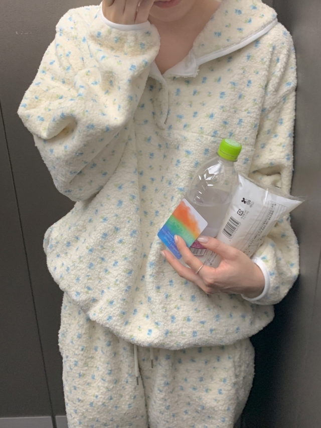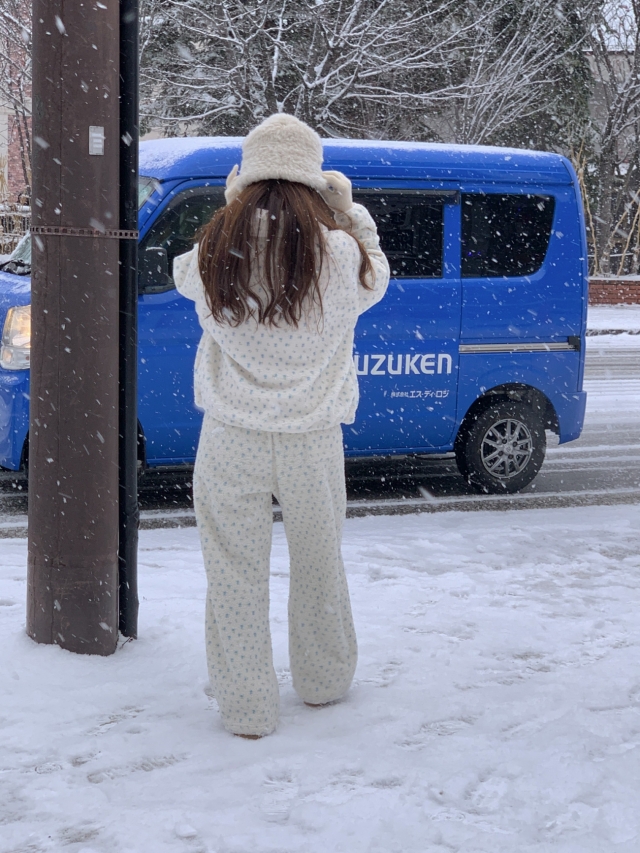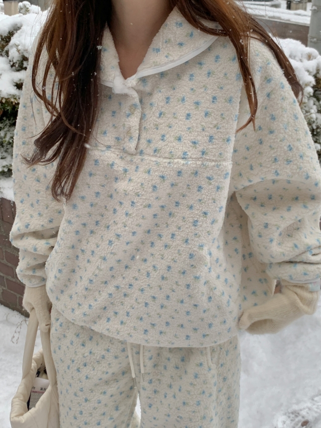 [original]プチフラワーブークレ裏起毛2WAYジョガーパンツ