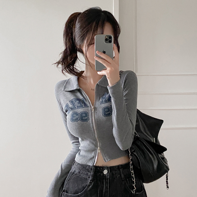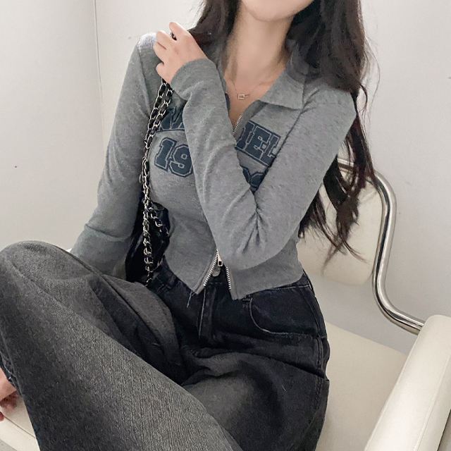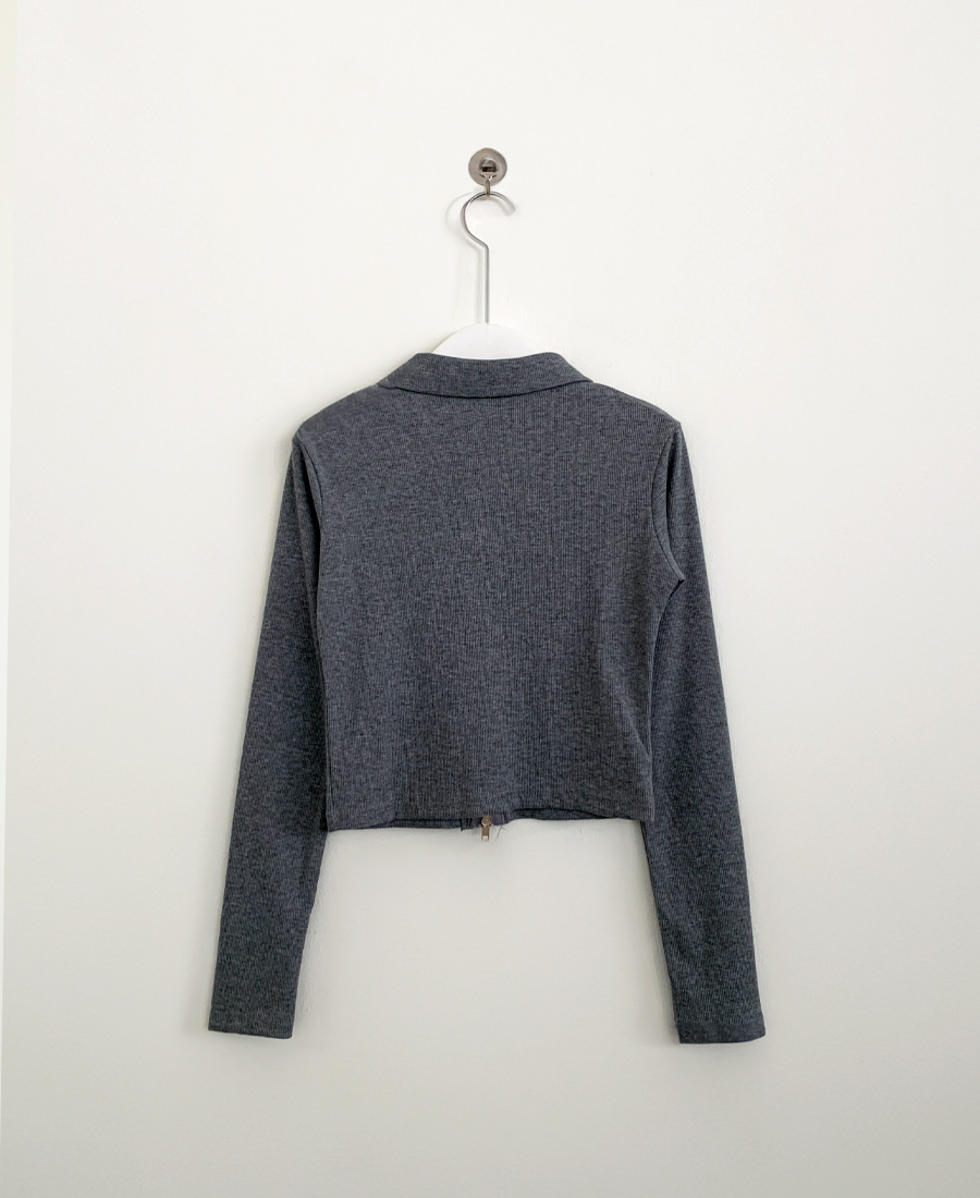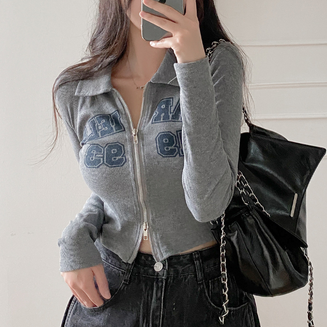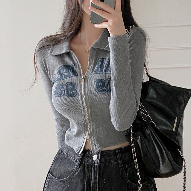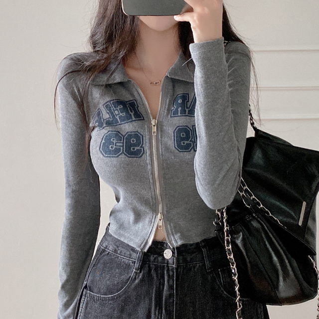 秋長袖パーカーニットグレー2WAYカラーカーディガン