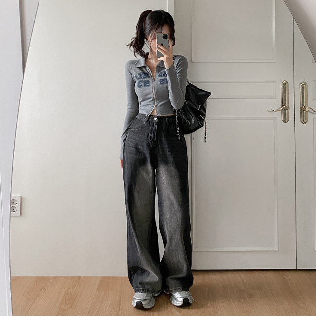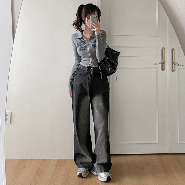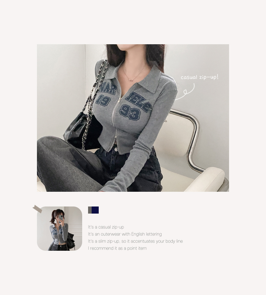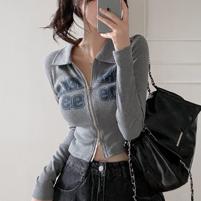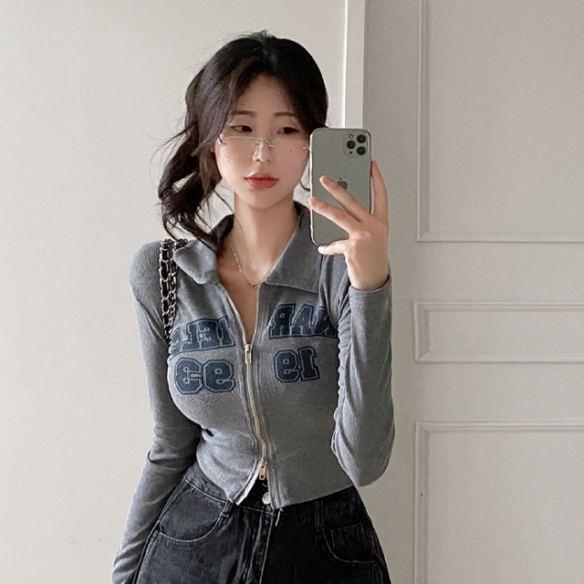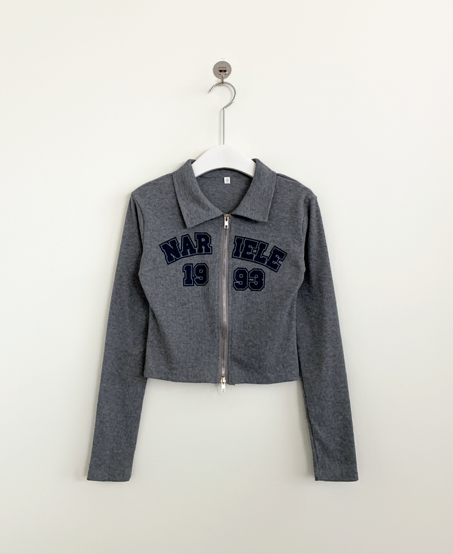 秋長袖パーカーニットグレー2WAYカラーカーディガン