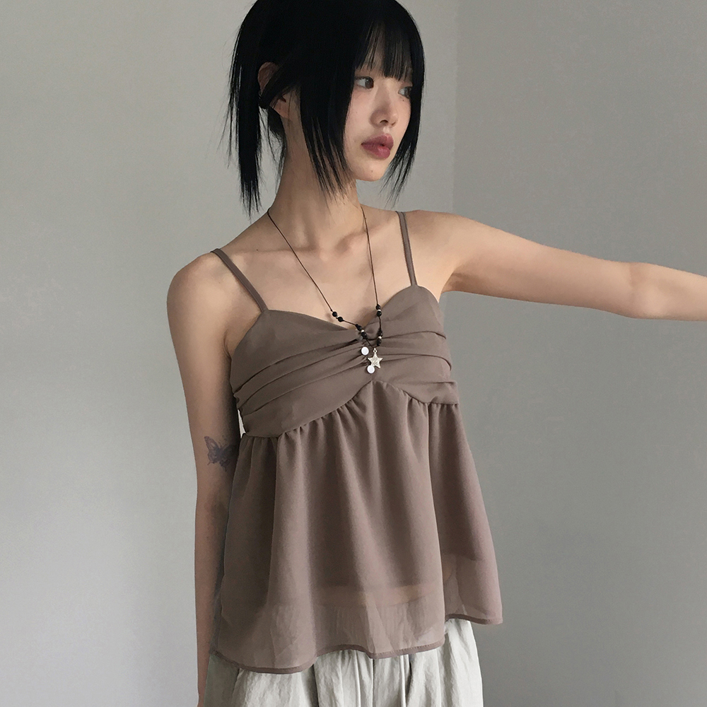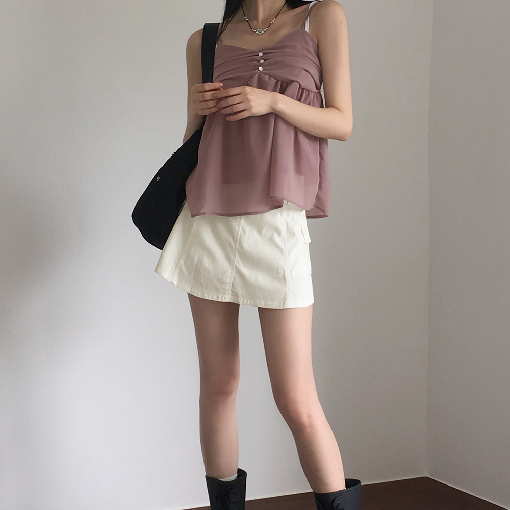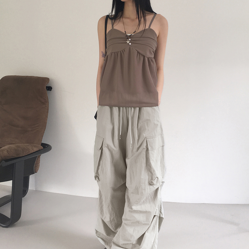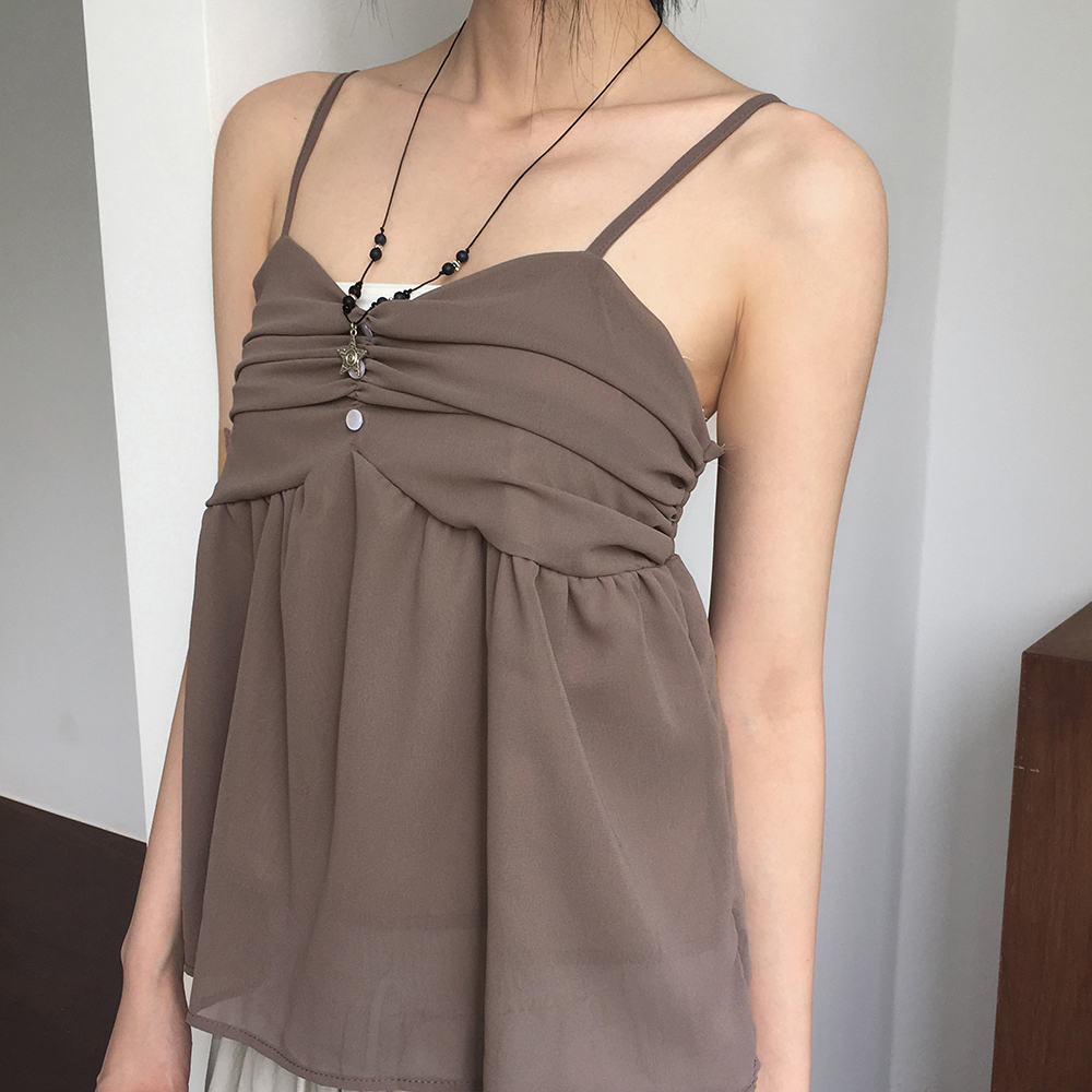 [original]シフォンシャーリングボタンノースリーブブラウス