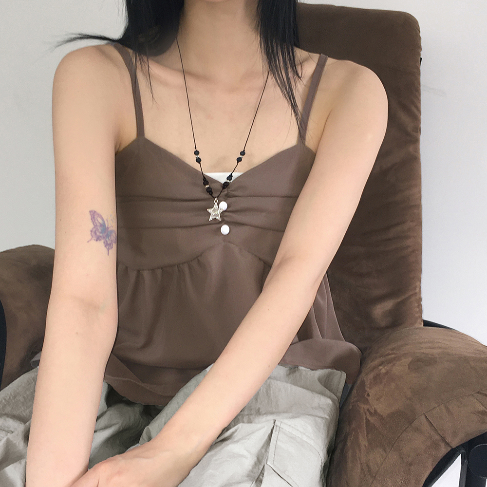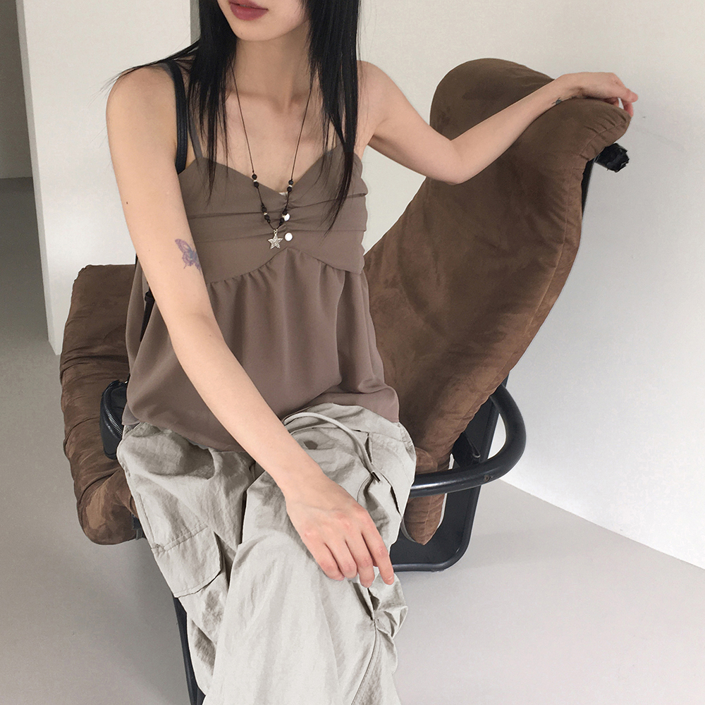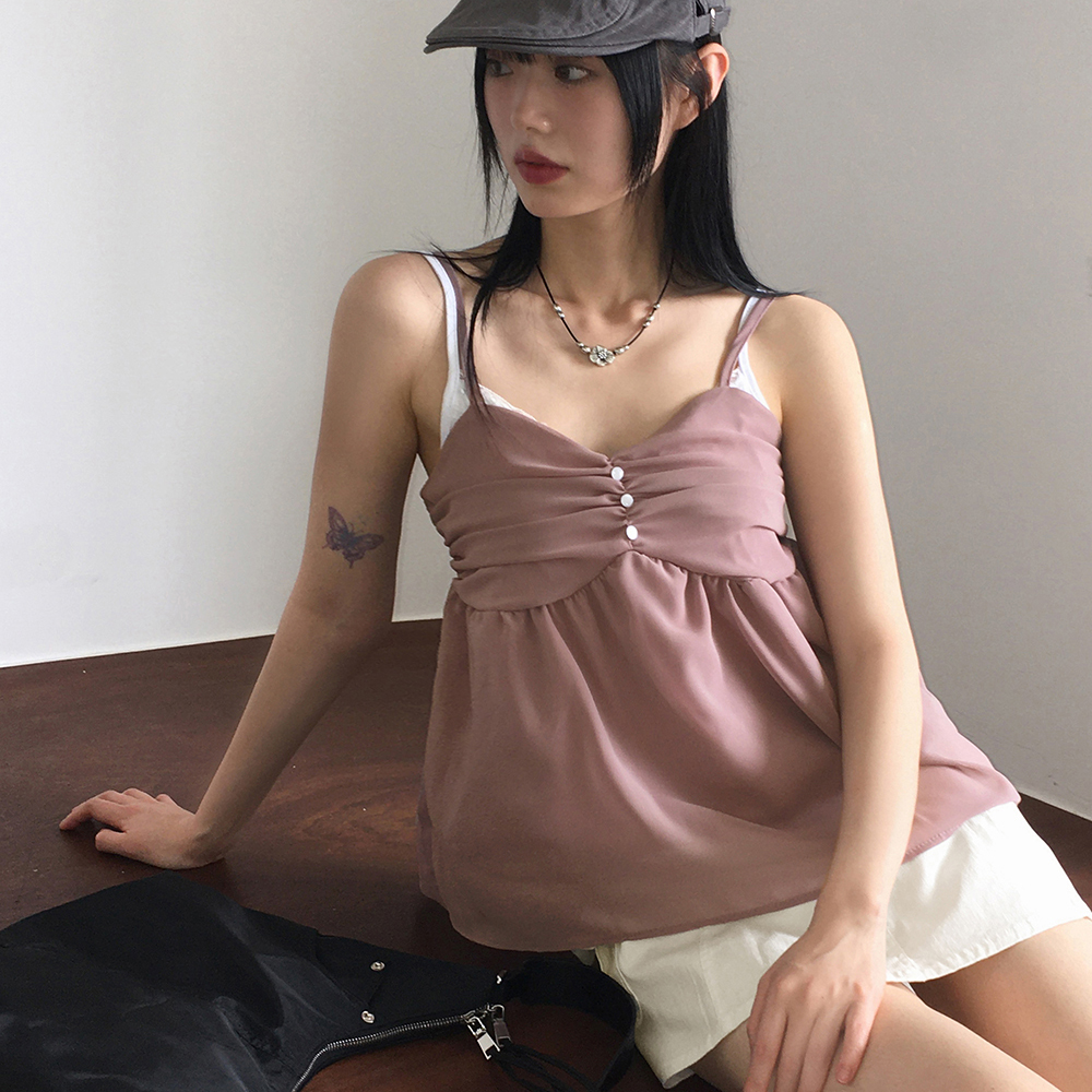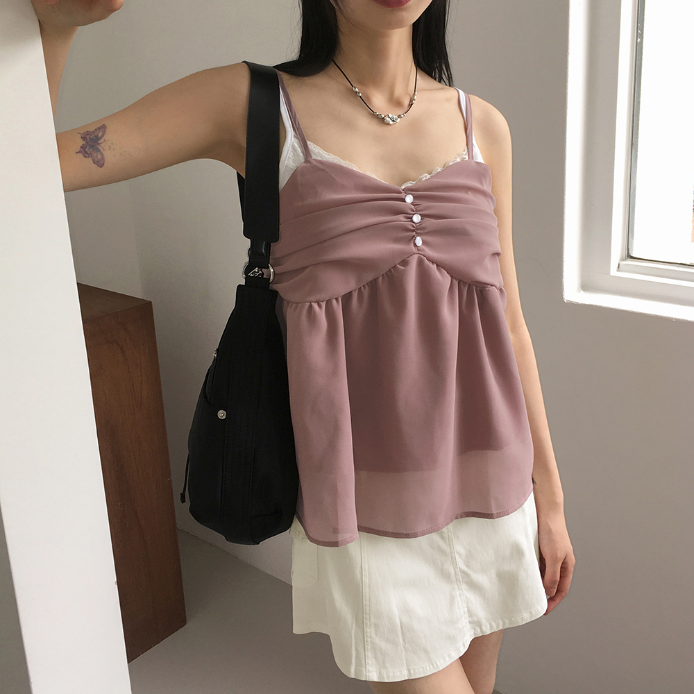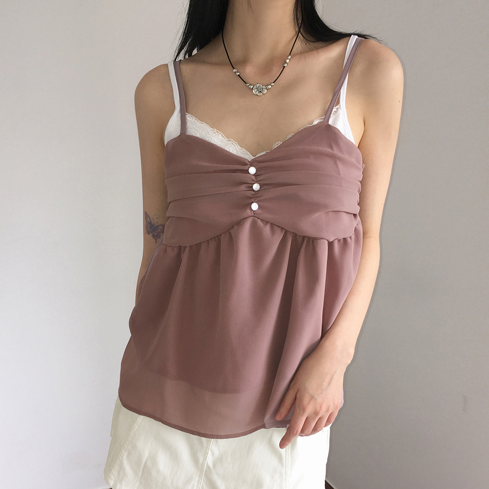 [original]シフォンシャーリングボタンノースリーブブラウス