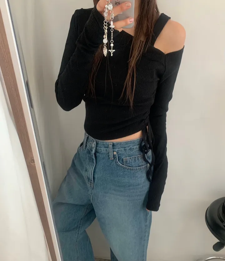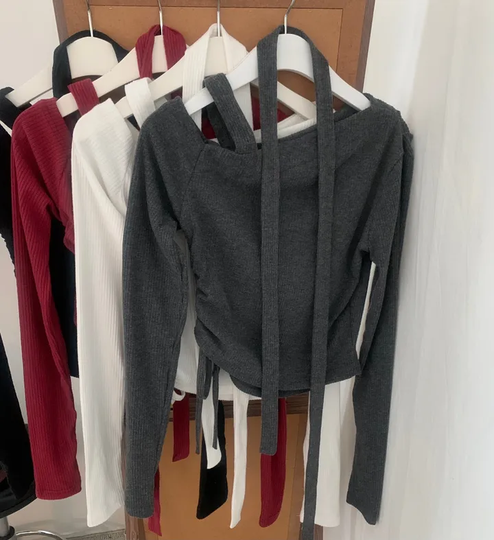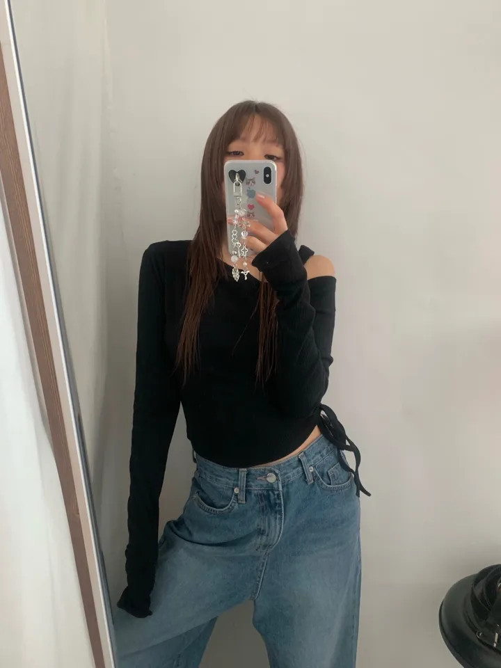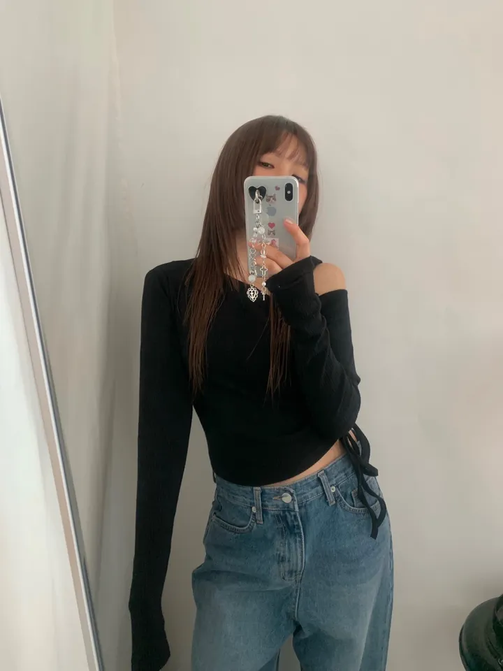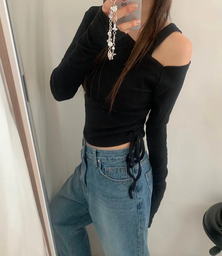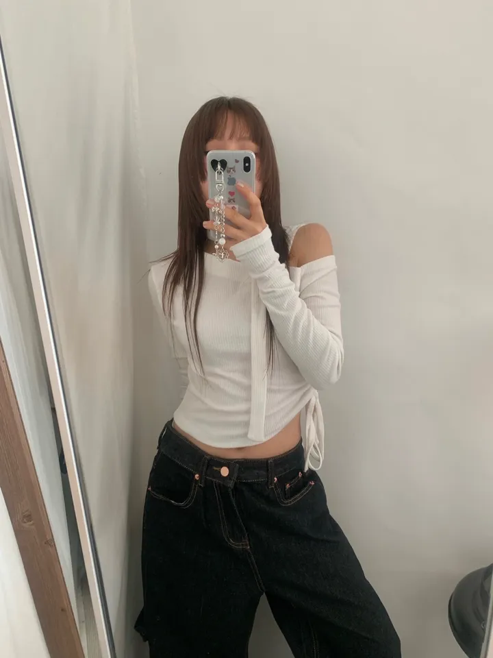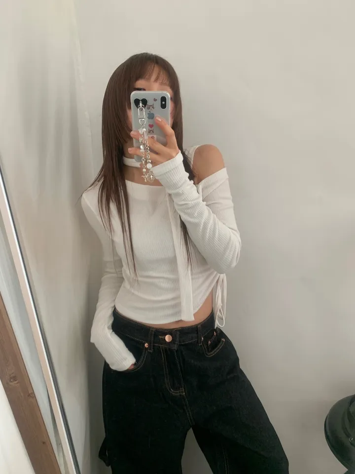 [スカーフセット]ワンショルダーオフリブTシャツ