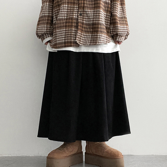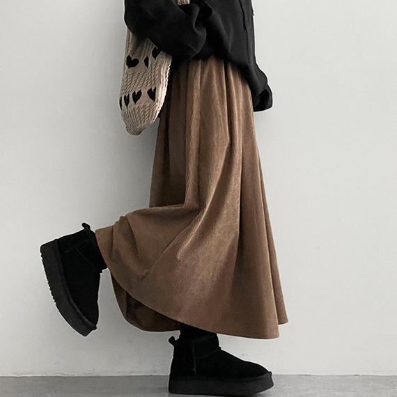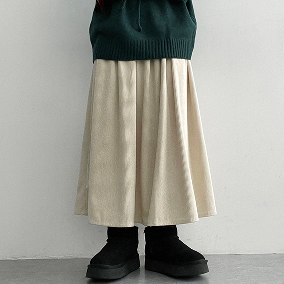 コーデュロイタック入りプリーツロングスカート