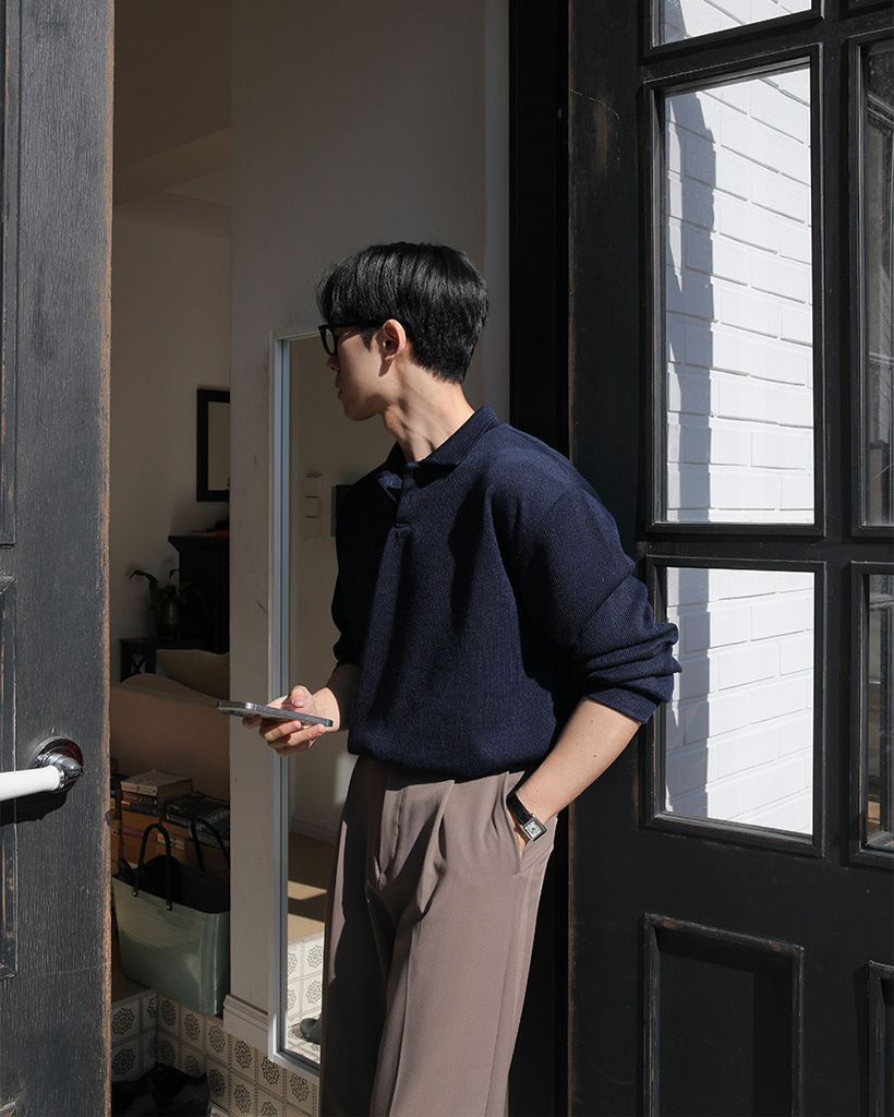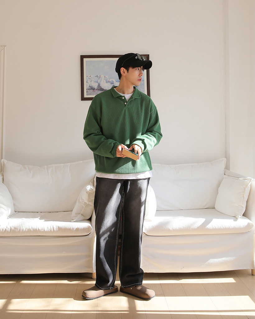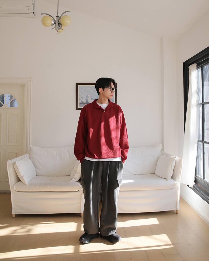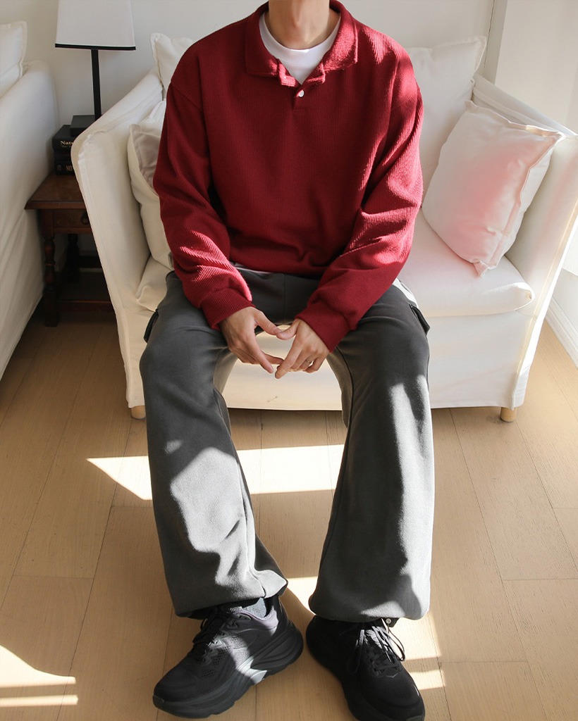 (10color) ツーボタンカラーニットスウェットシャツ
