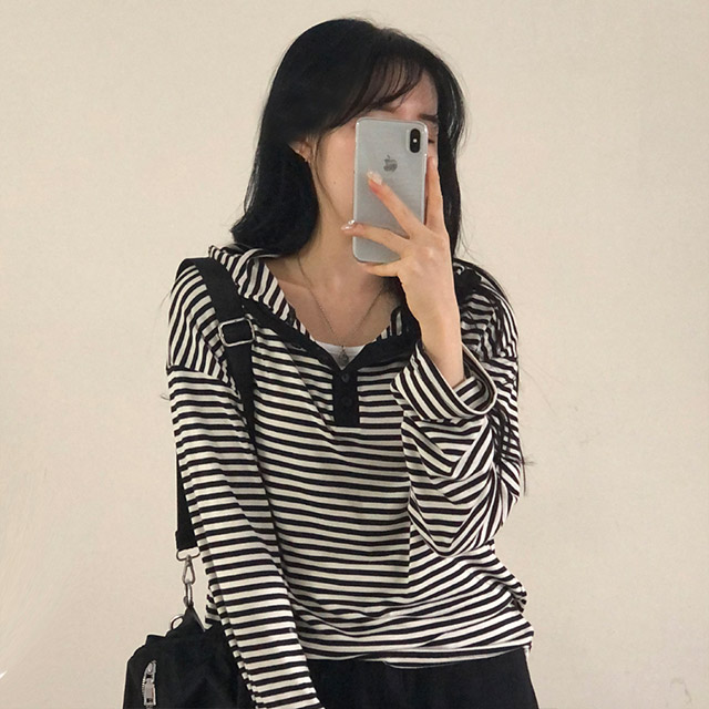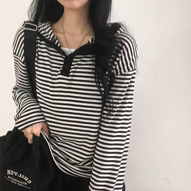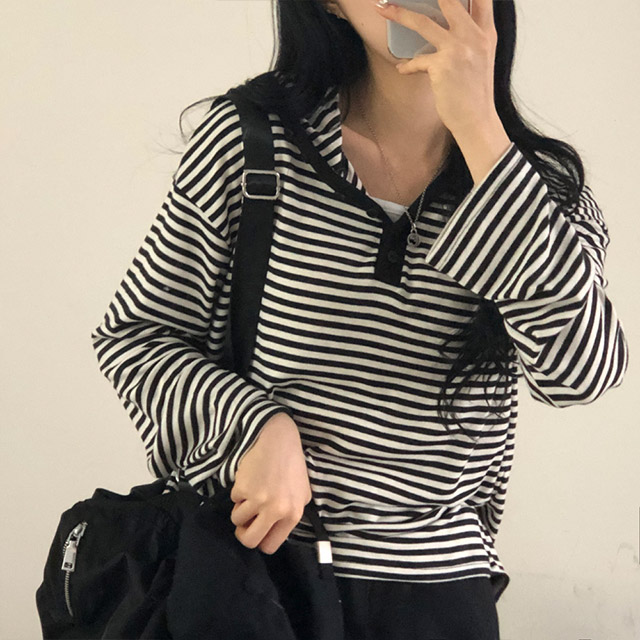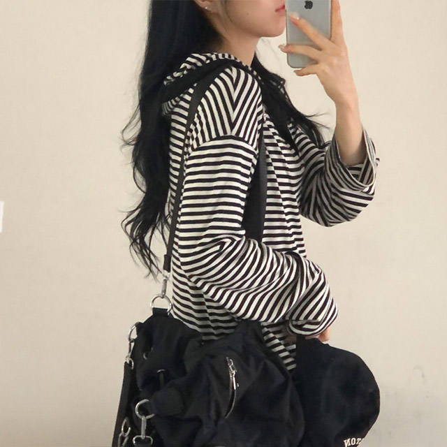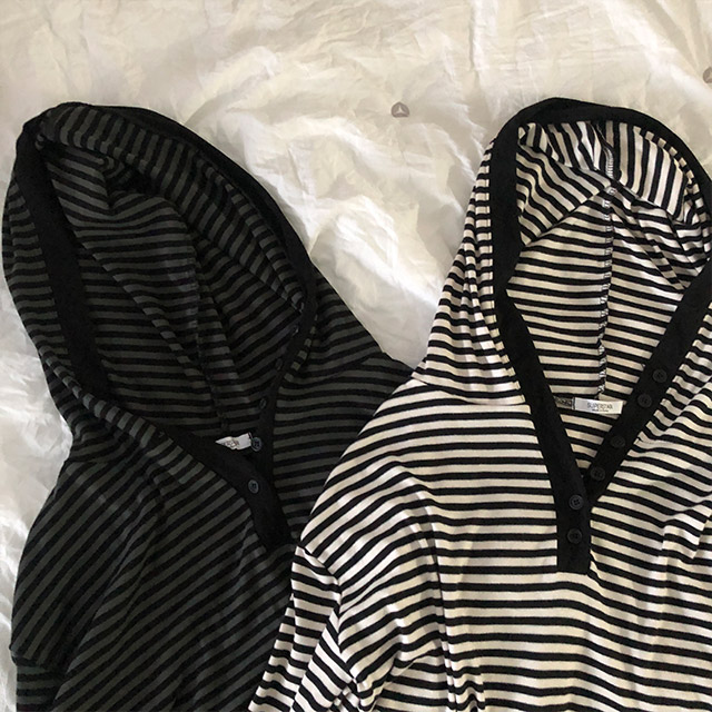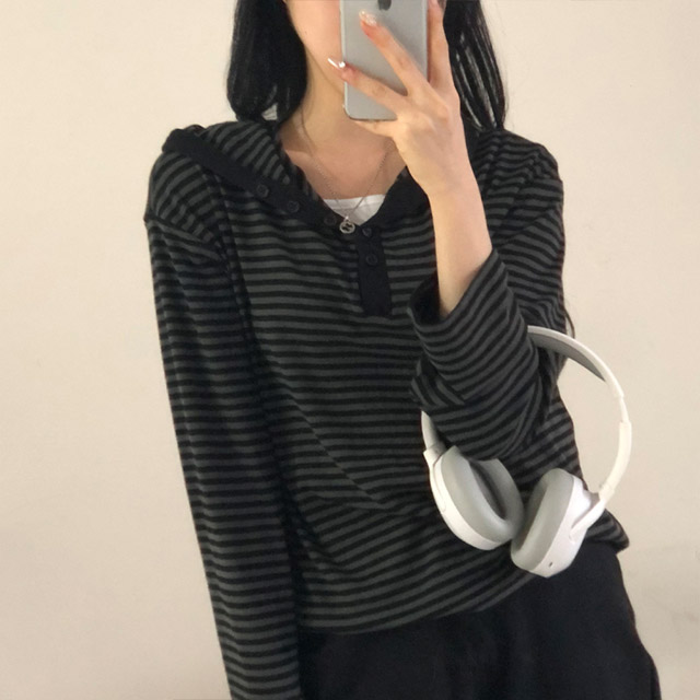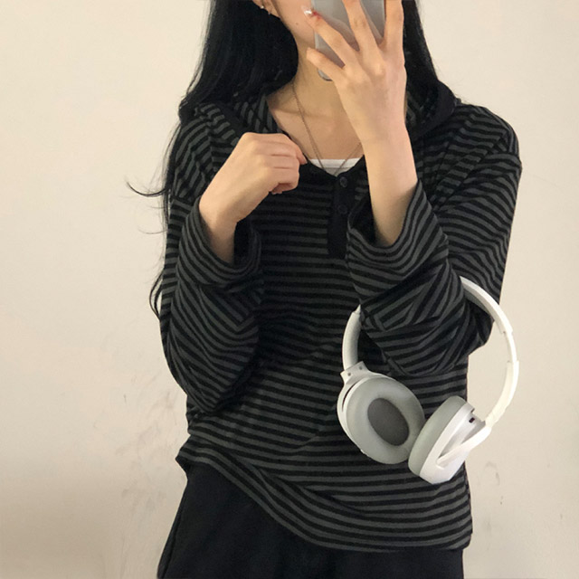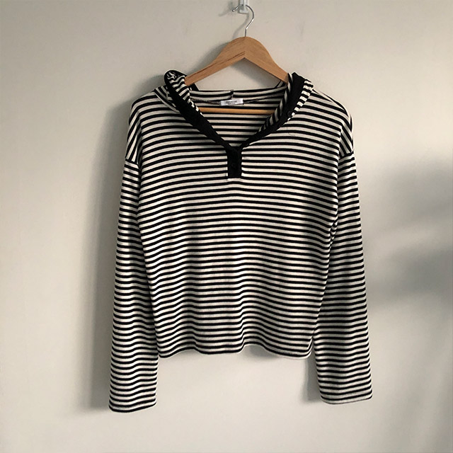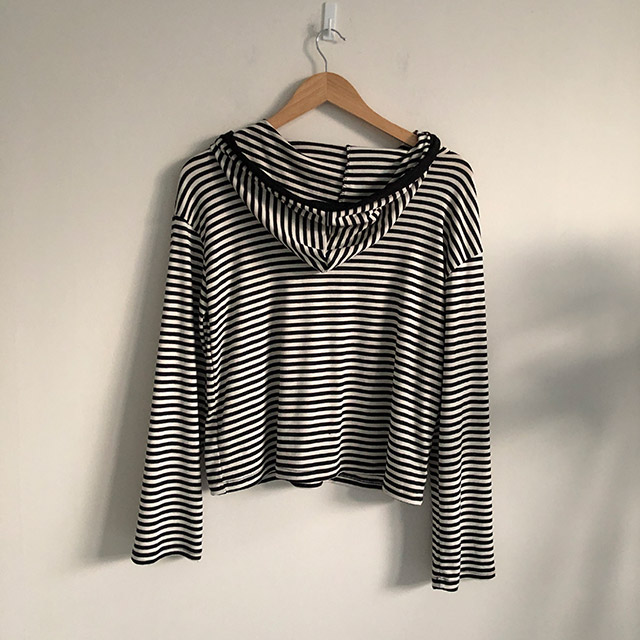 ボアボーダーボタンフードパーカー