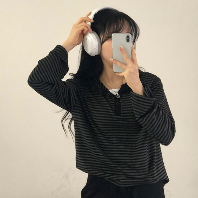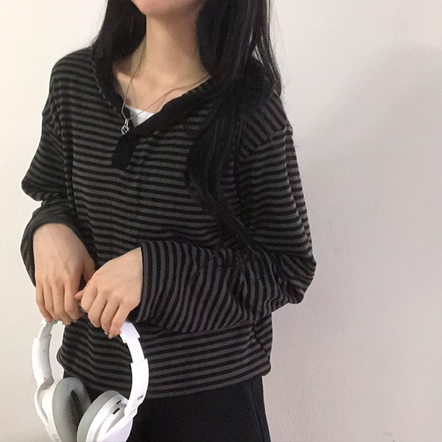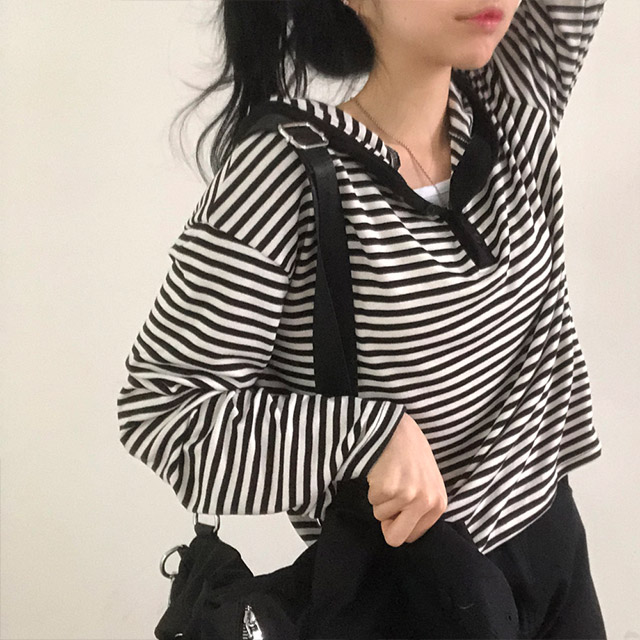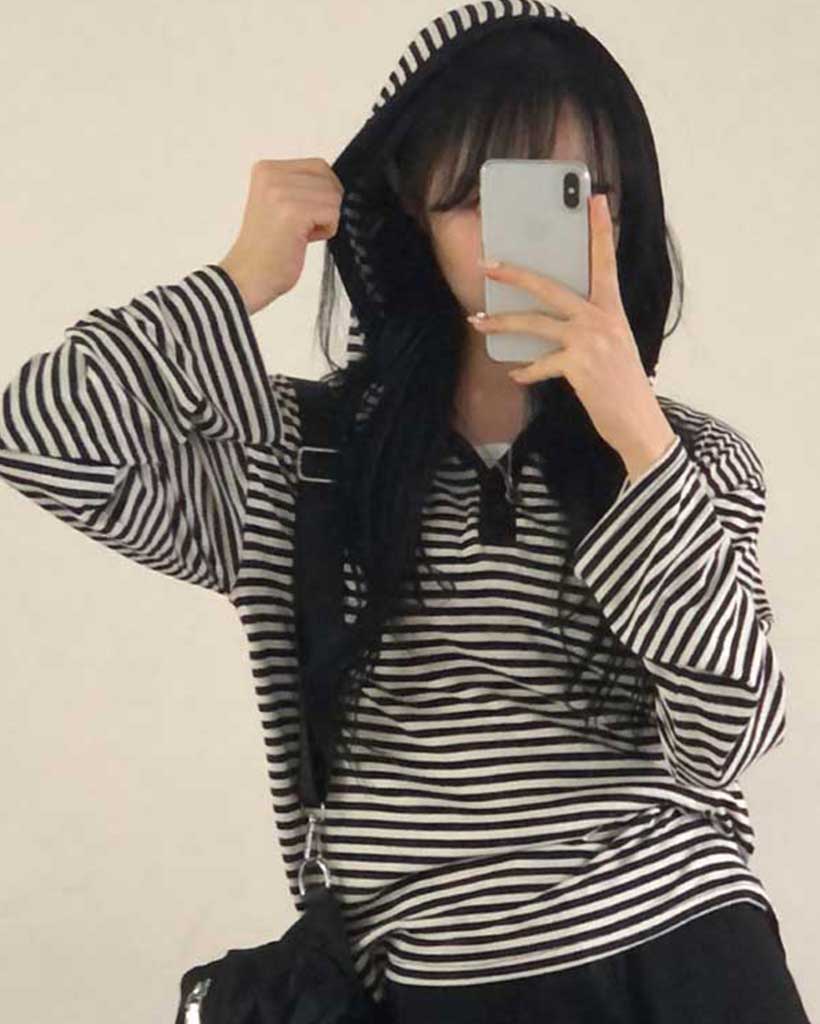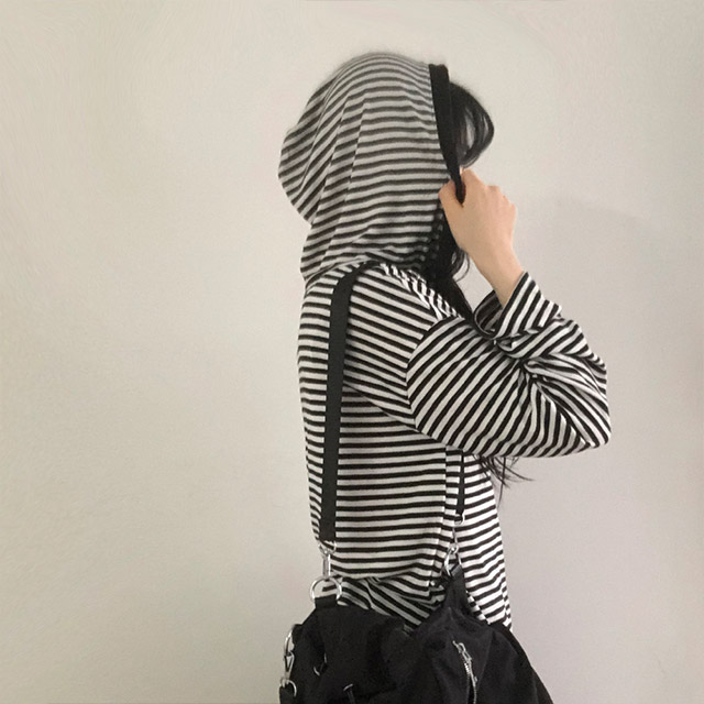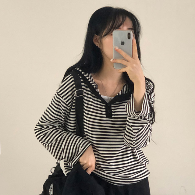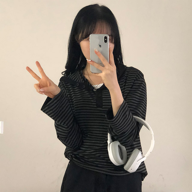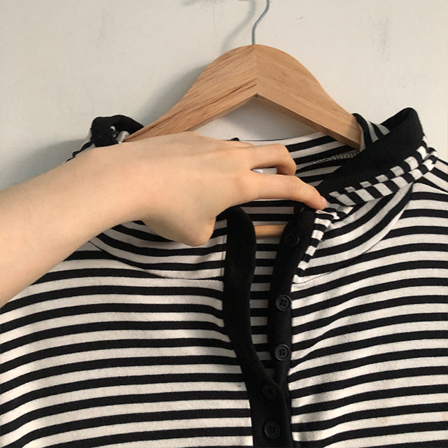 ボアボーダーボタンフードパーカー