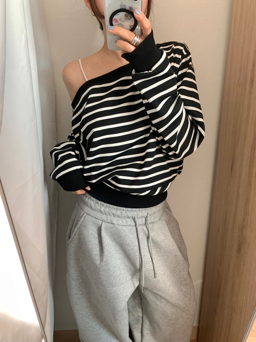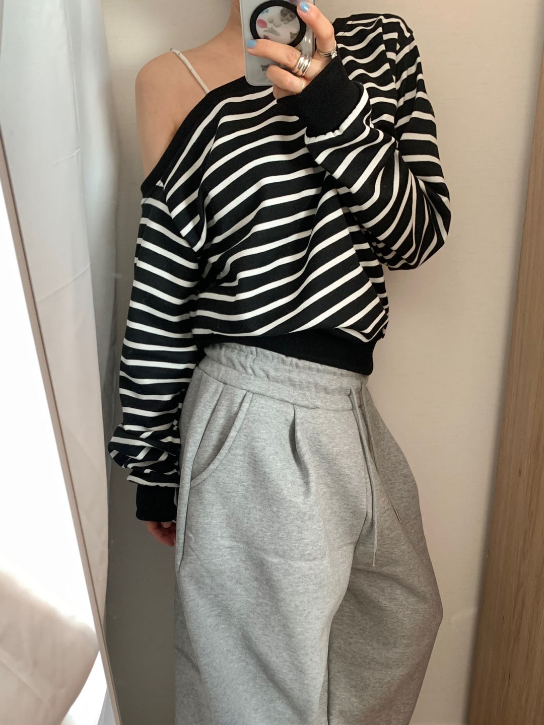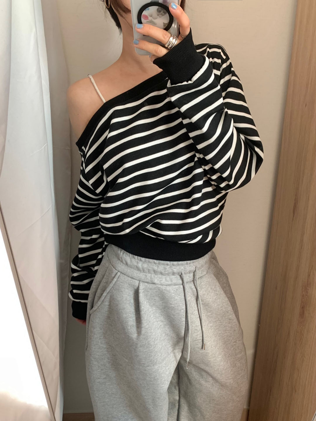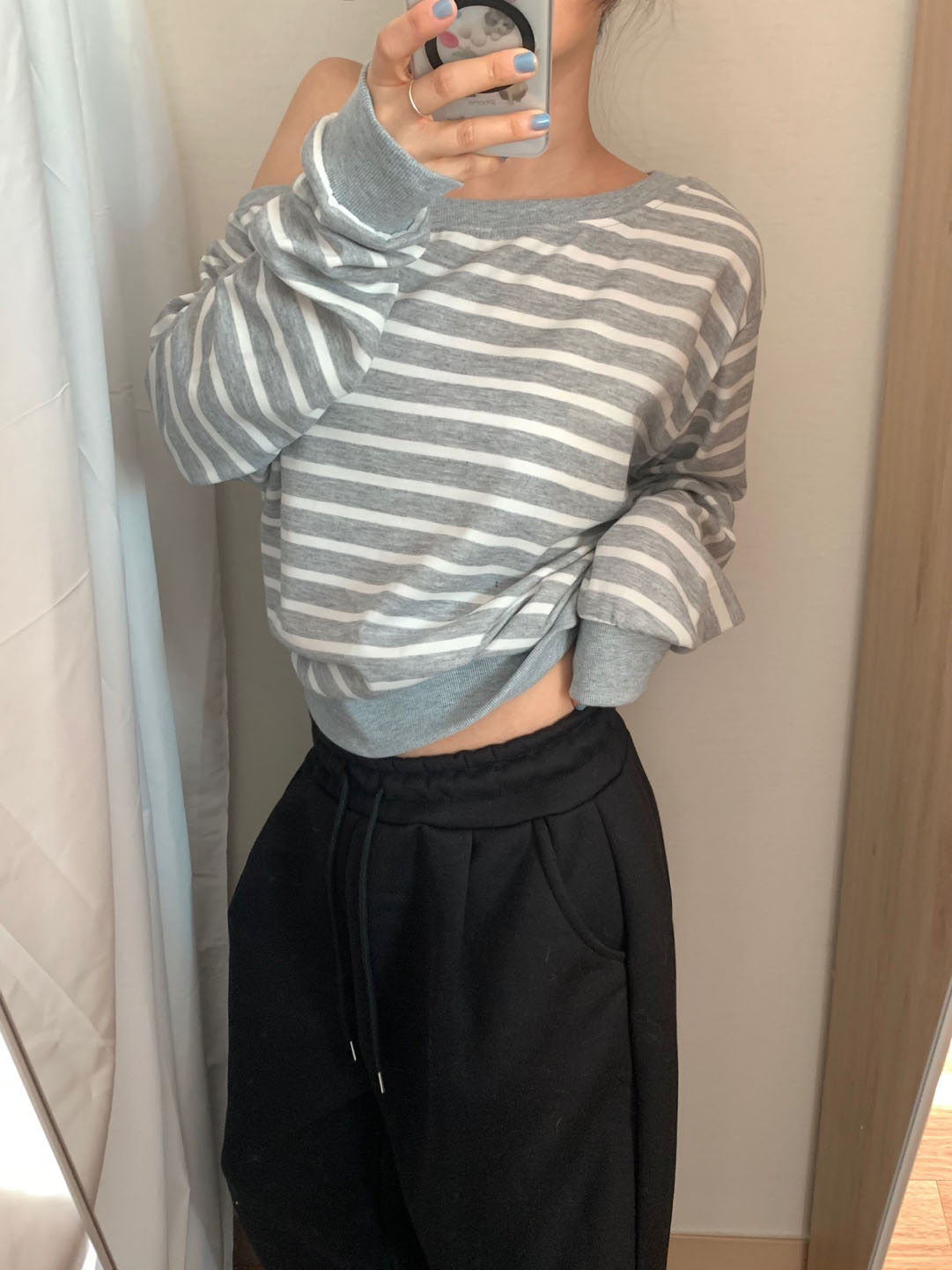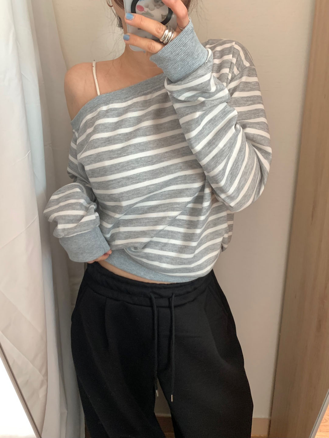 ボーダー柄 オフショル スウェット
