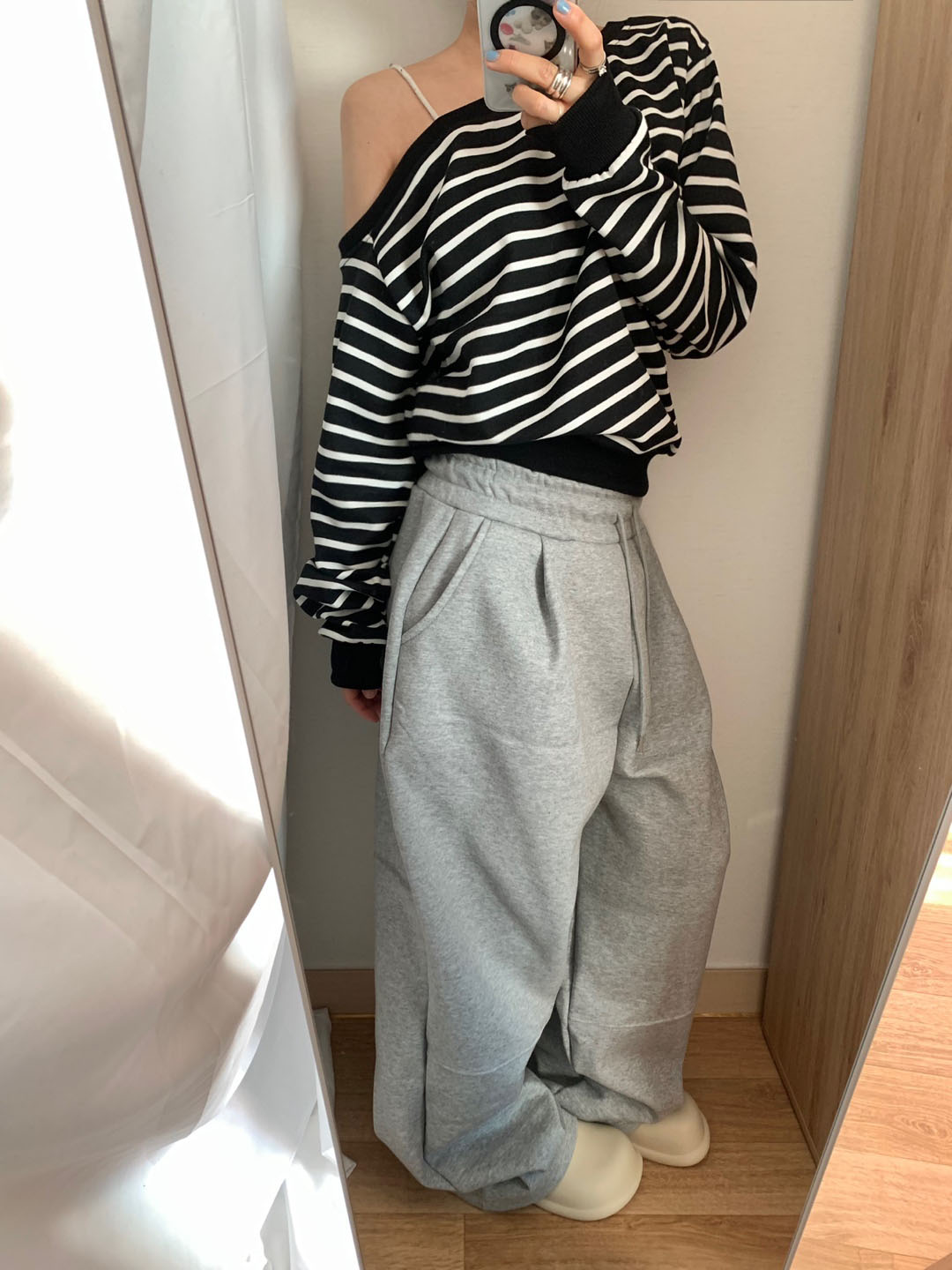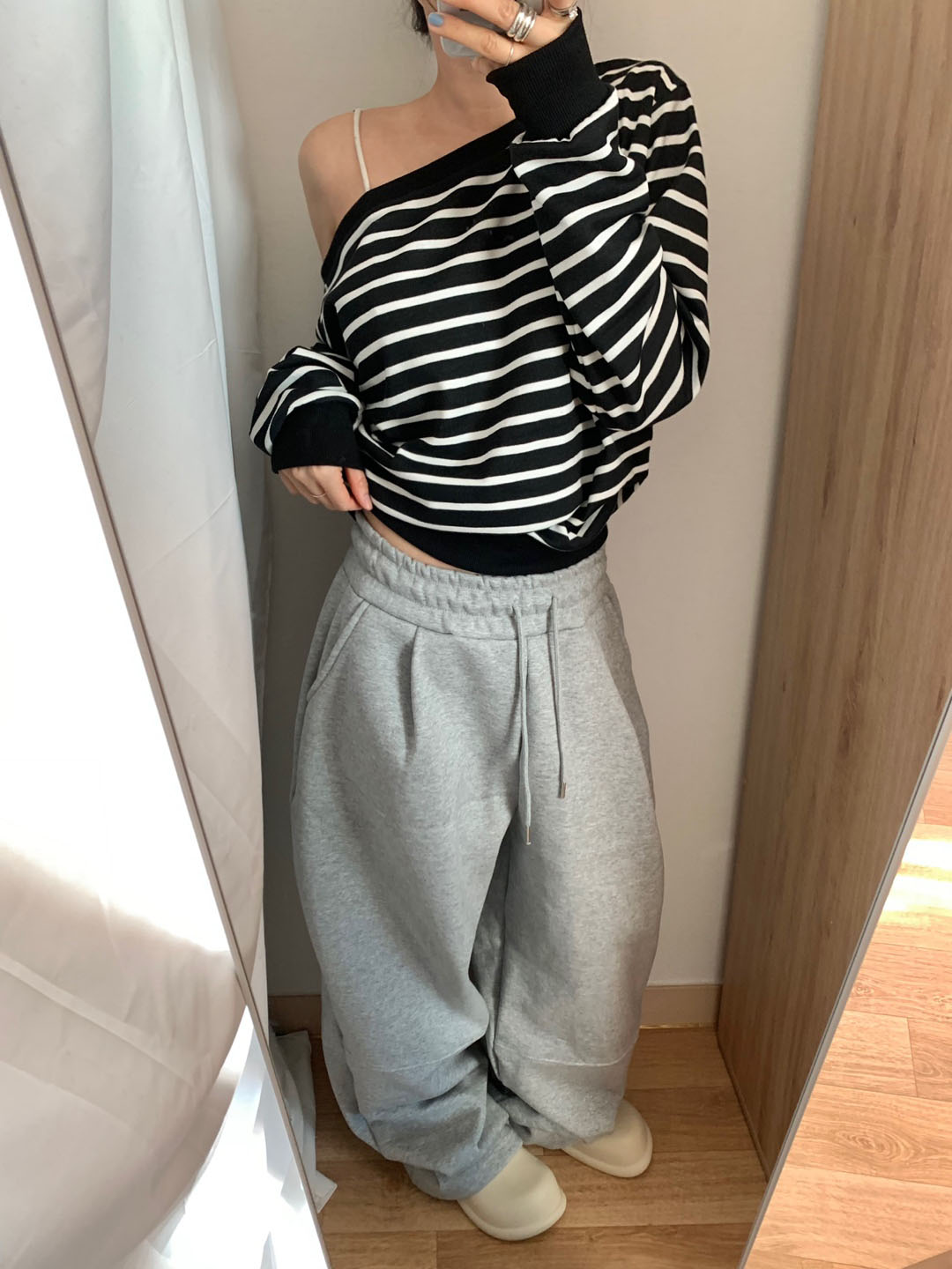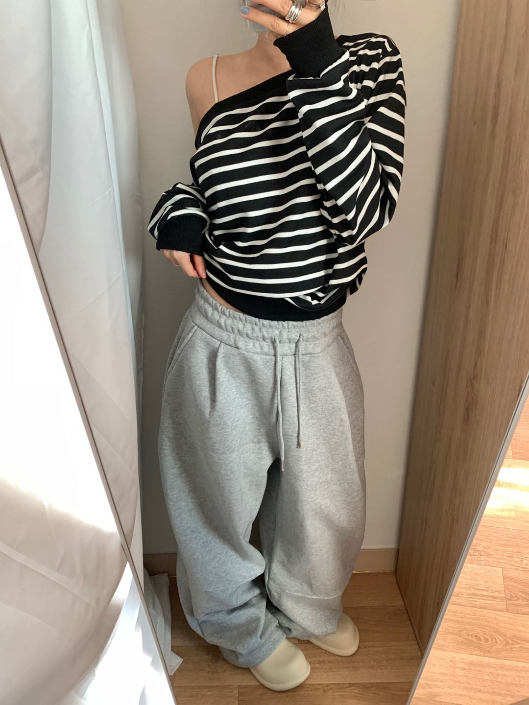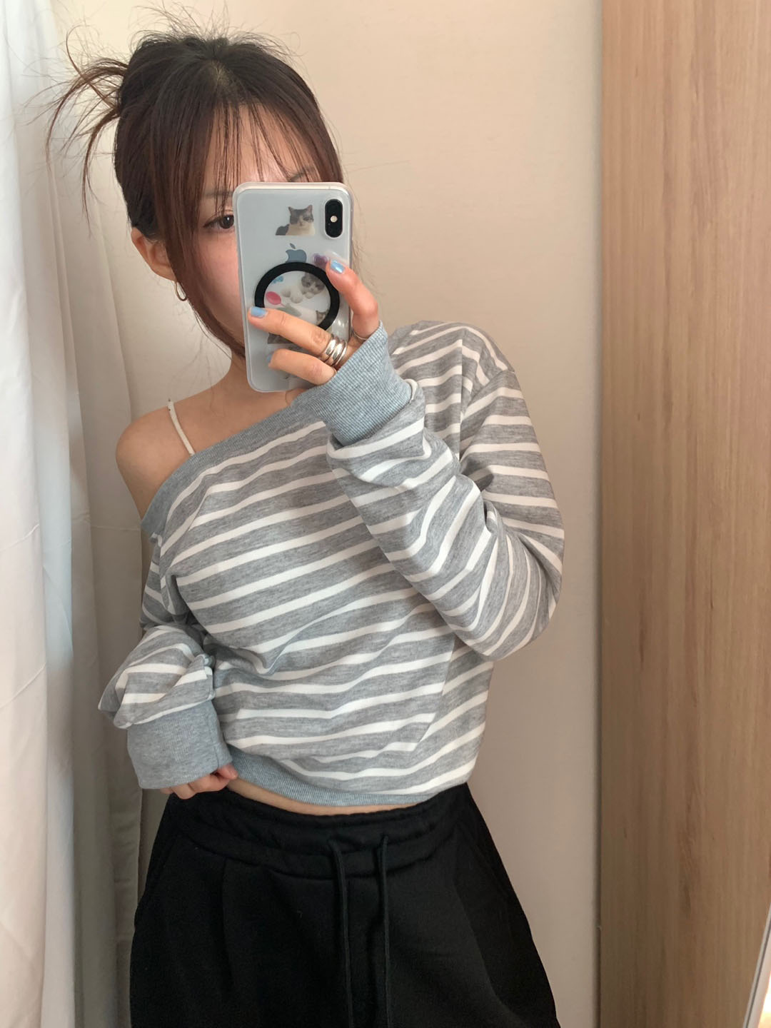 ボーダー柄 オフショル スウェット