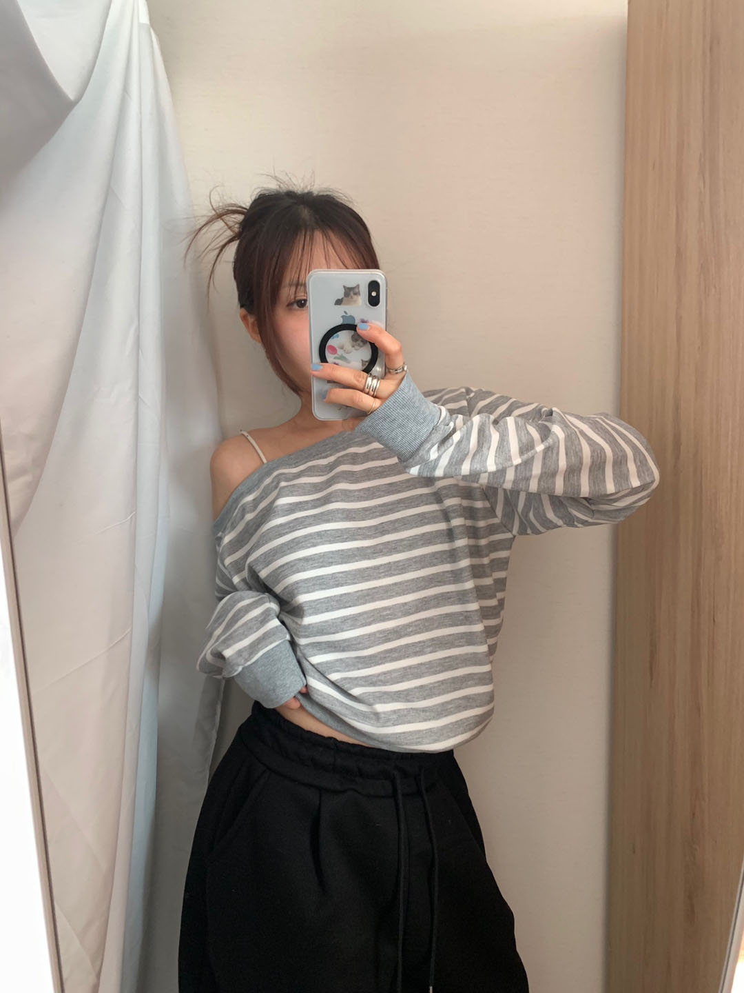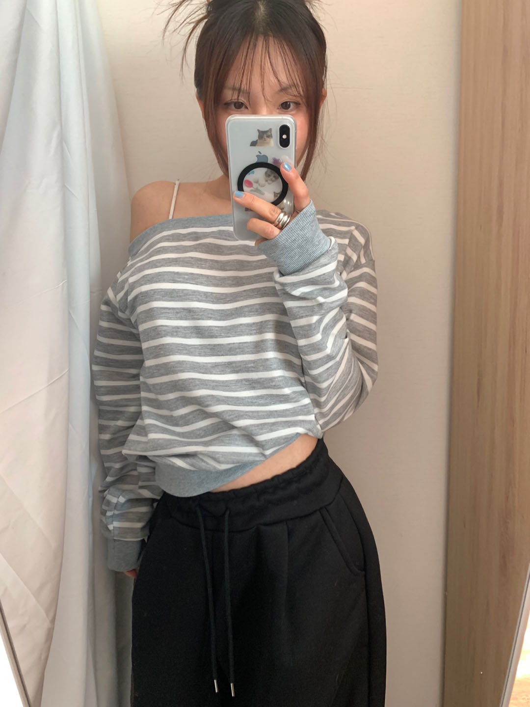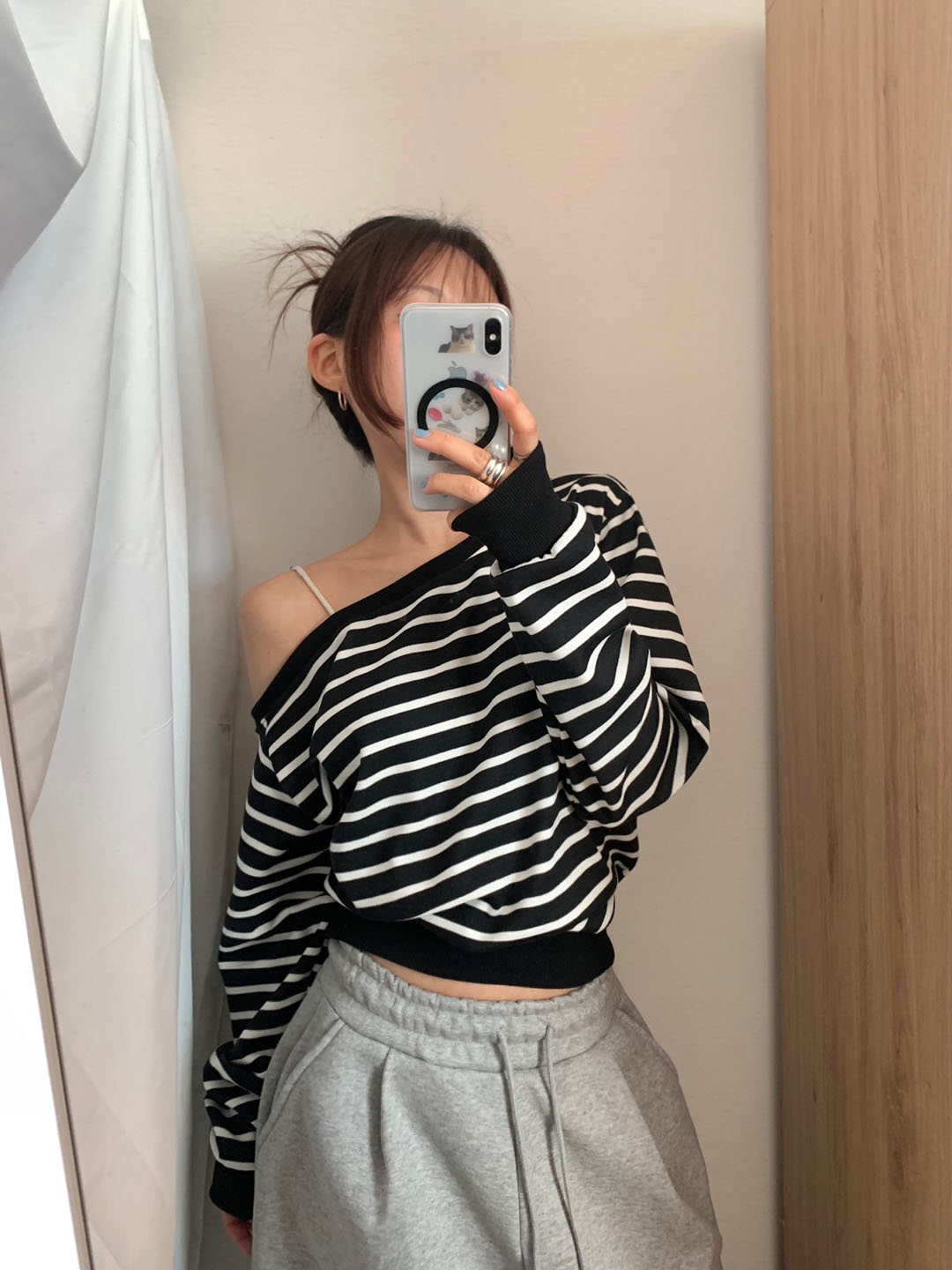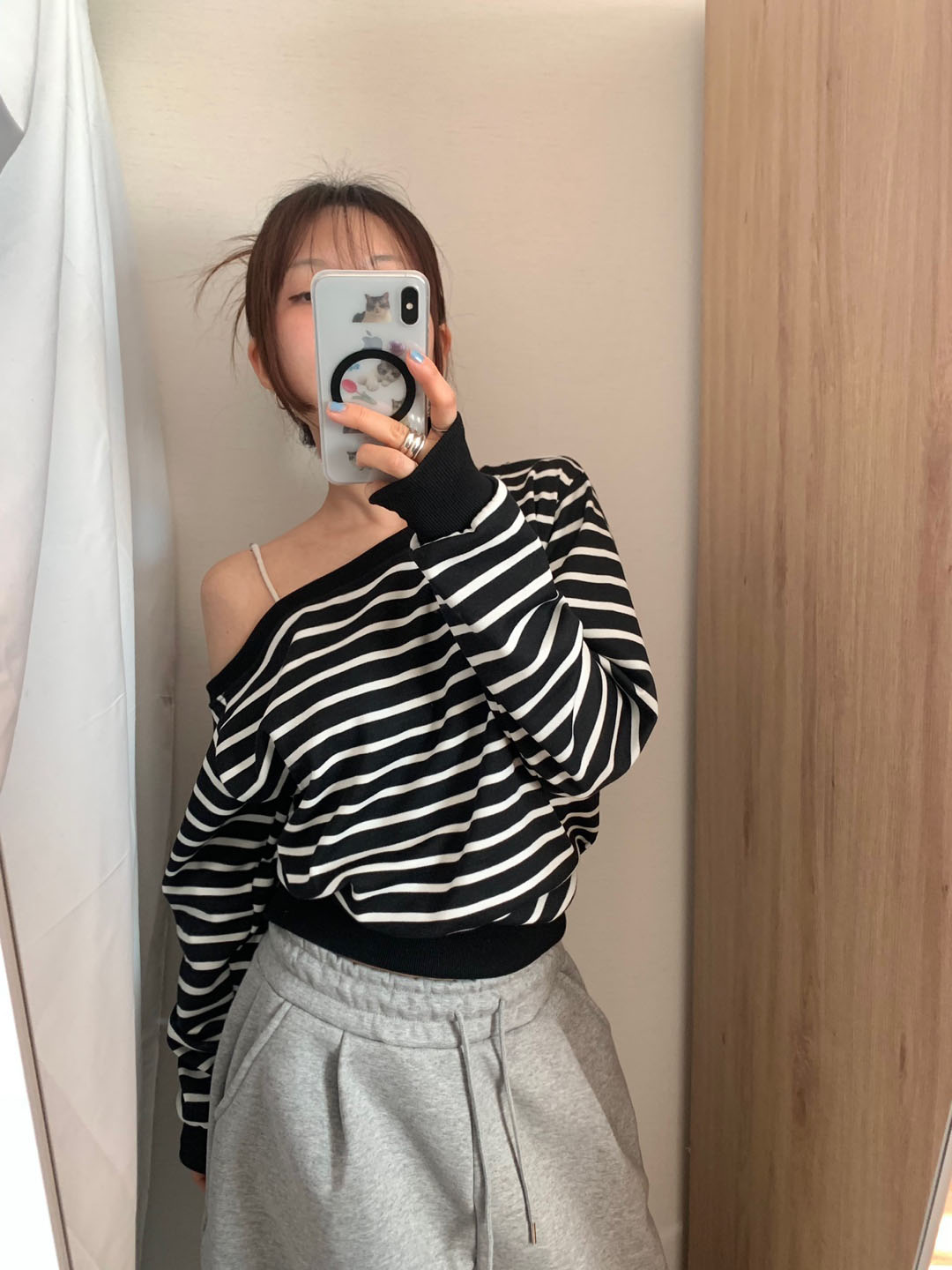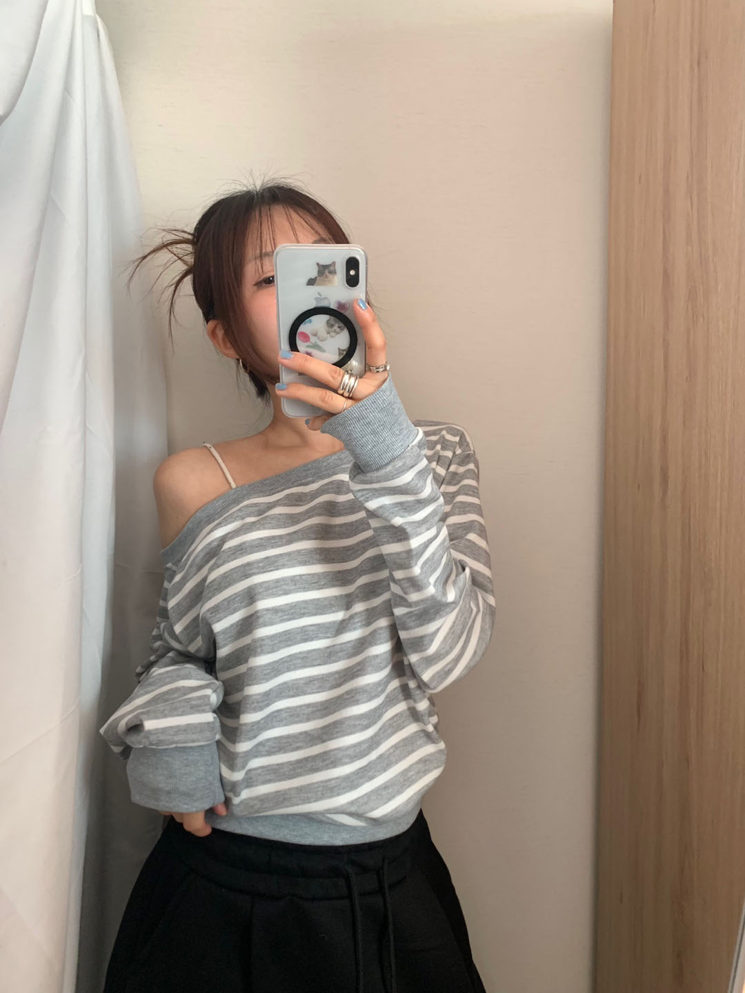 ボーダー柄 オフショル スウェット