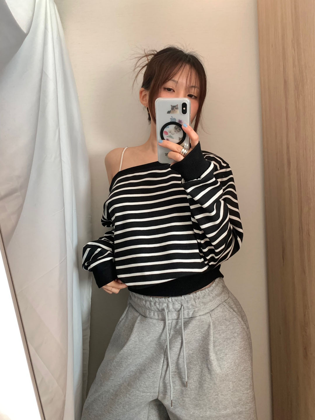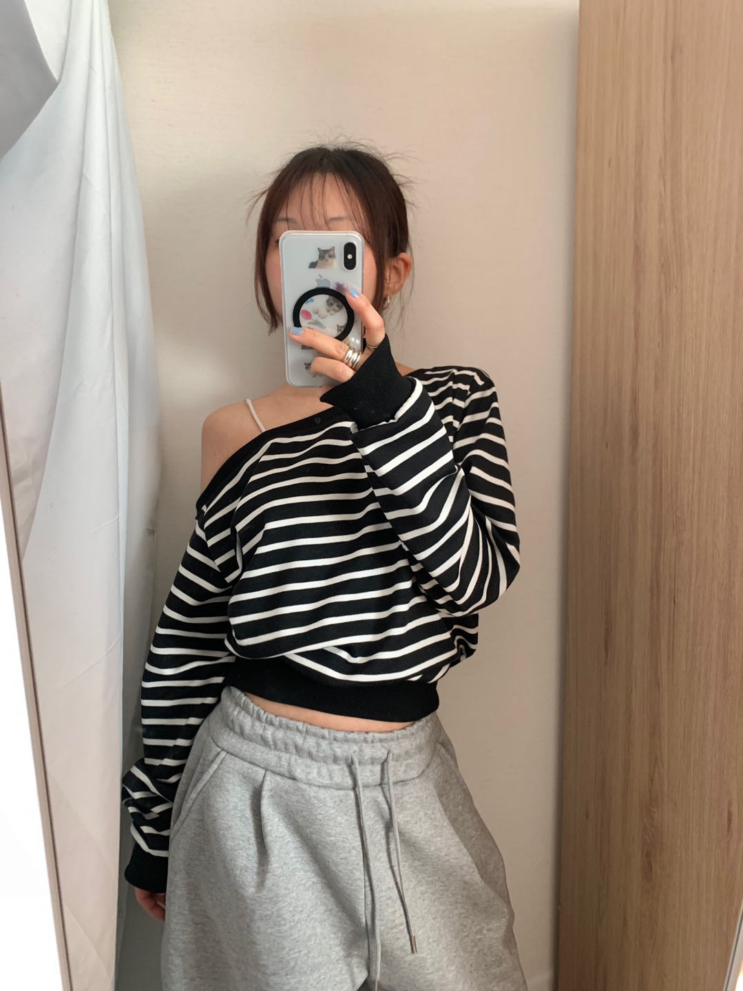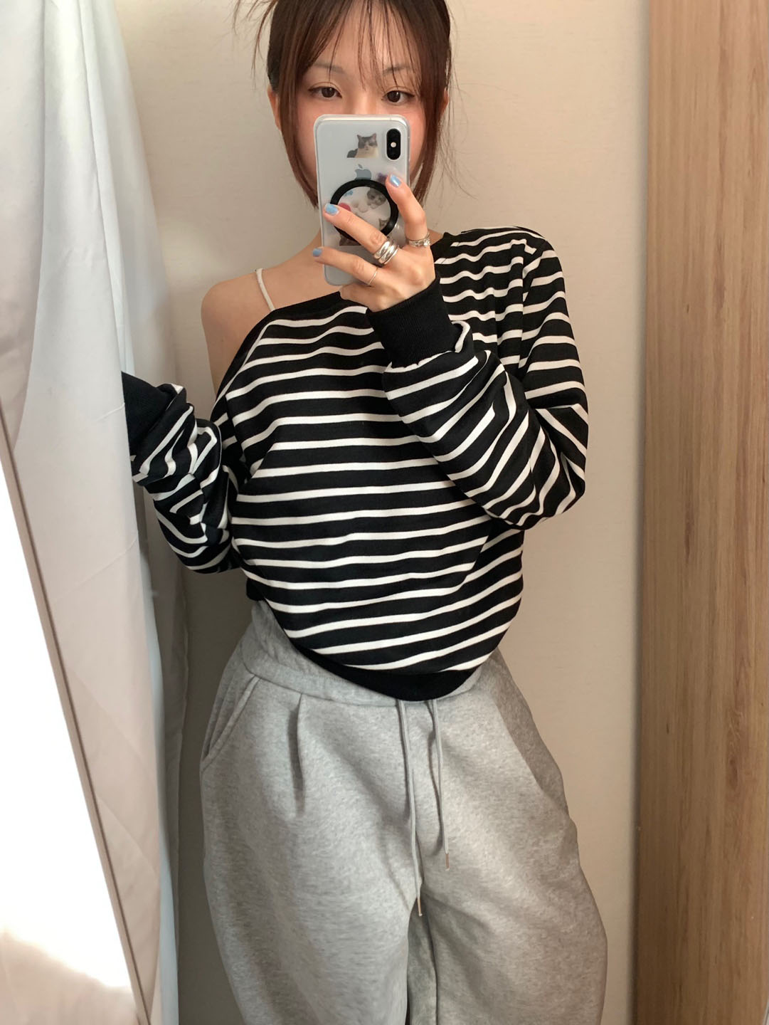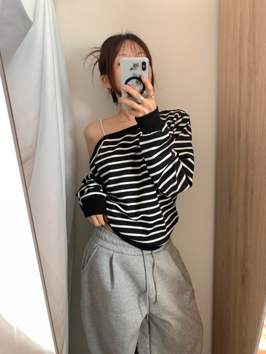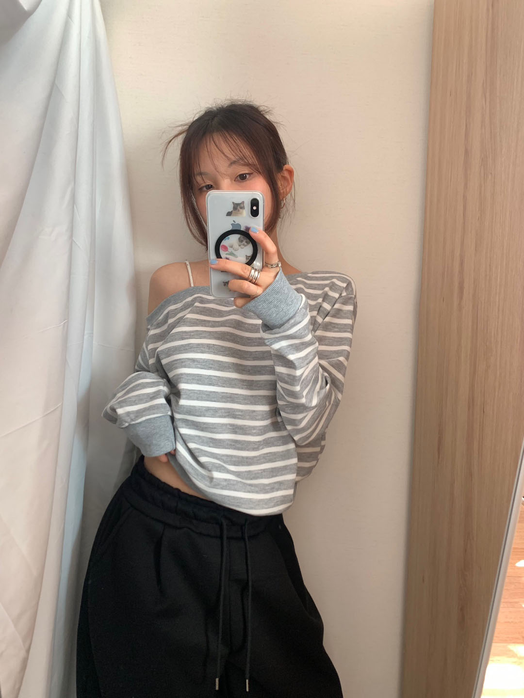 ボーダー柄 オフショル スウェット