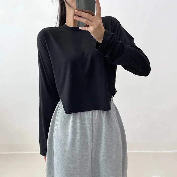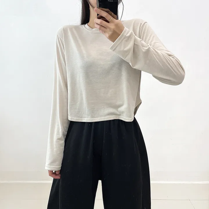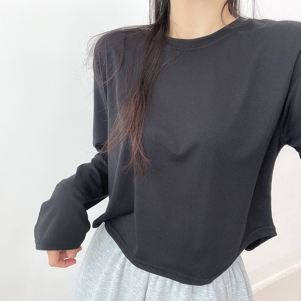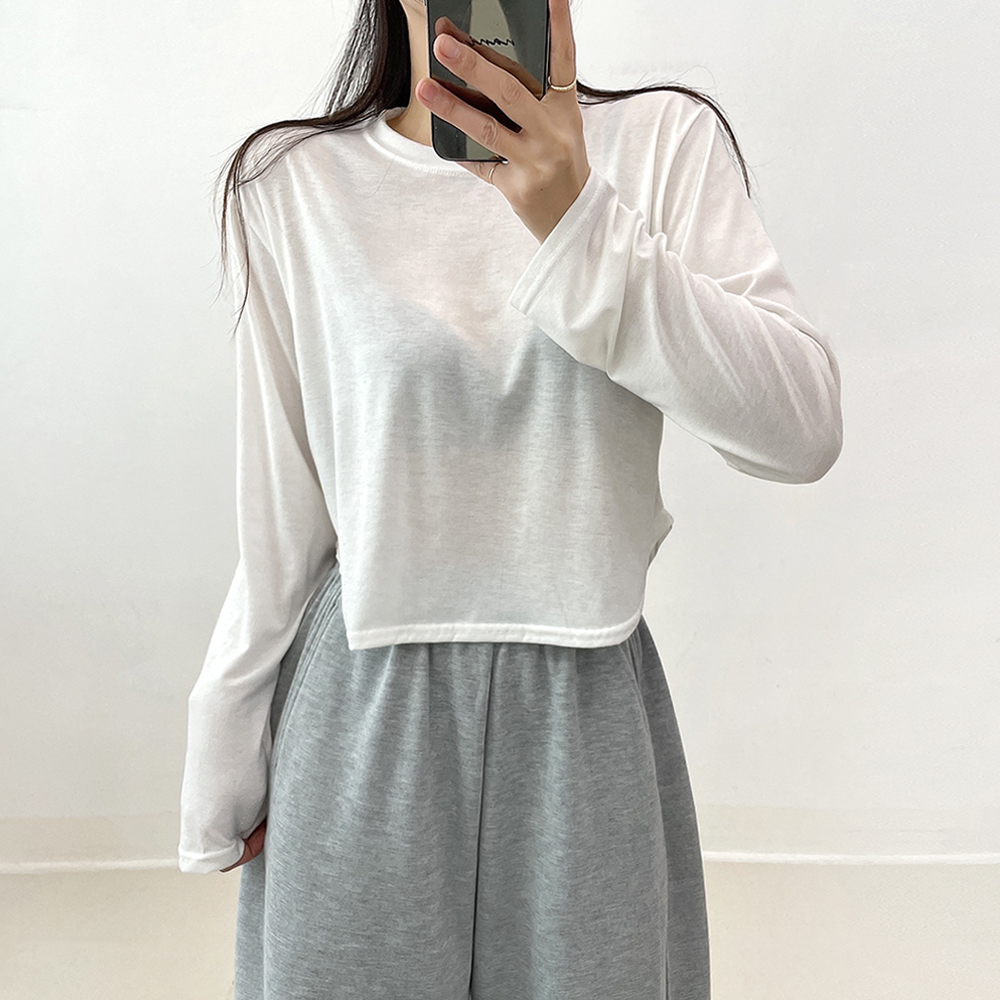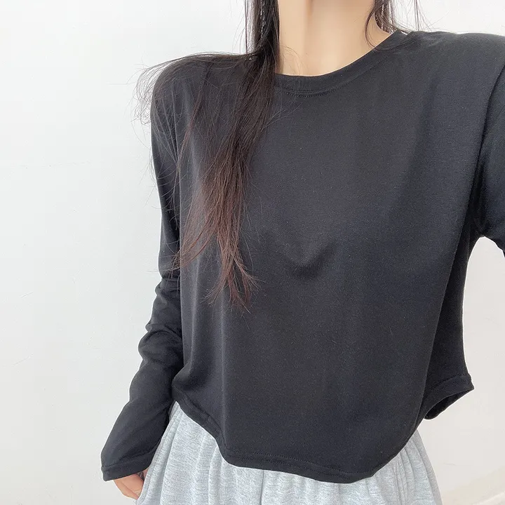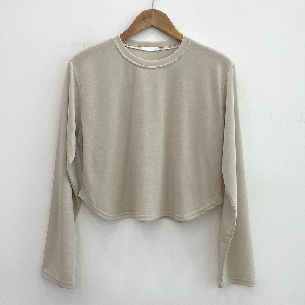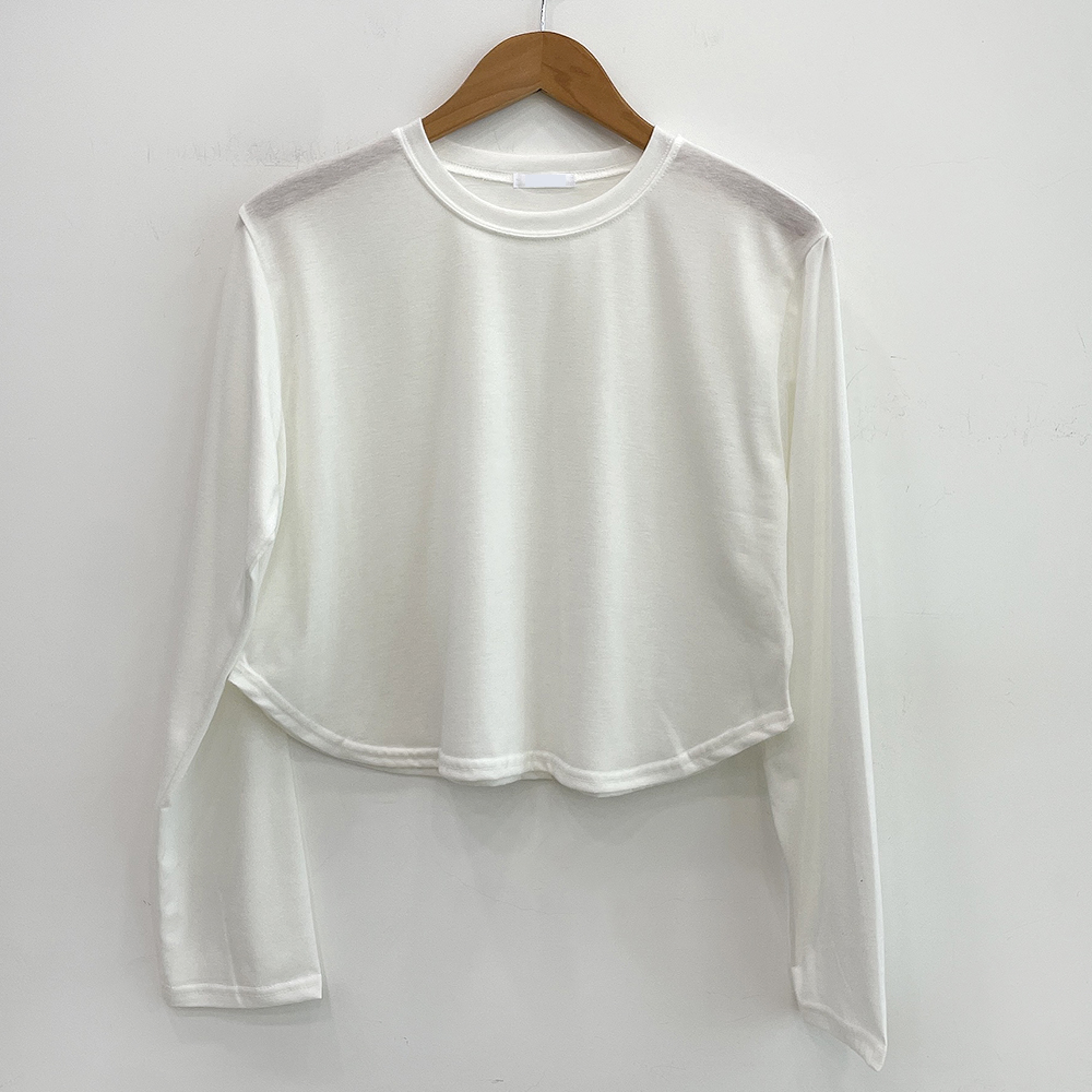 ルーズラウンドセミクロップドレイヤード長袖Tシャツ