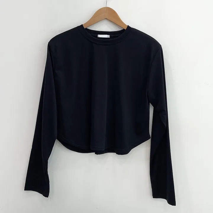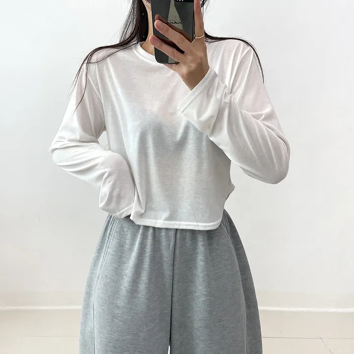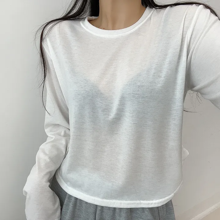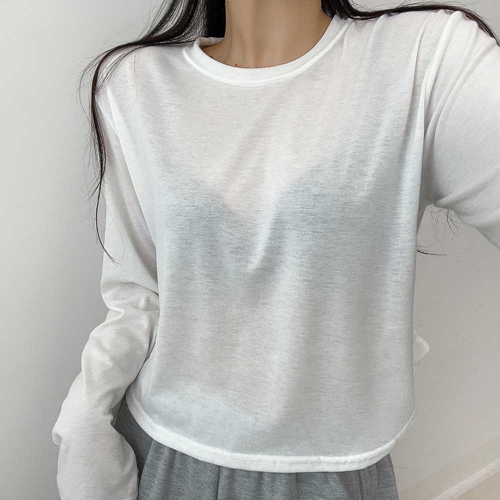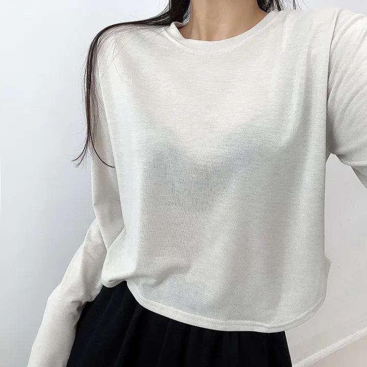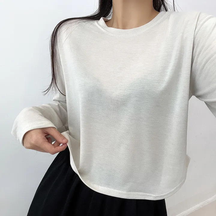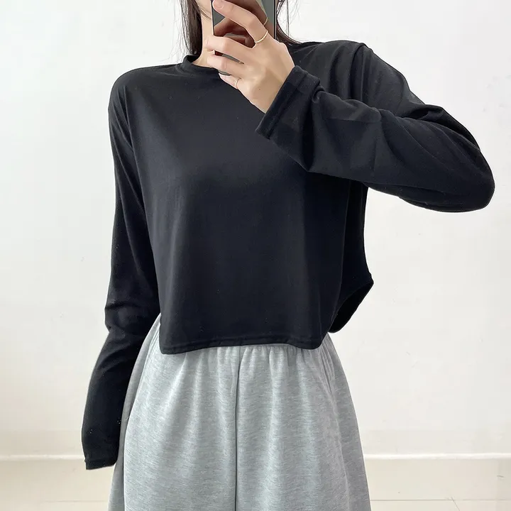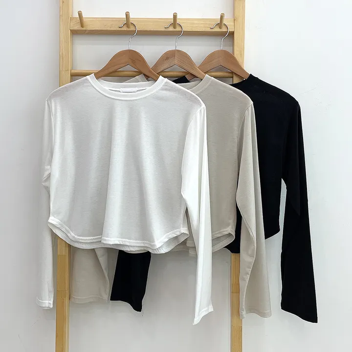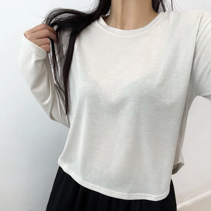 ルーズラウンドセミクロップドレイヤード長袖Tシャツ