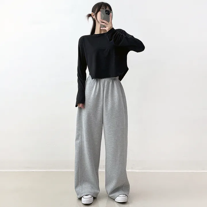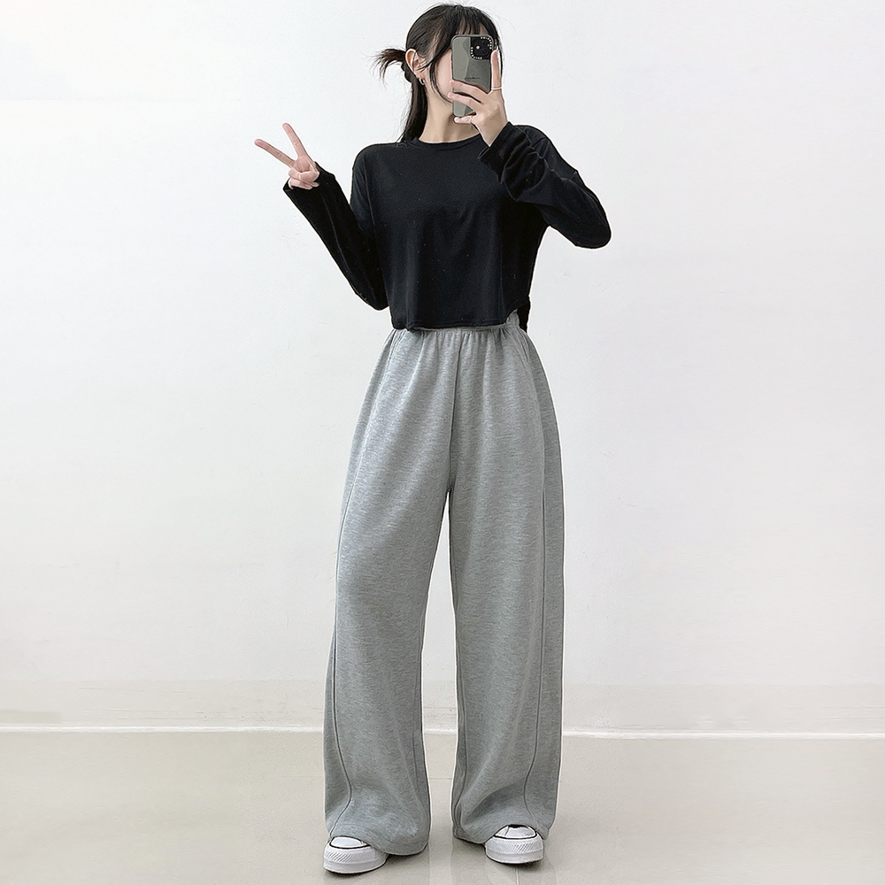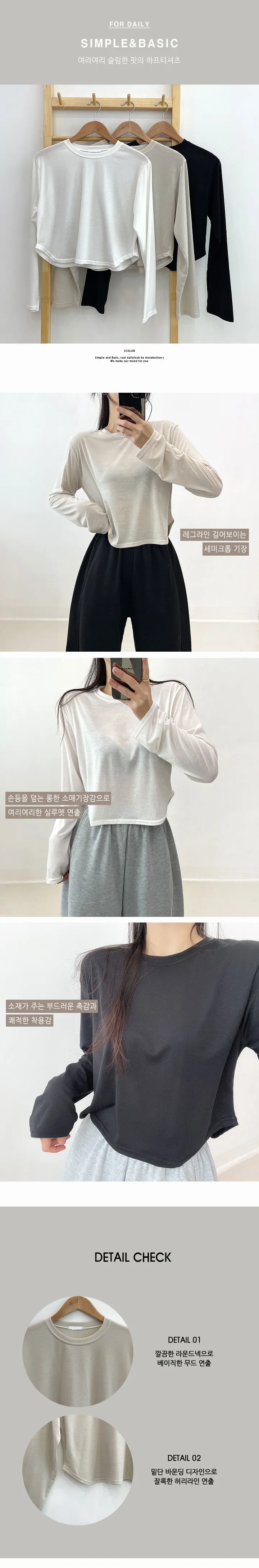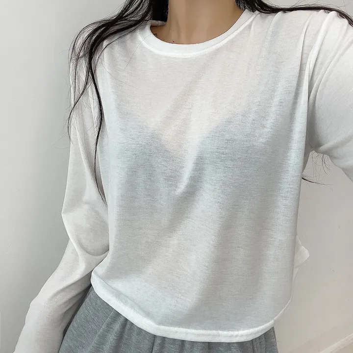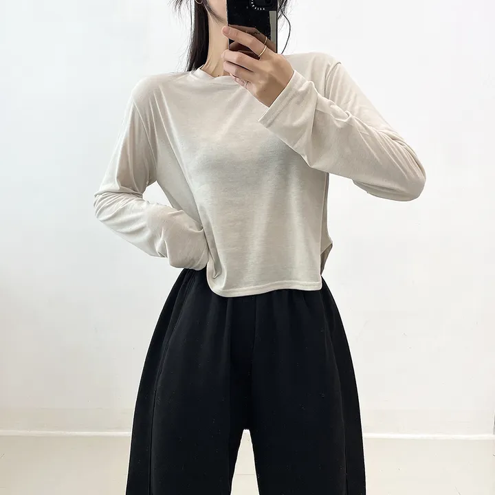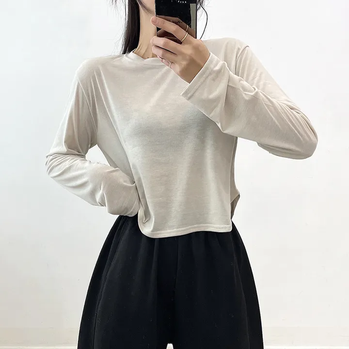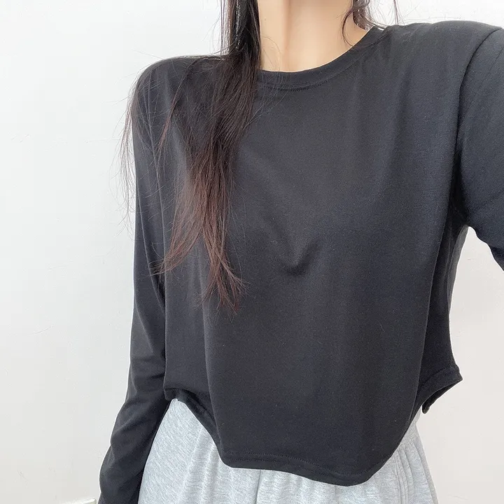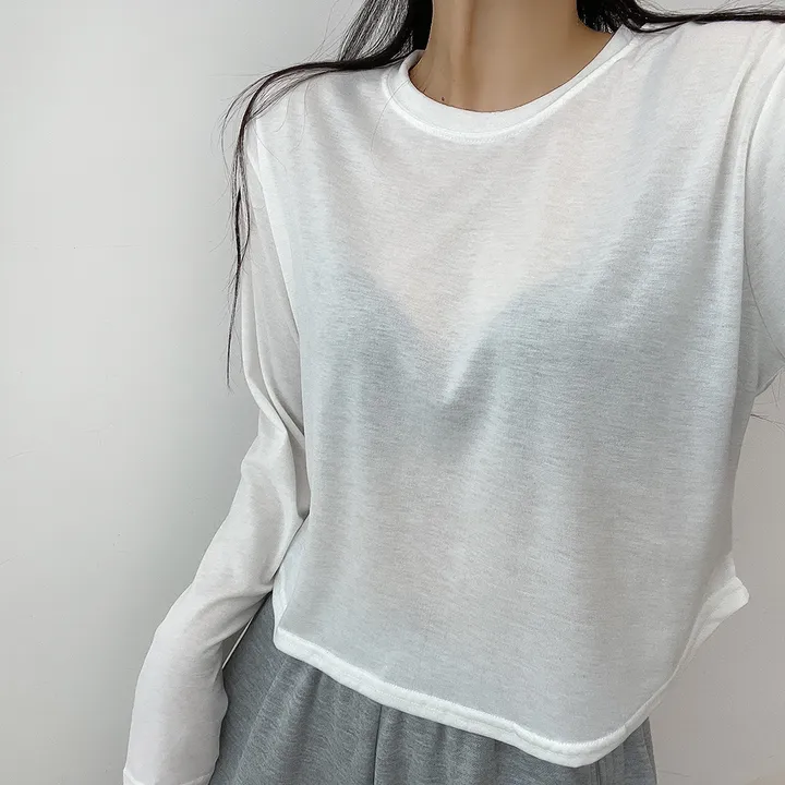 ルーズラウンドセミクロップドレイヤード長袖Tシャツ