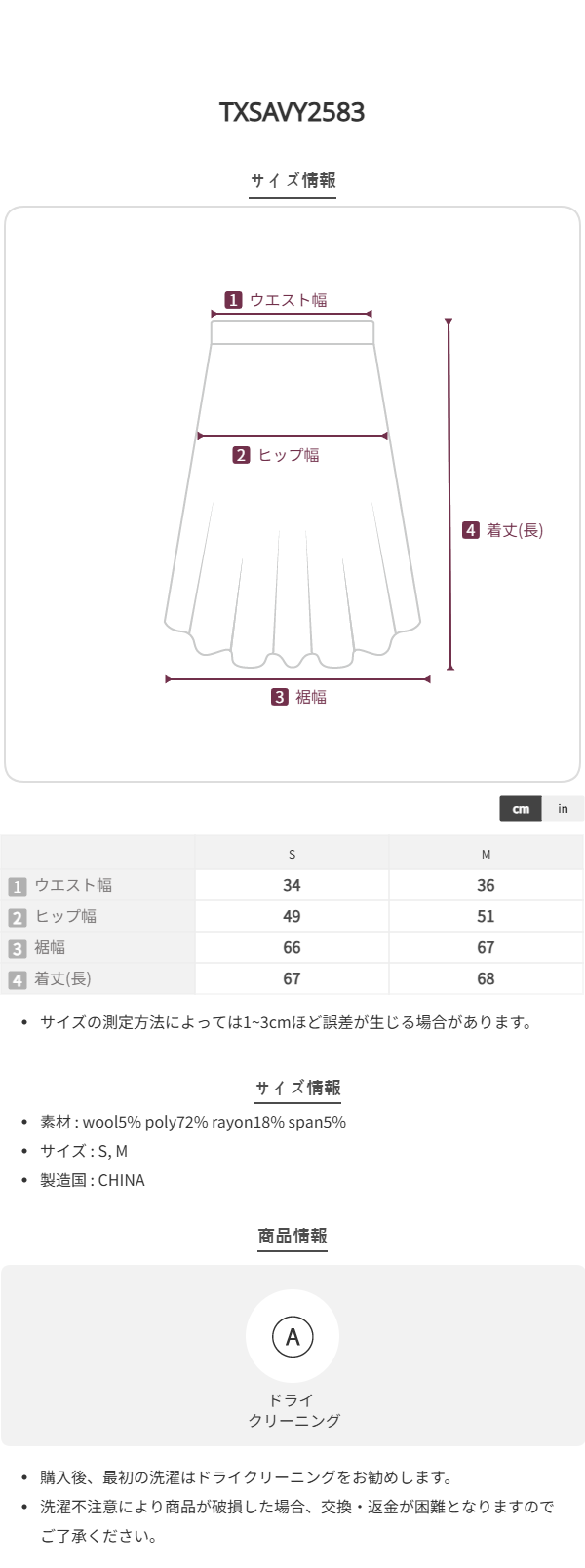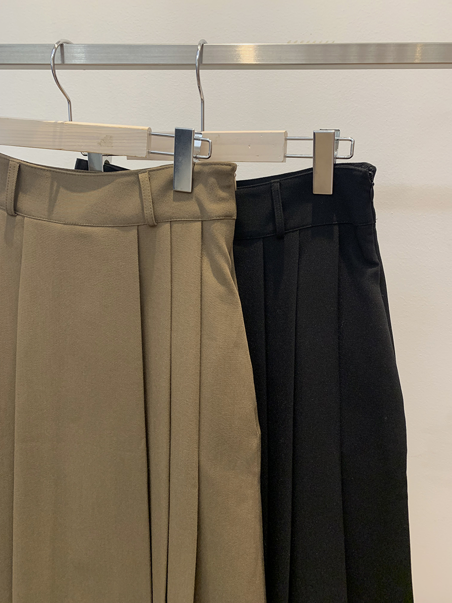 ウールスパンローシャーリングミドル丈プリーツスカート