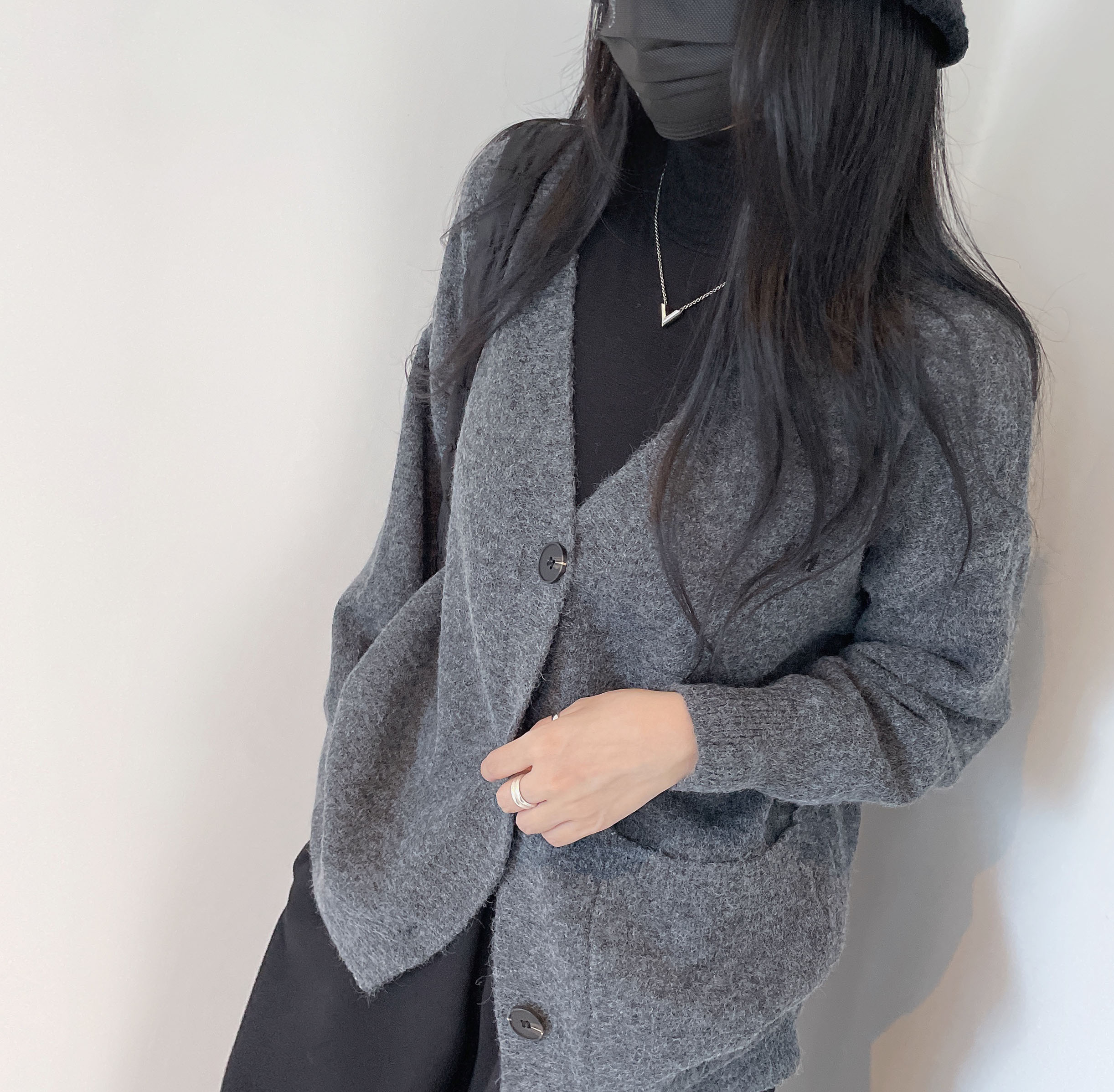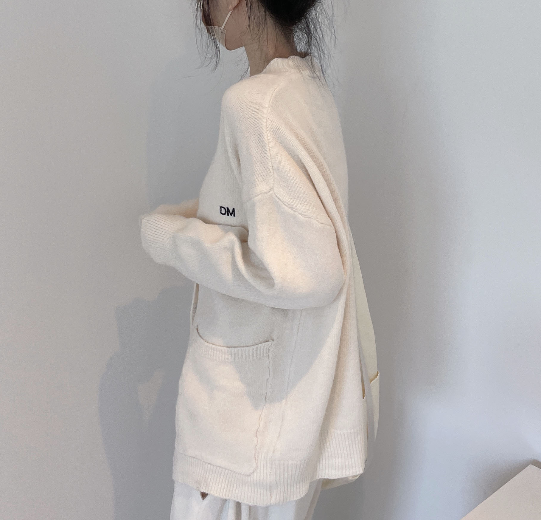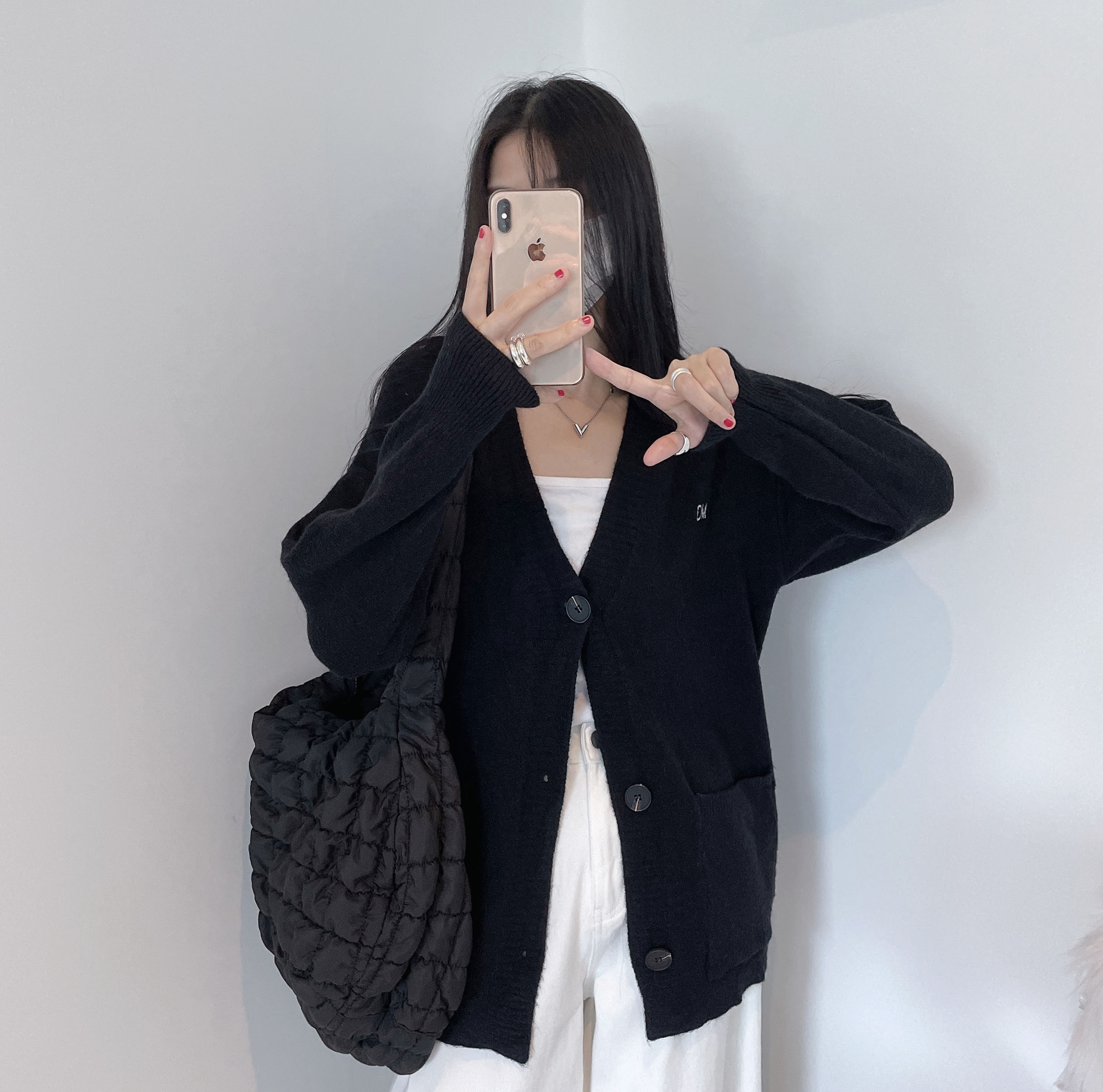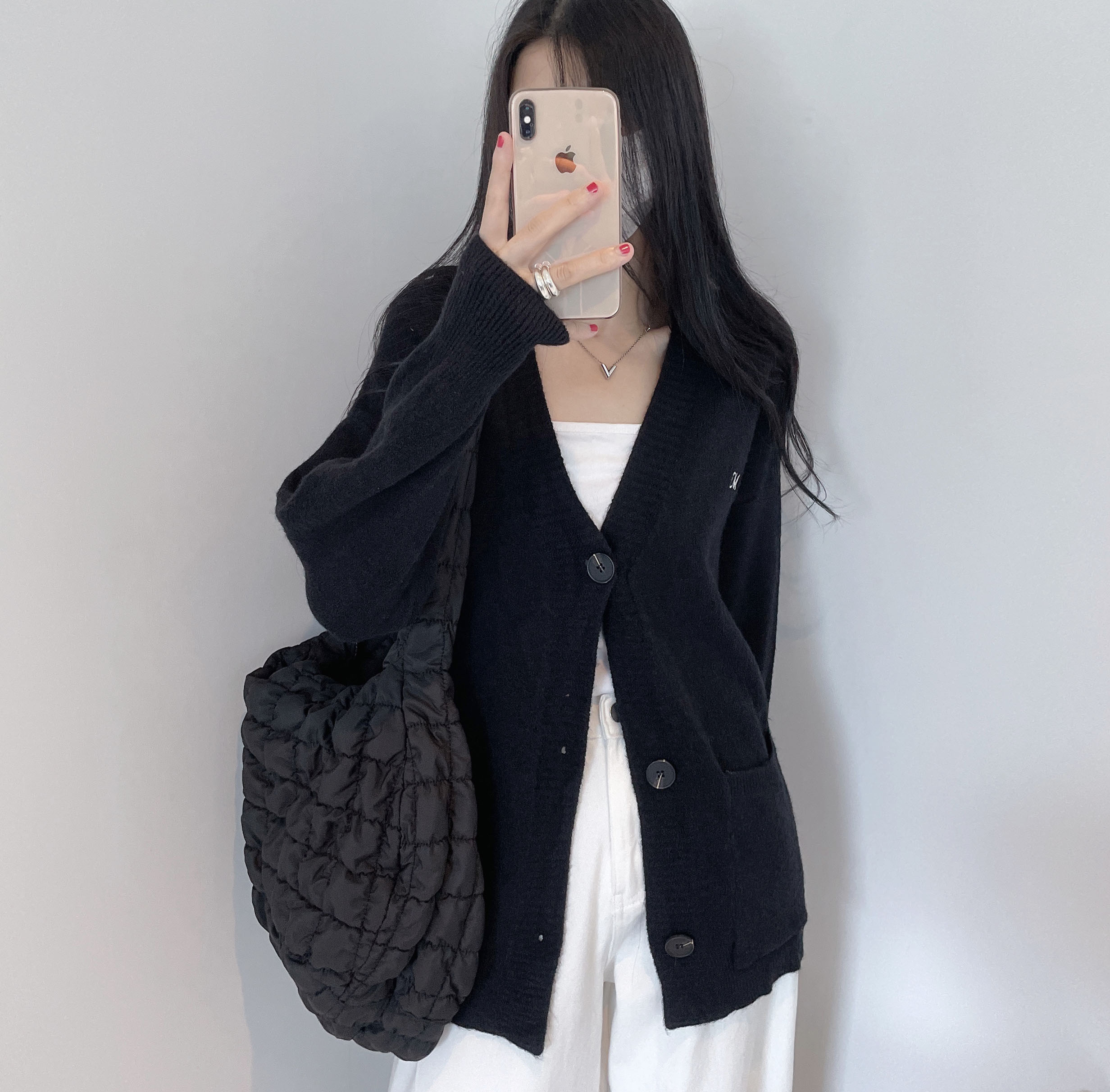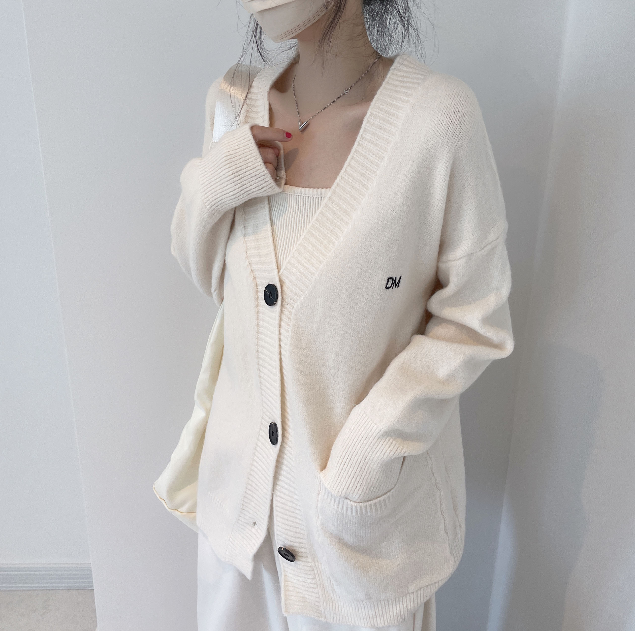 シンプルステッチロゴVネックルーズフィットカーディガン