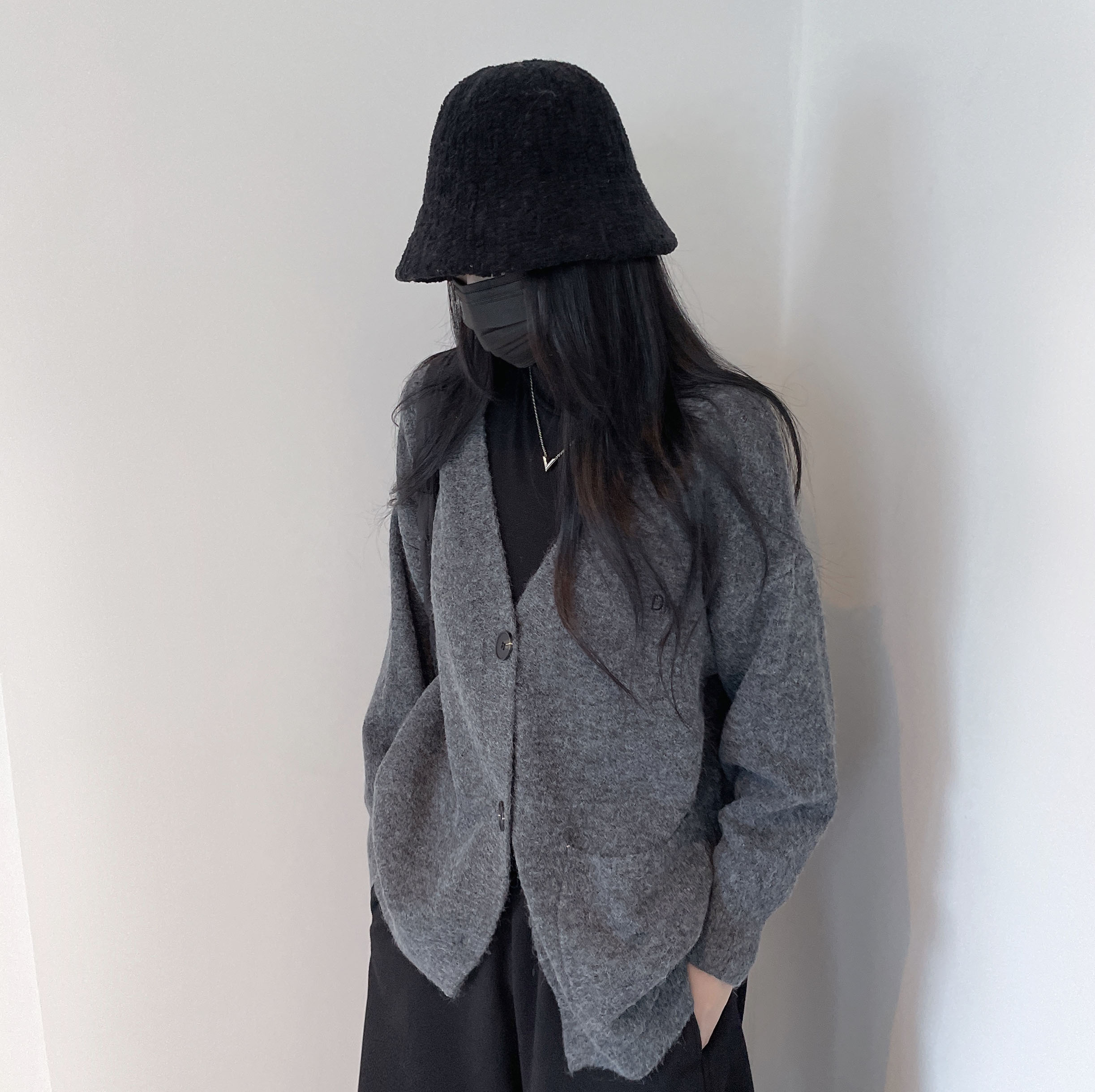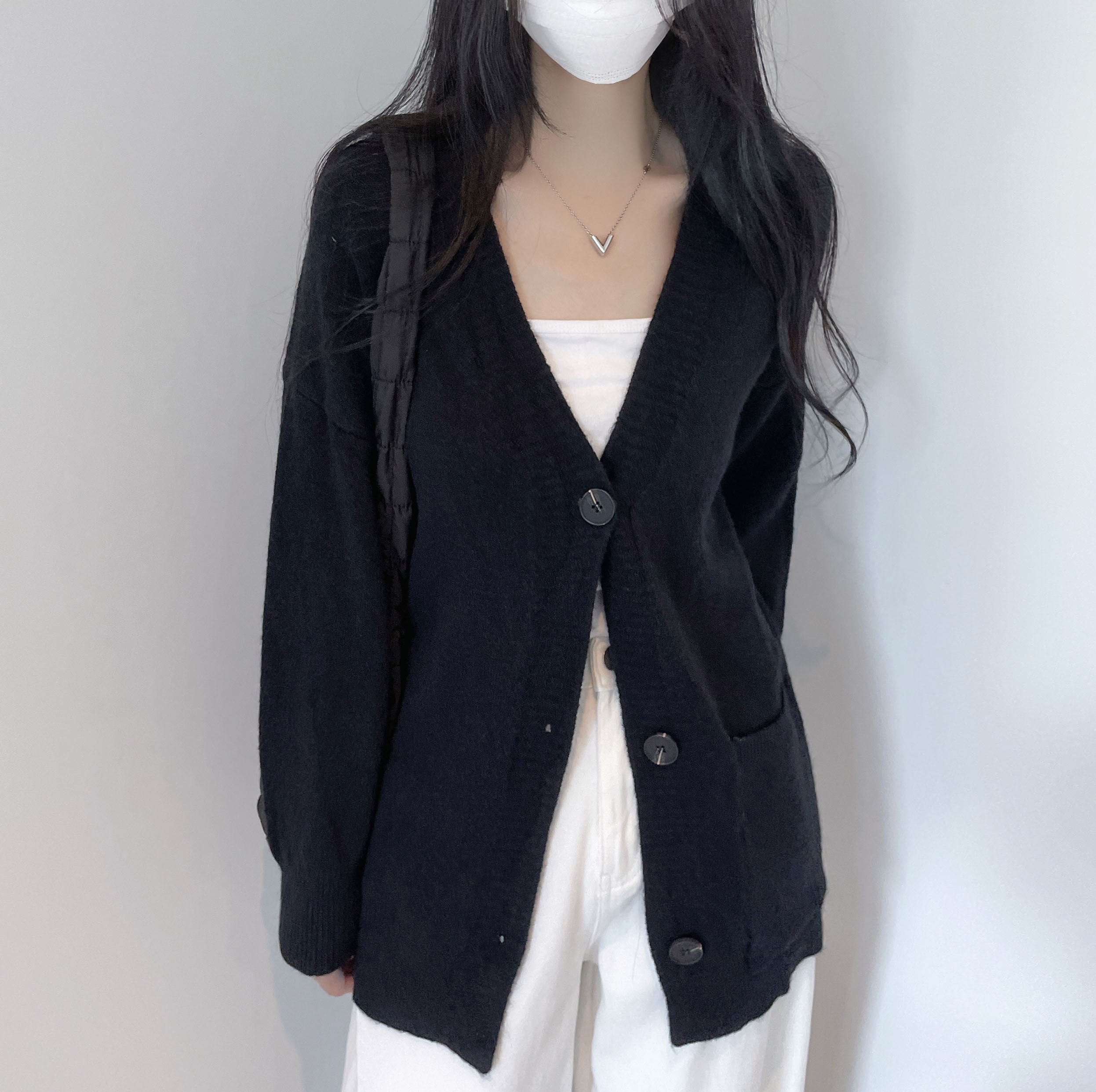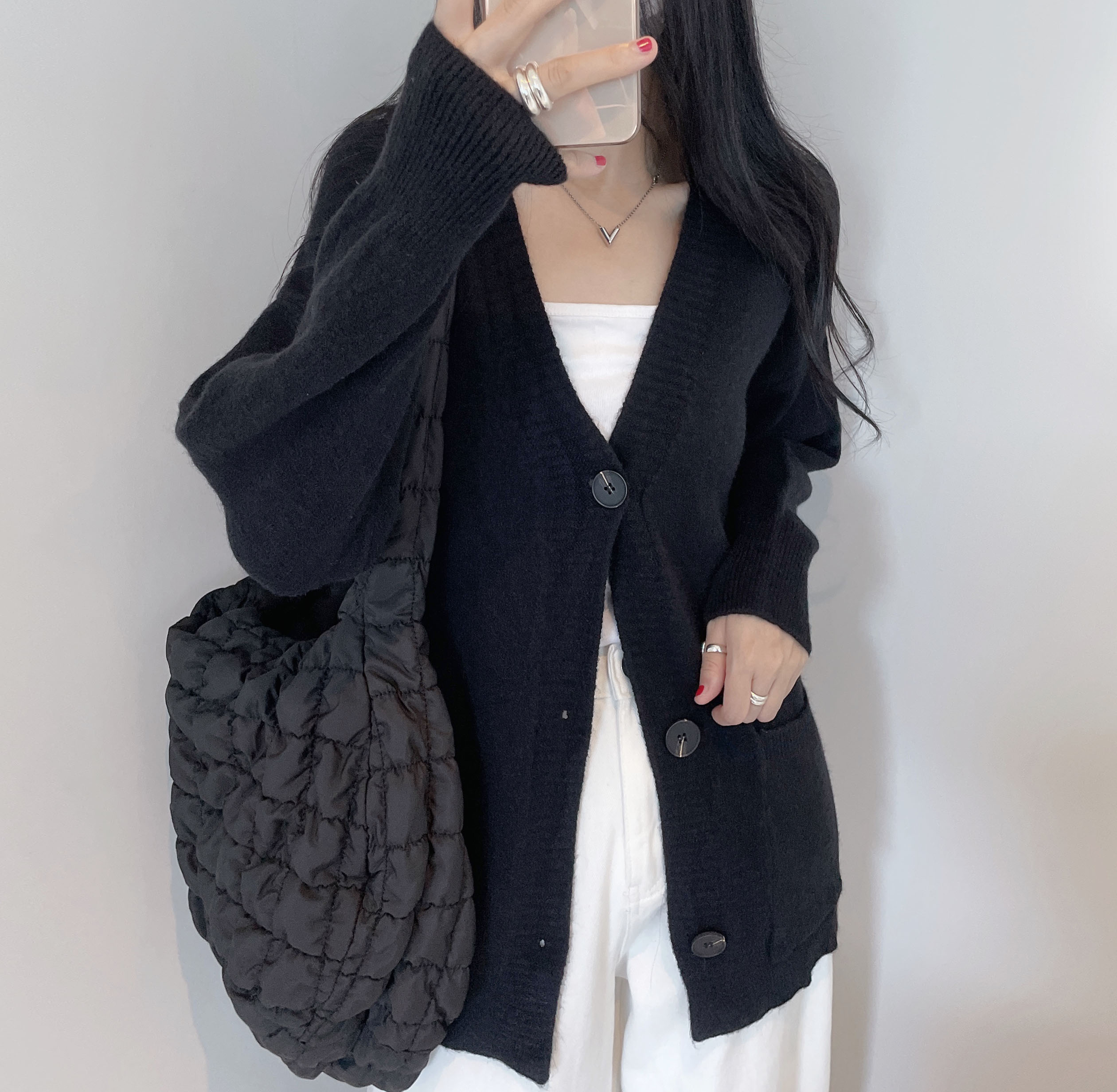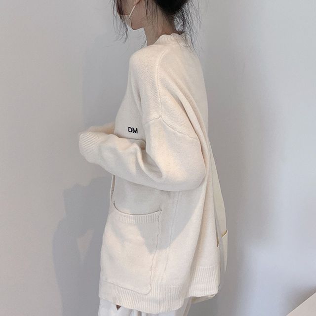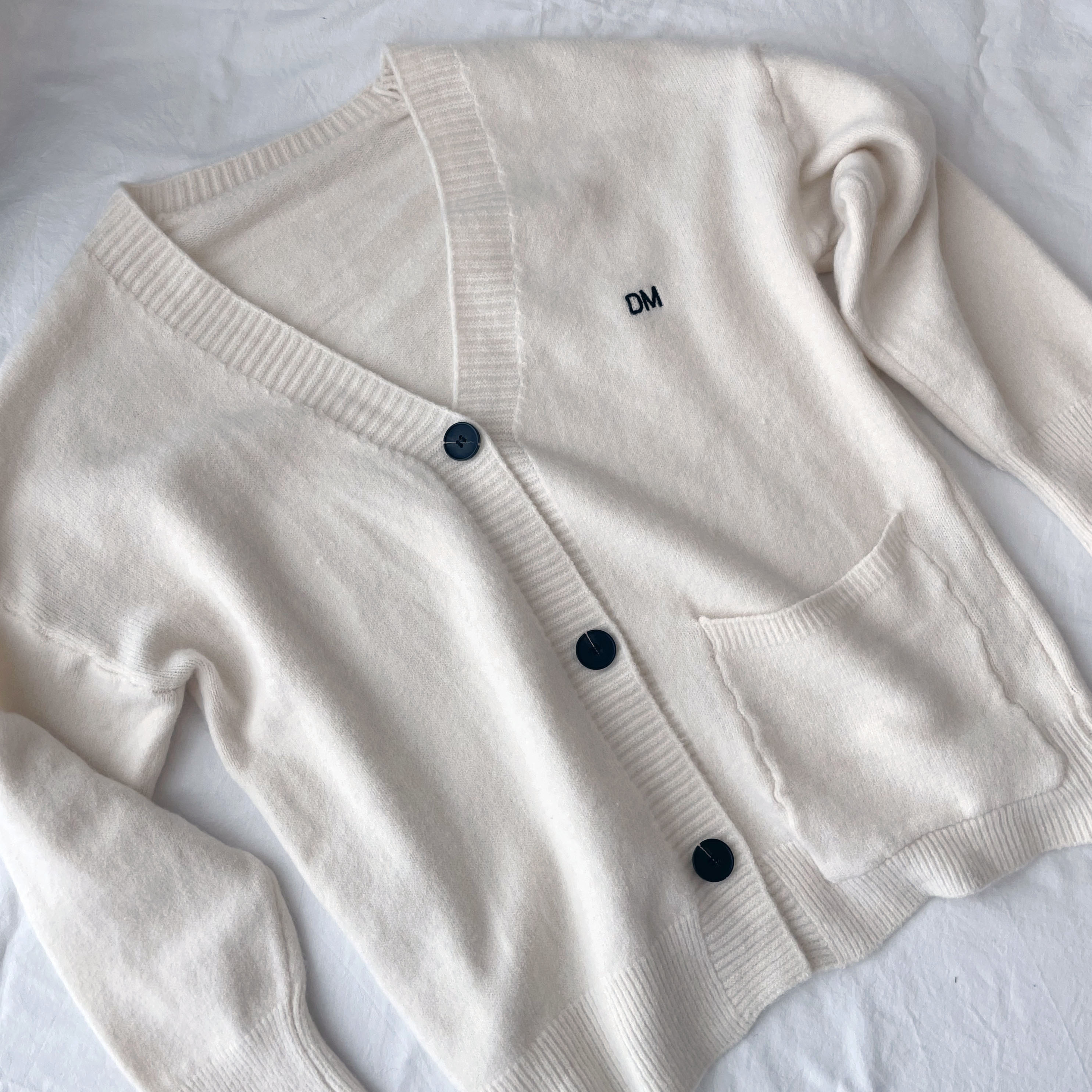 シンプルステッチロゴVネックルーズフィットカーディガン
