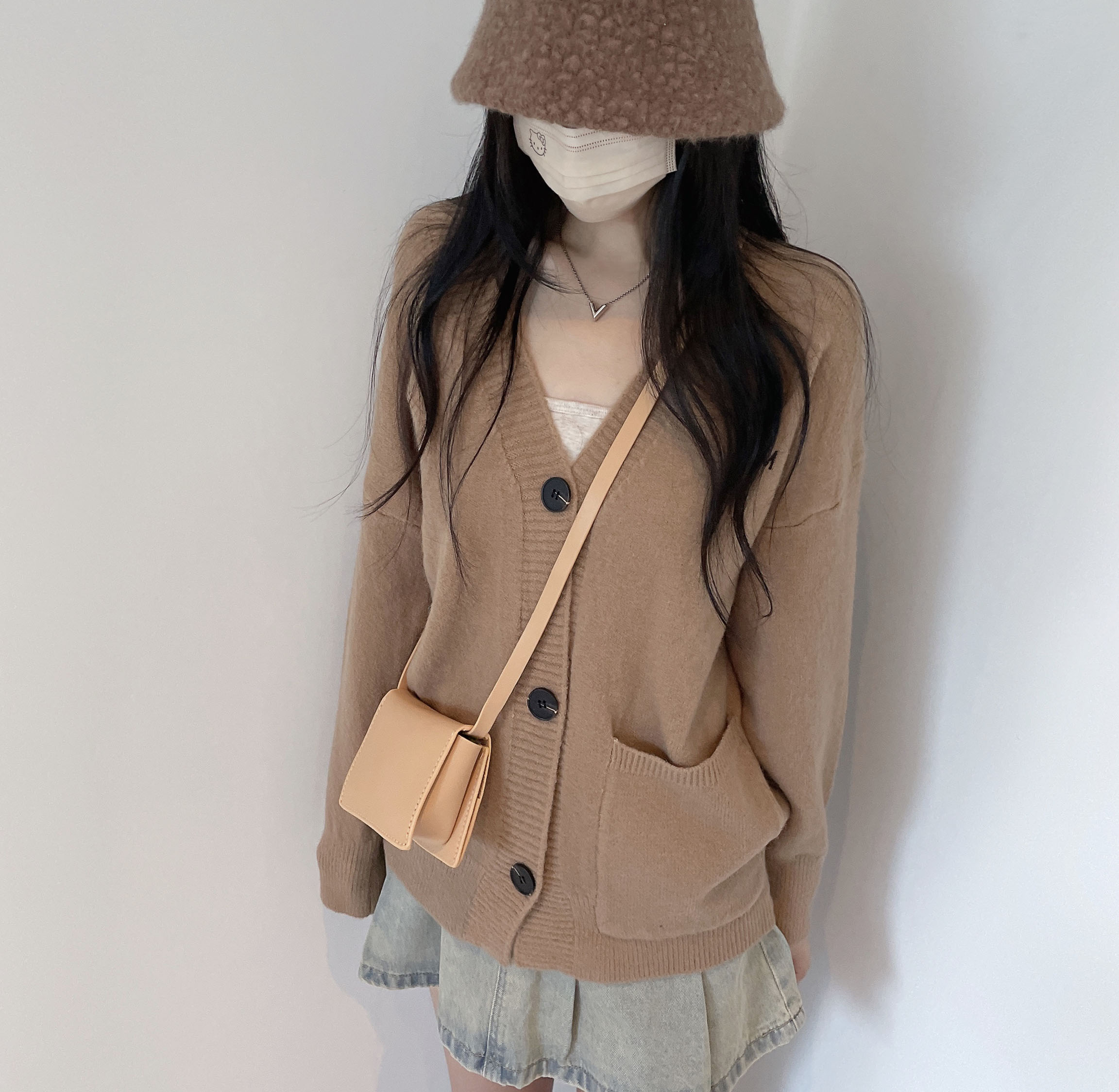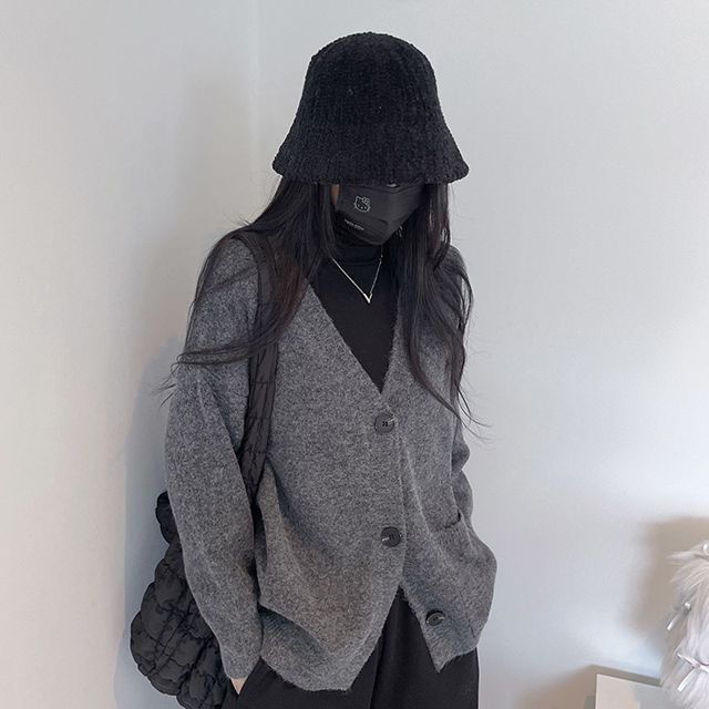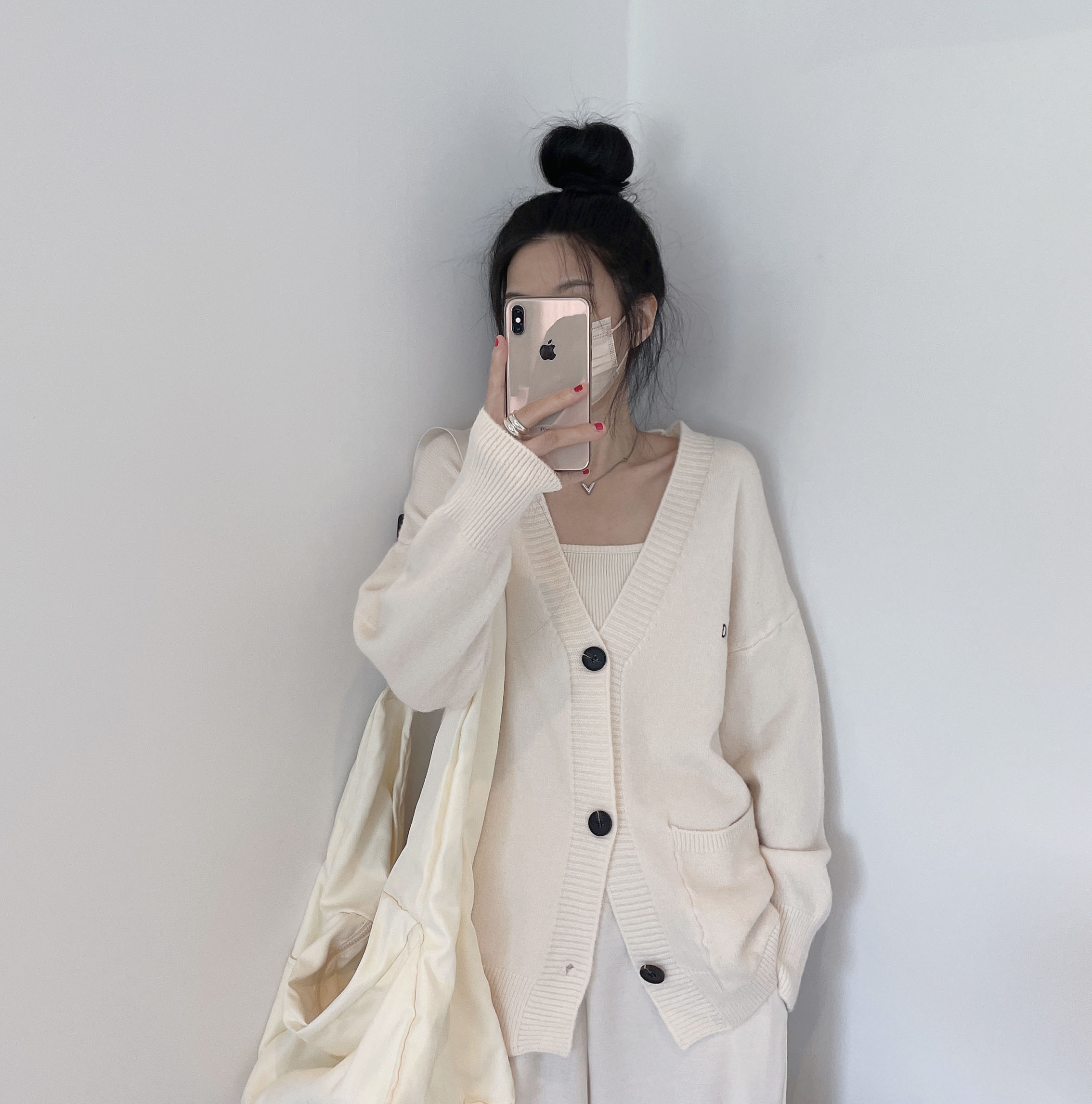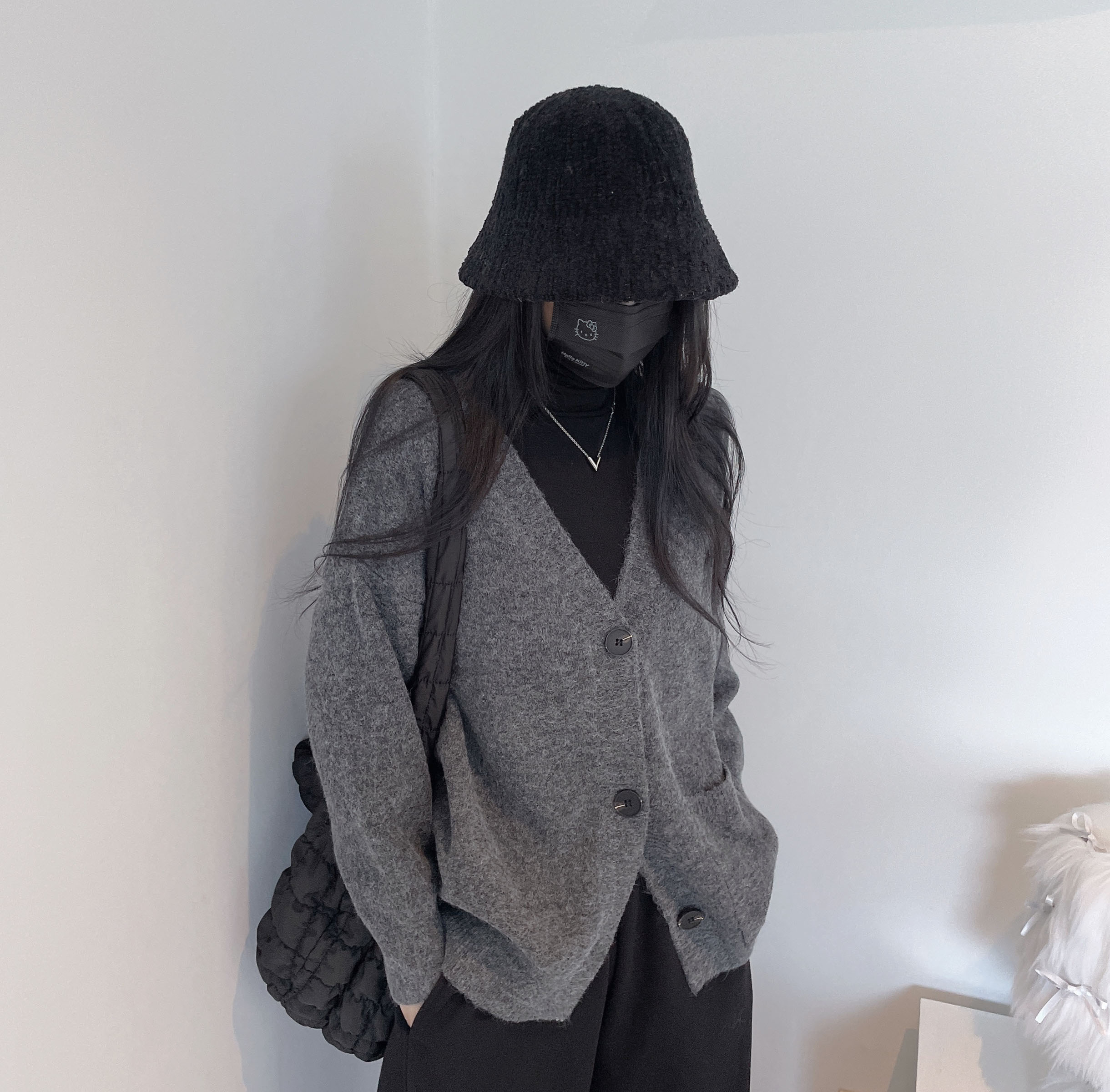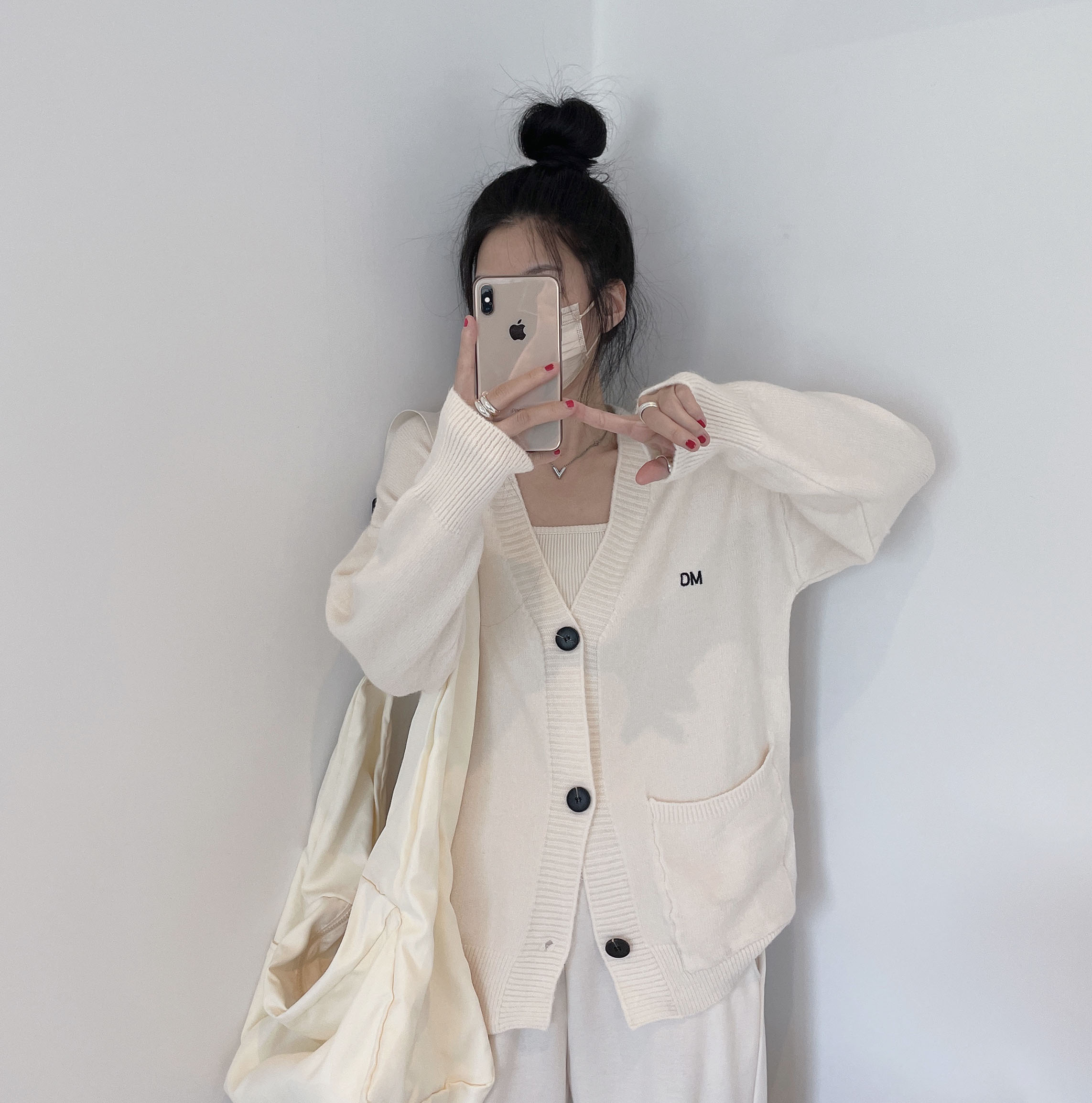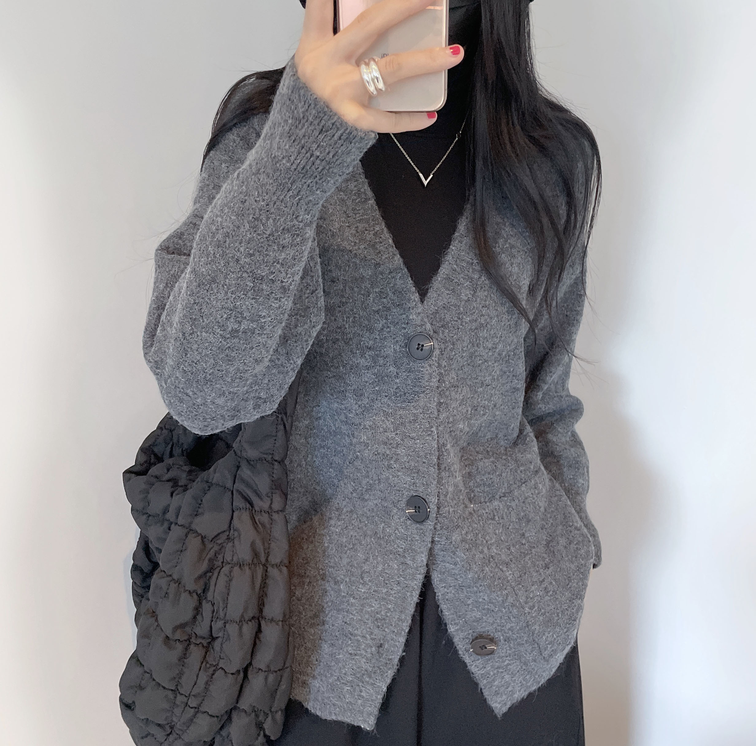 シンプルステッチロゴVネックルーズフィットカーディガン