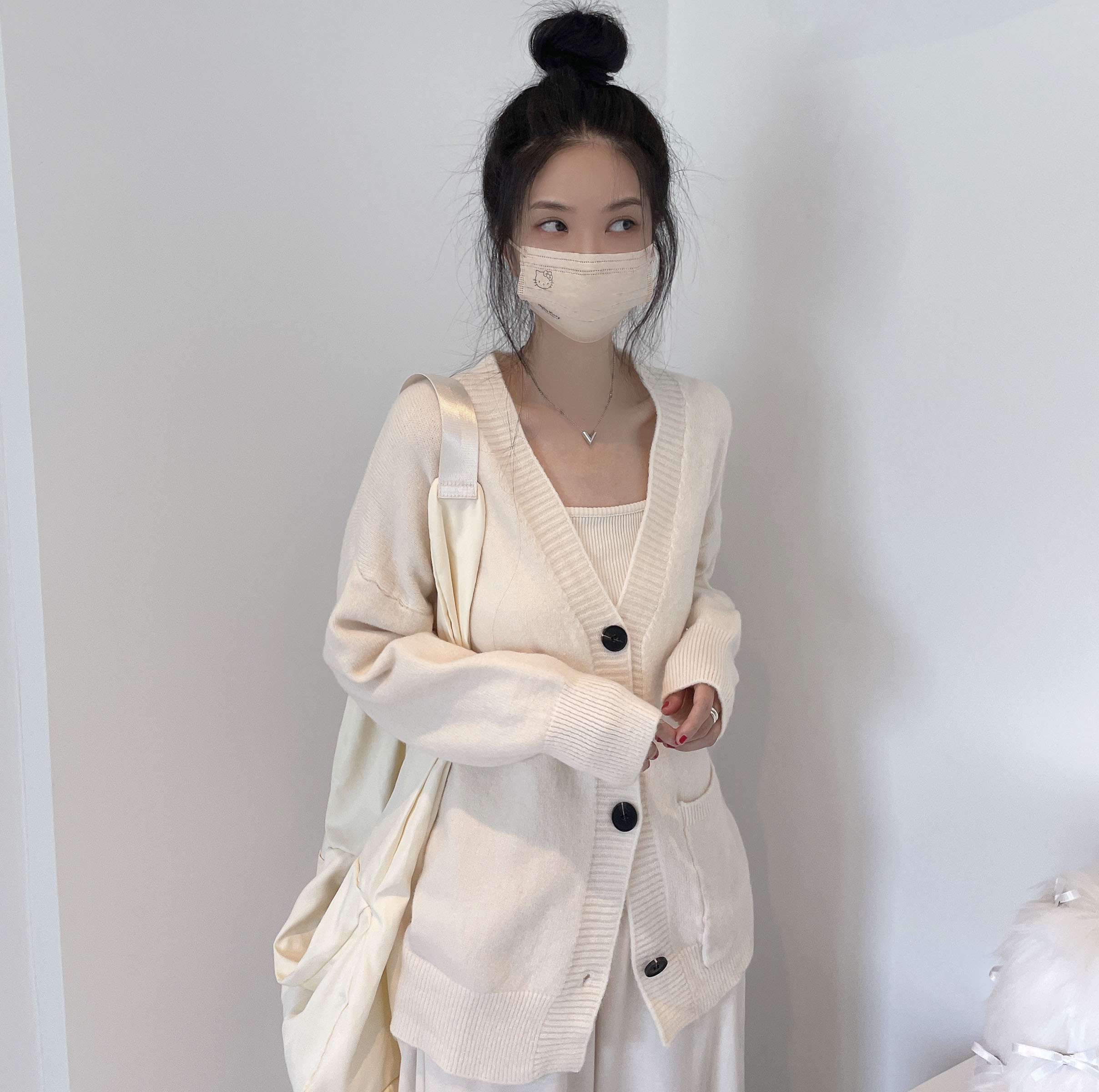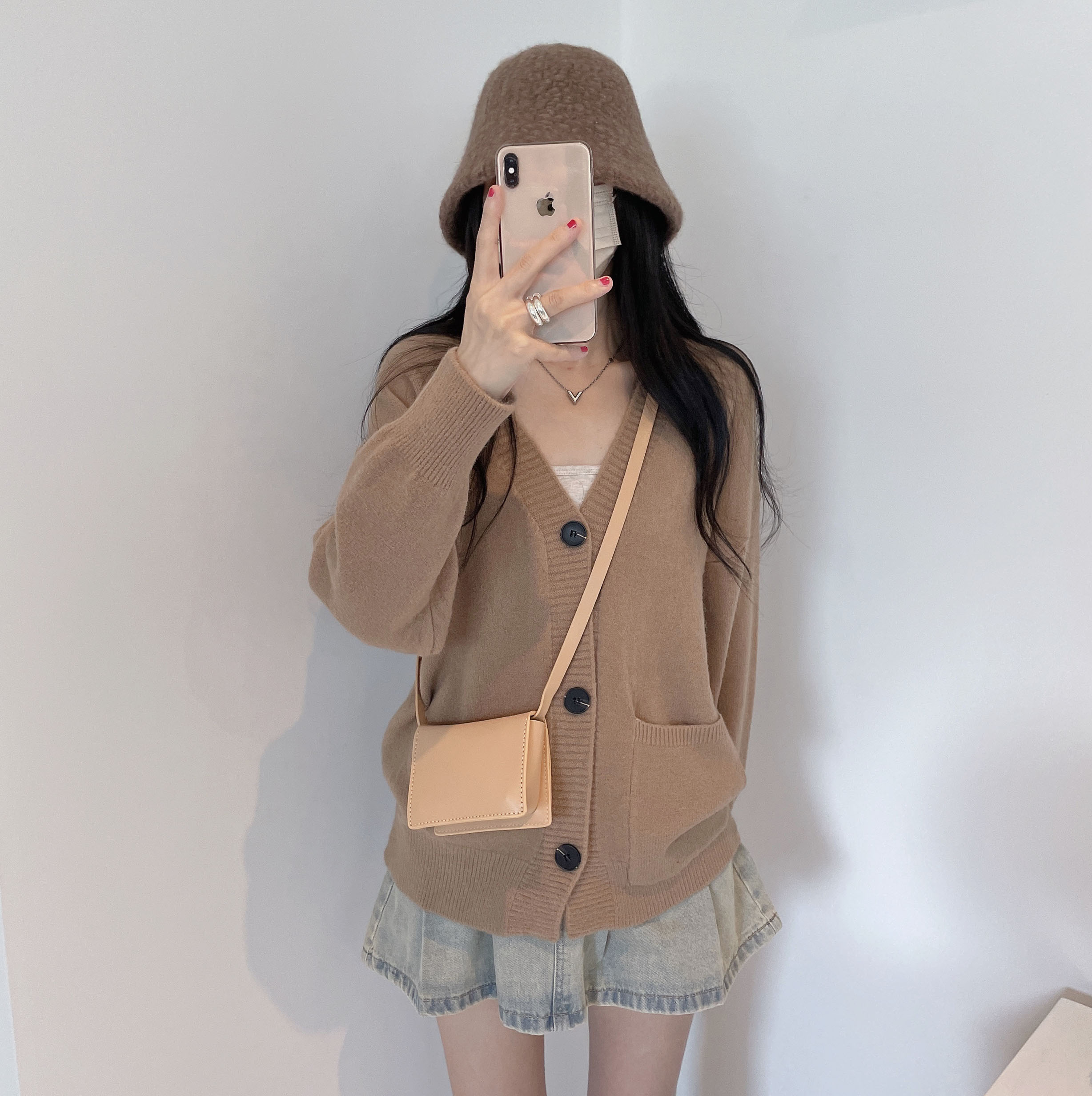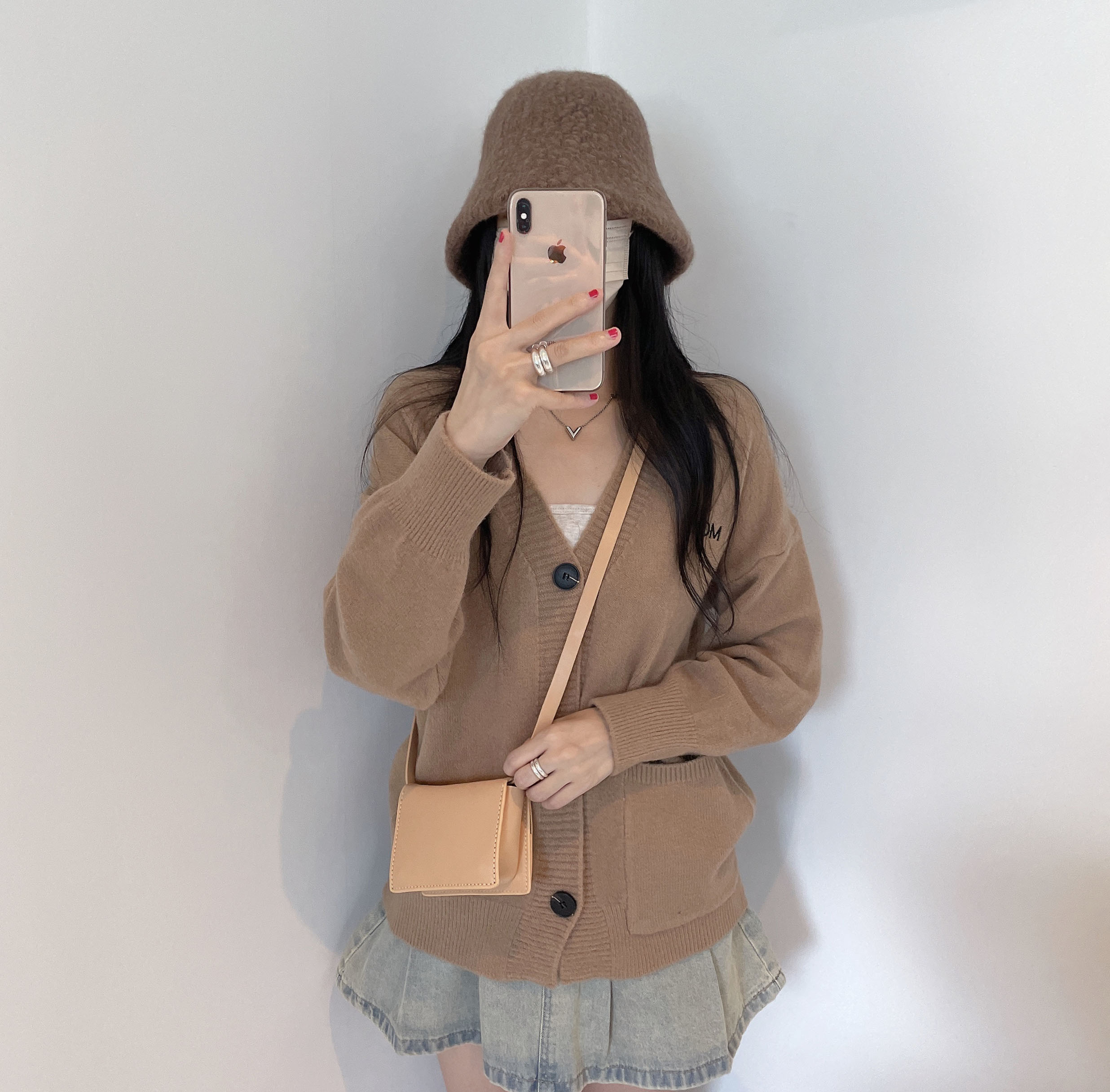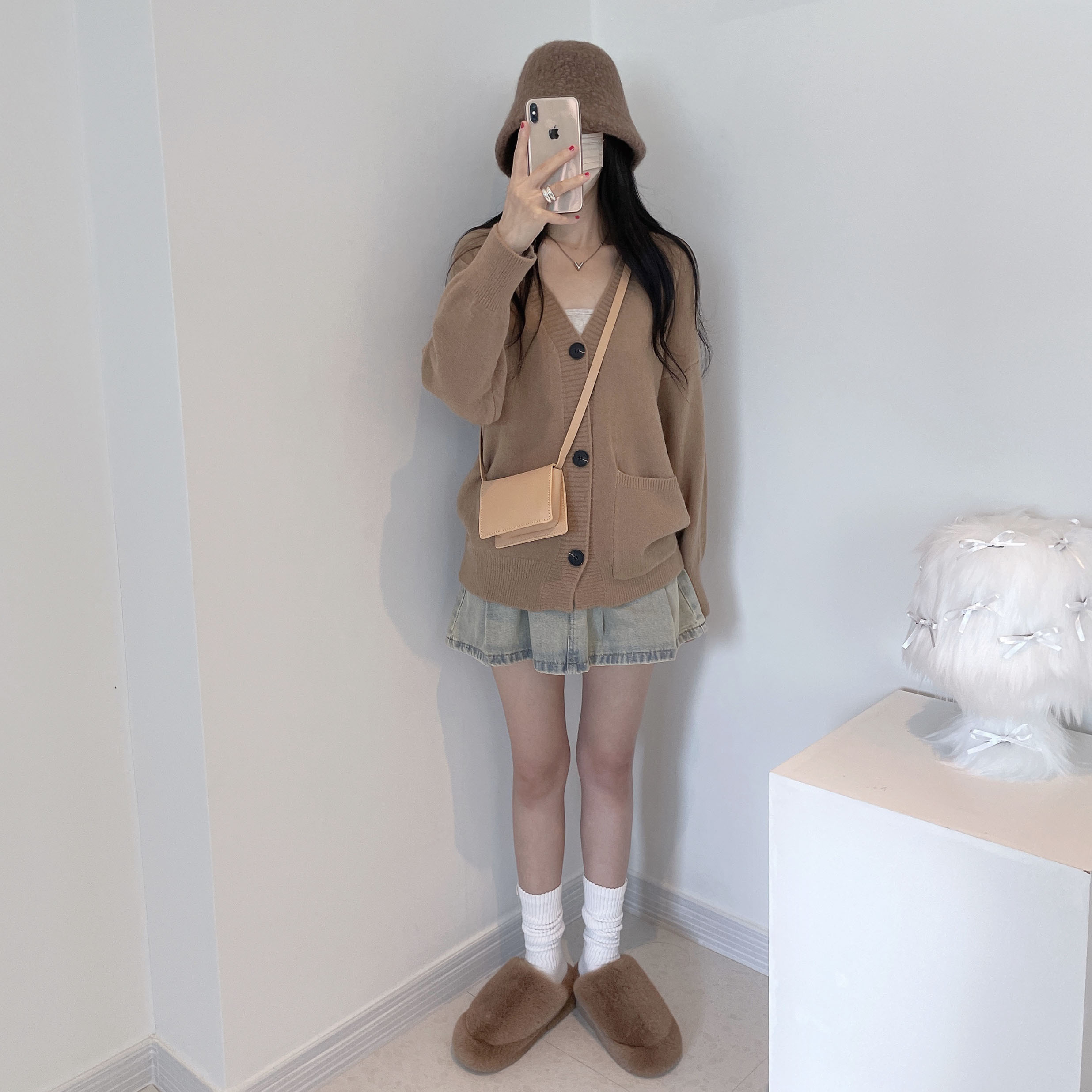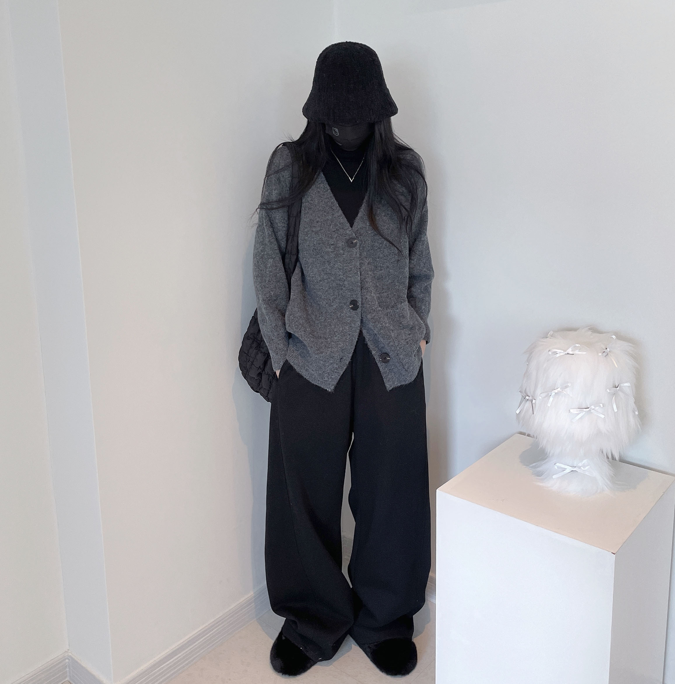 シンプルステッチロゴVネックルーズフィットカーディガン