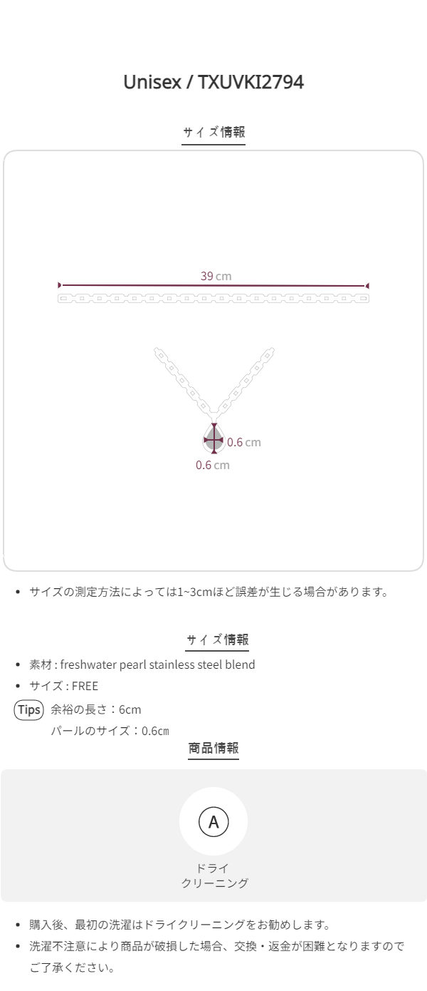 [ユニセックス] パールチェーンネックレス