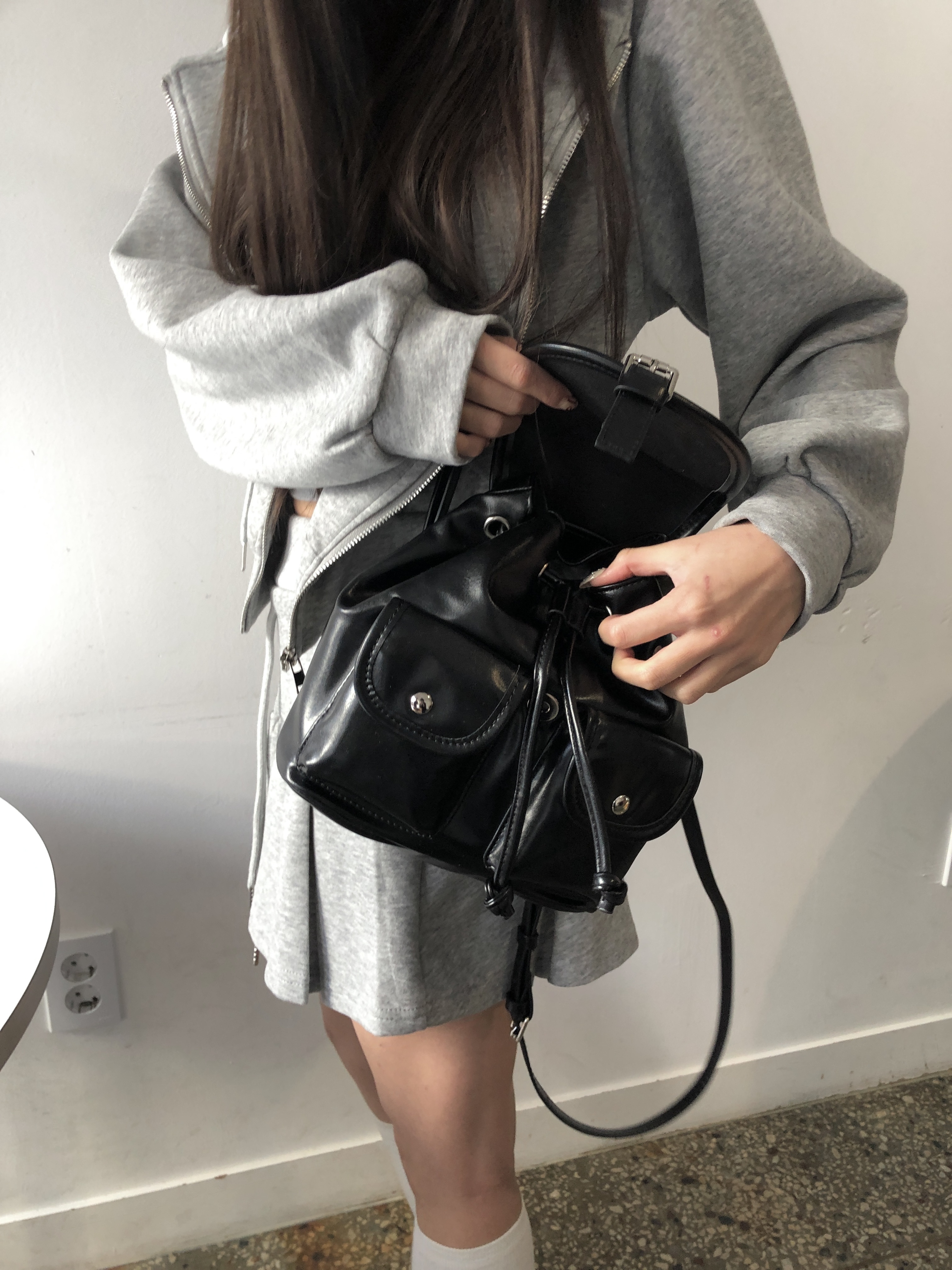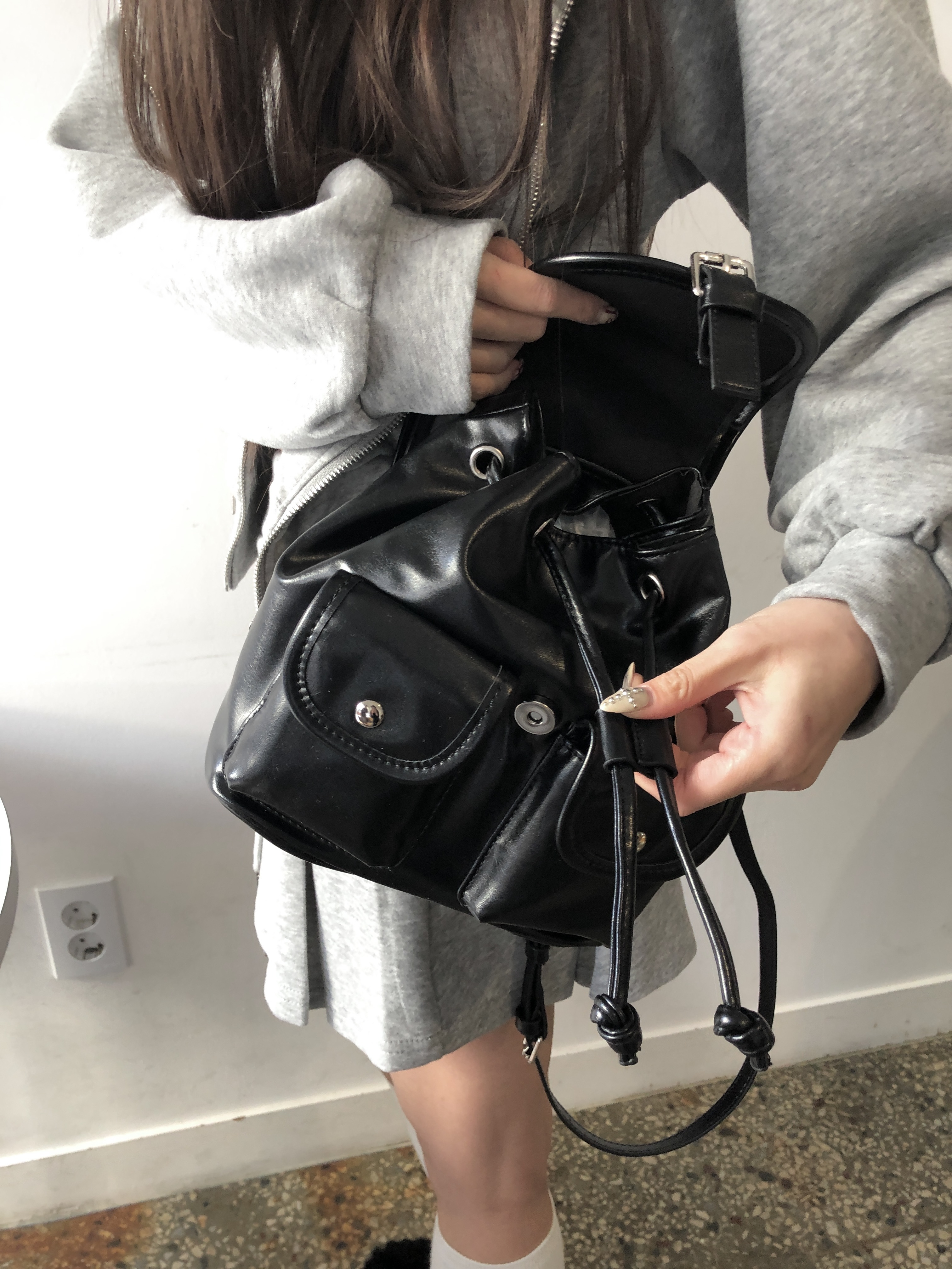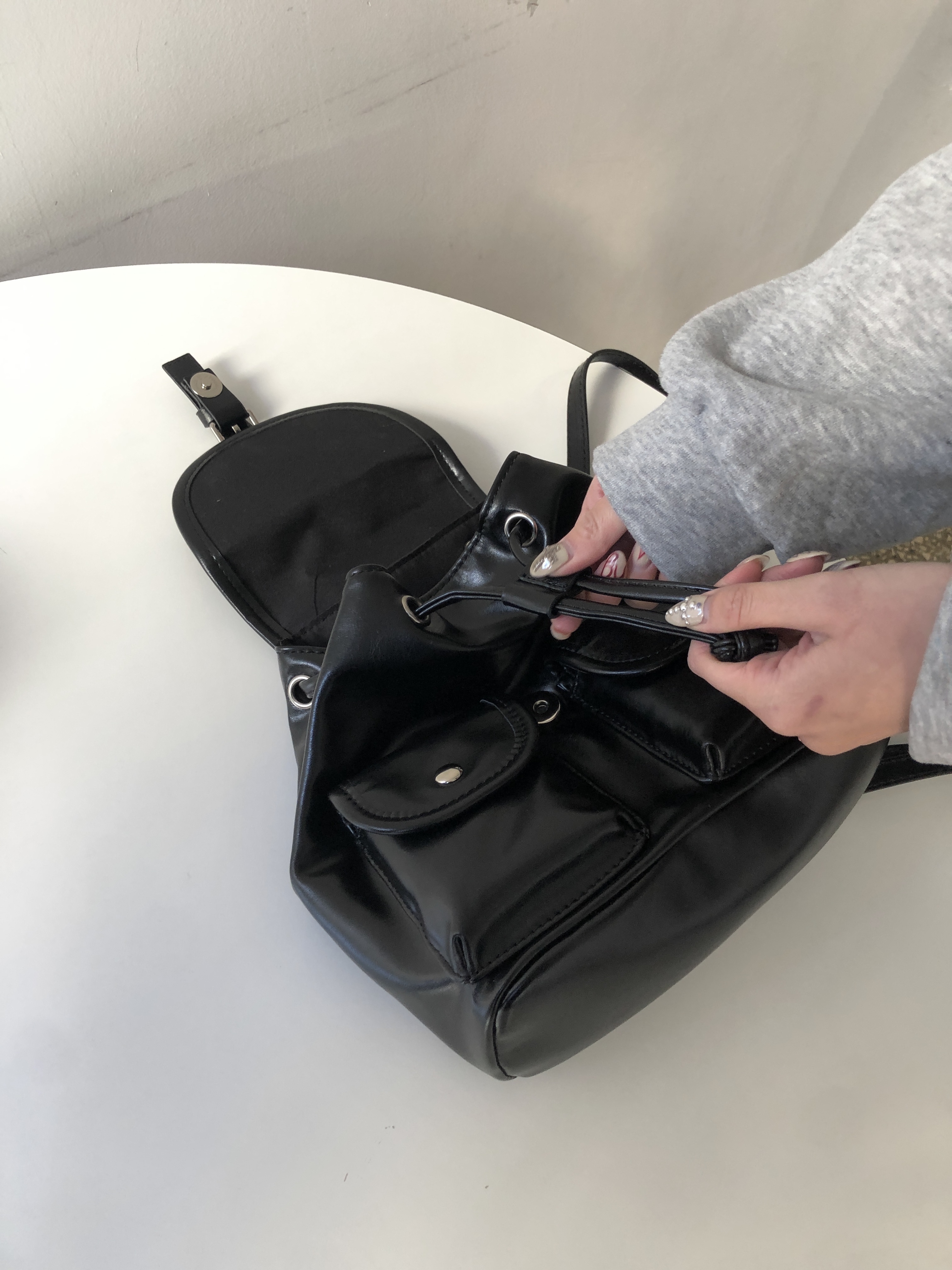 3. 【バックル巾着型フェイクレザーミニリュック】