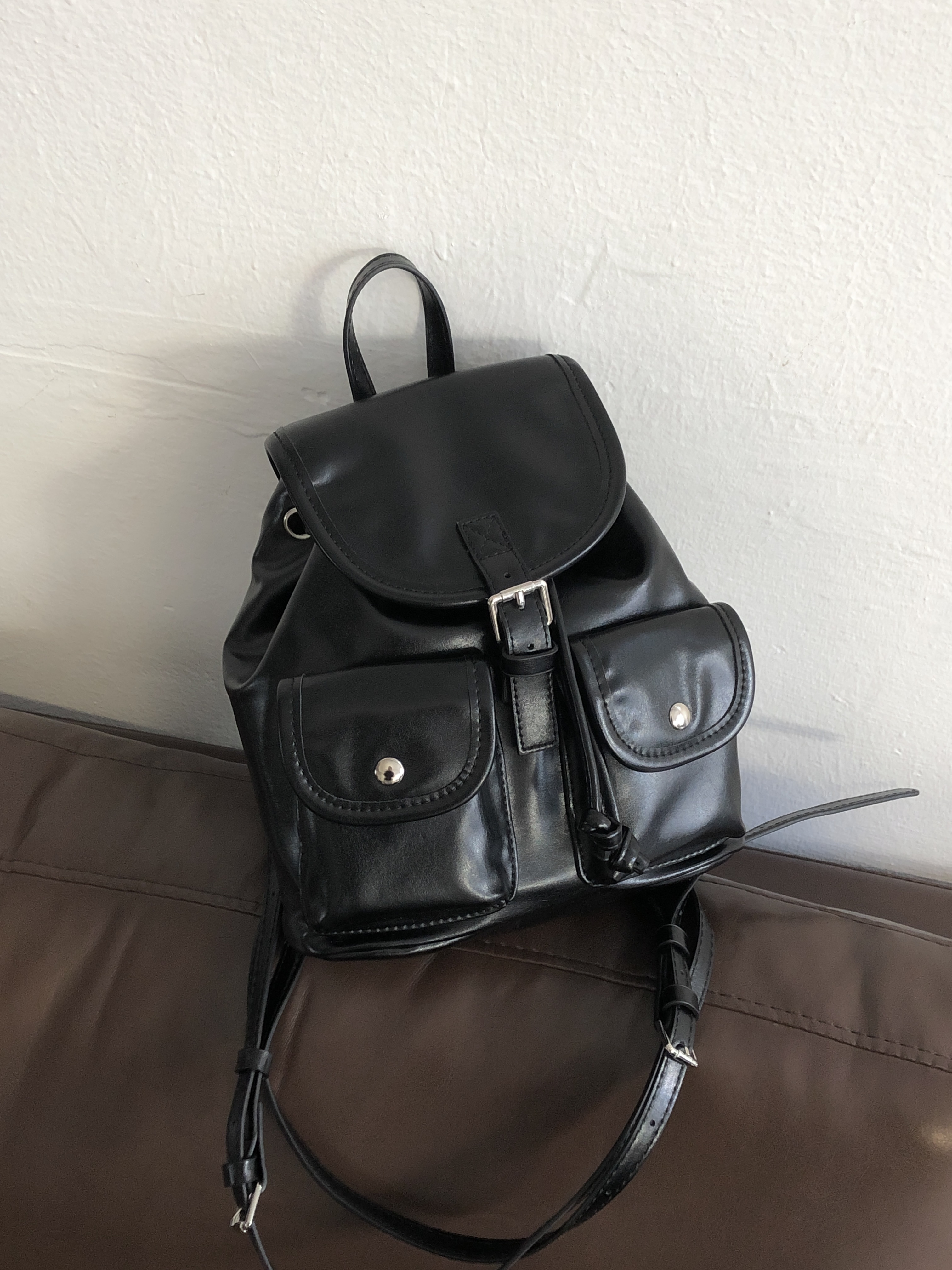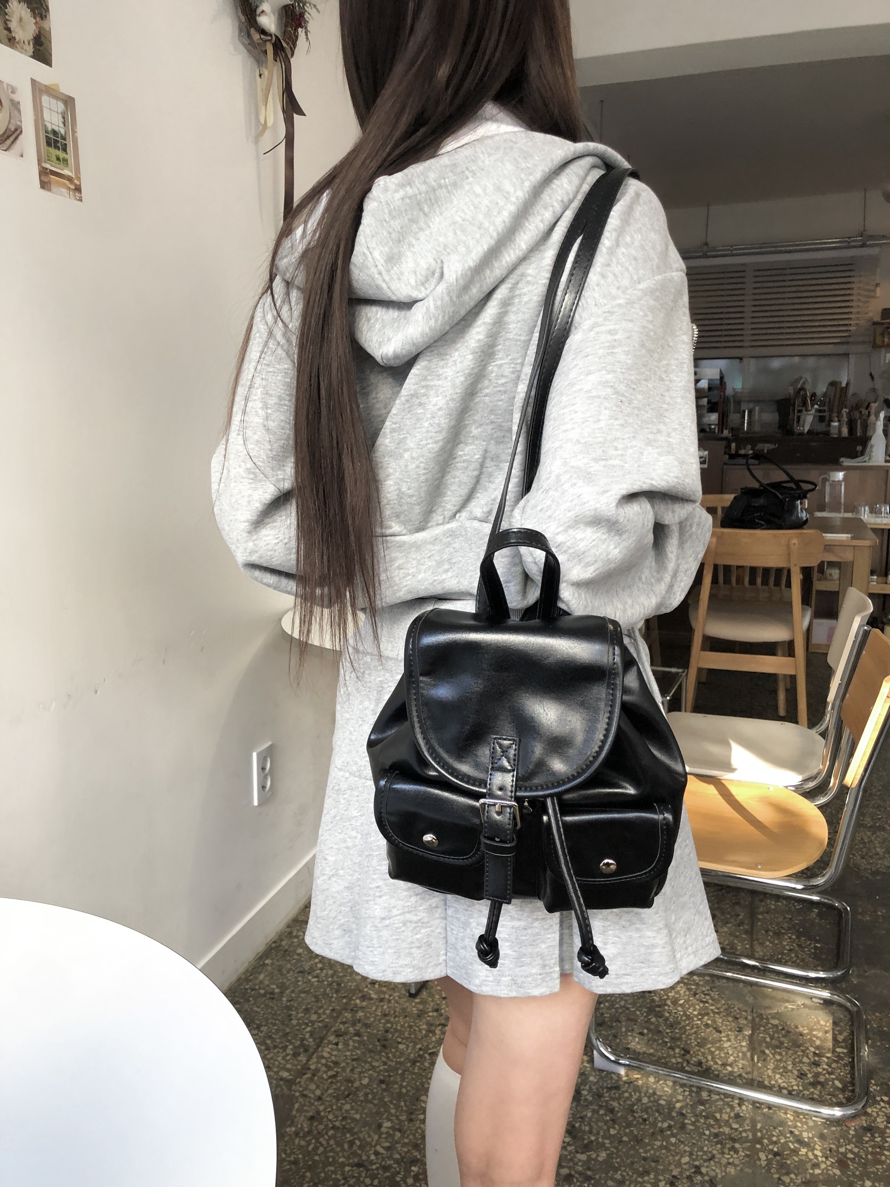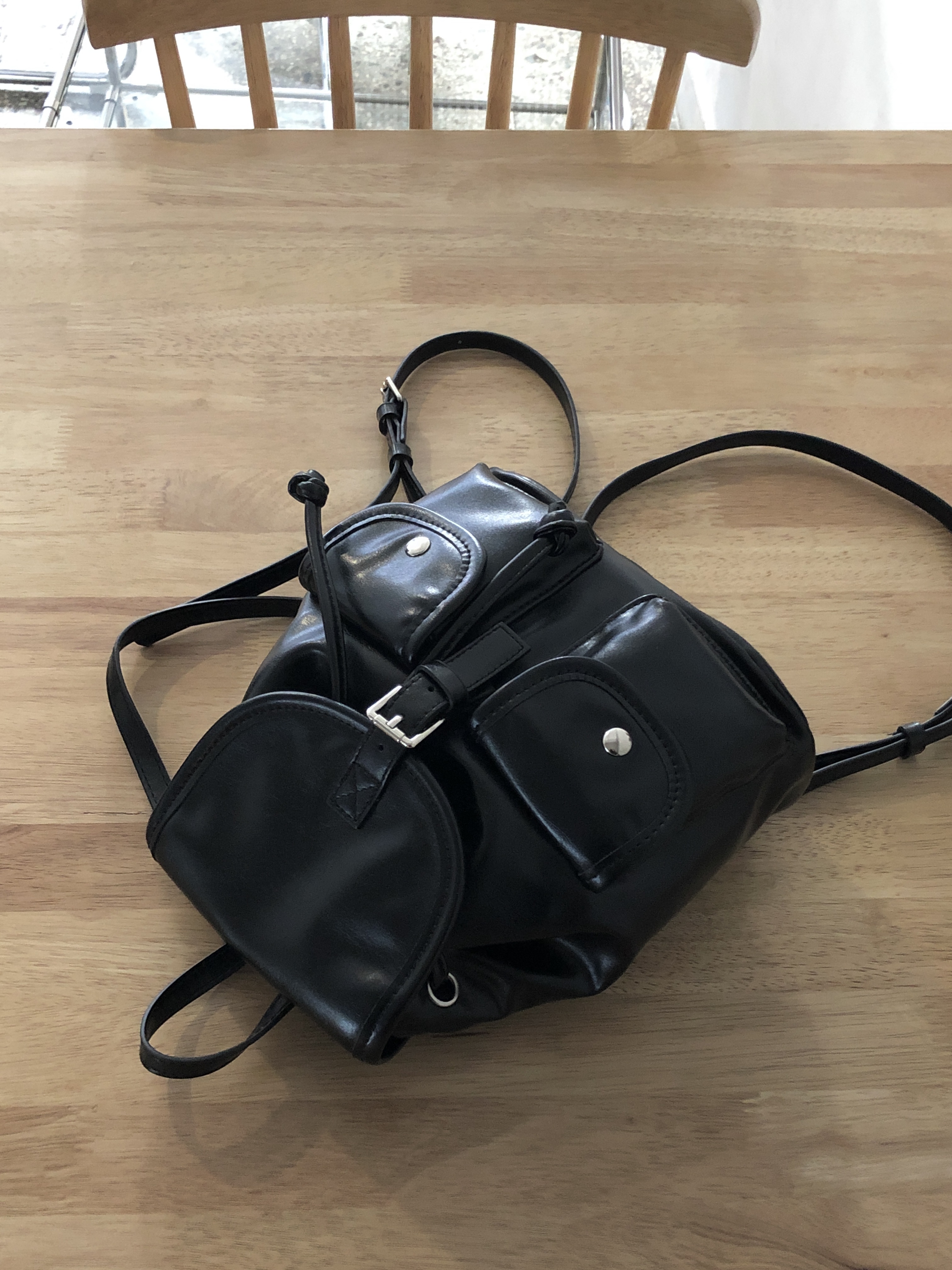 バックルフェイクレザーミニリュック