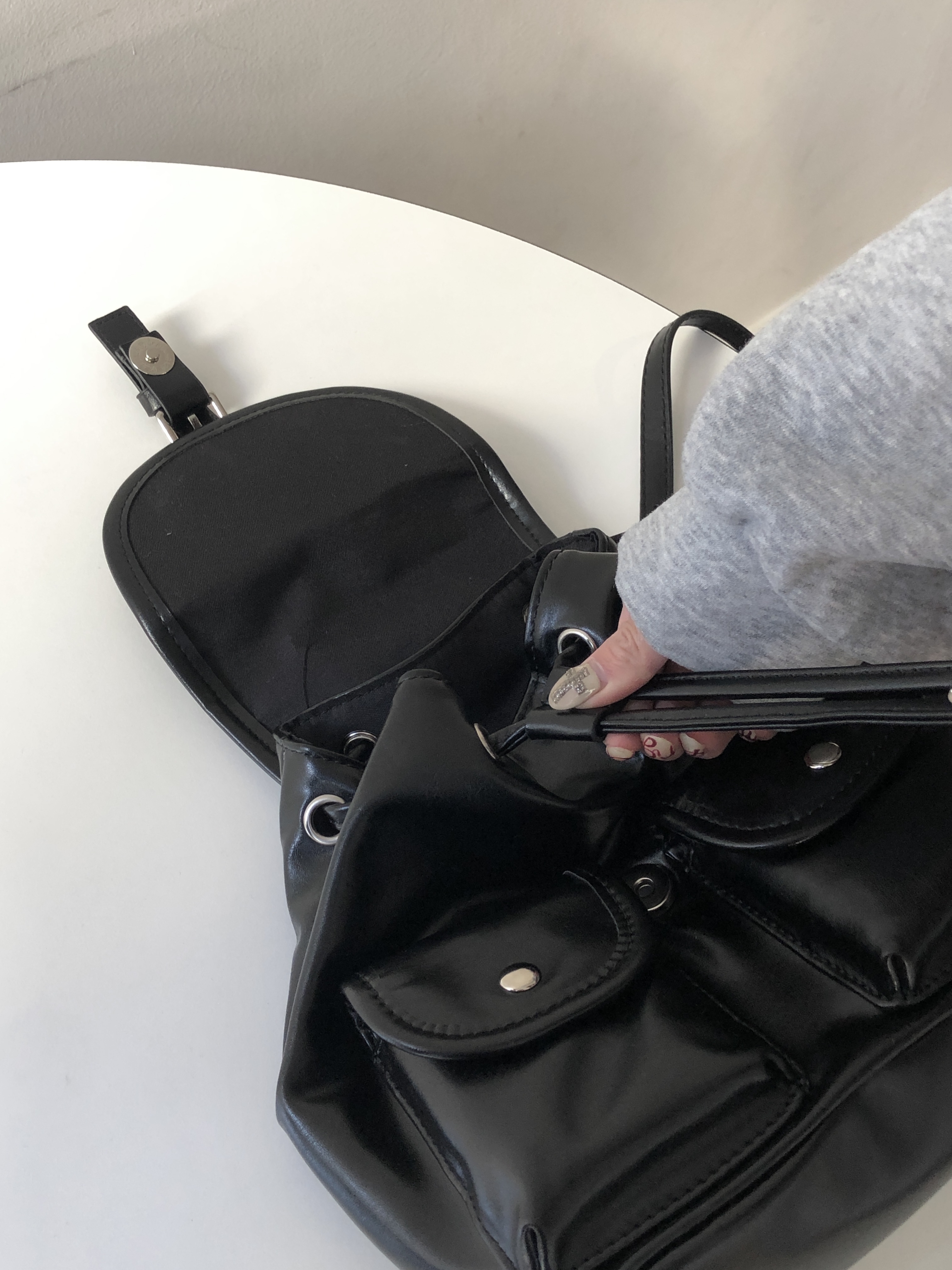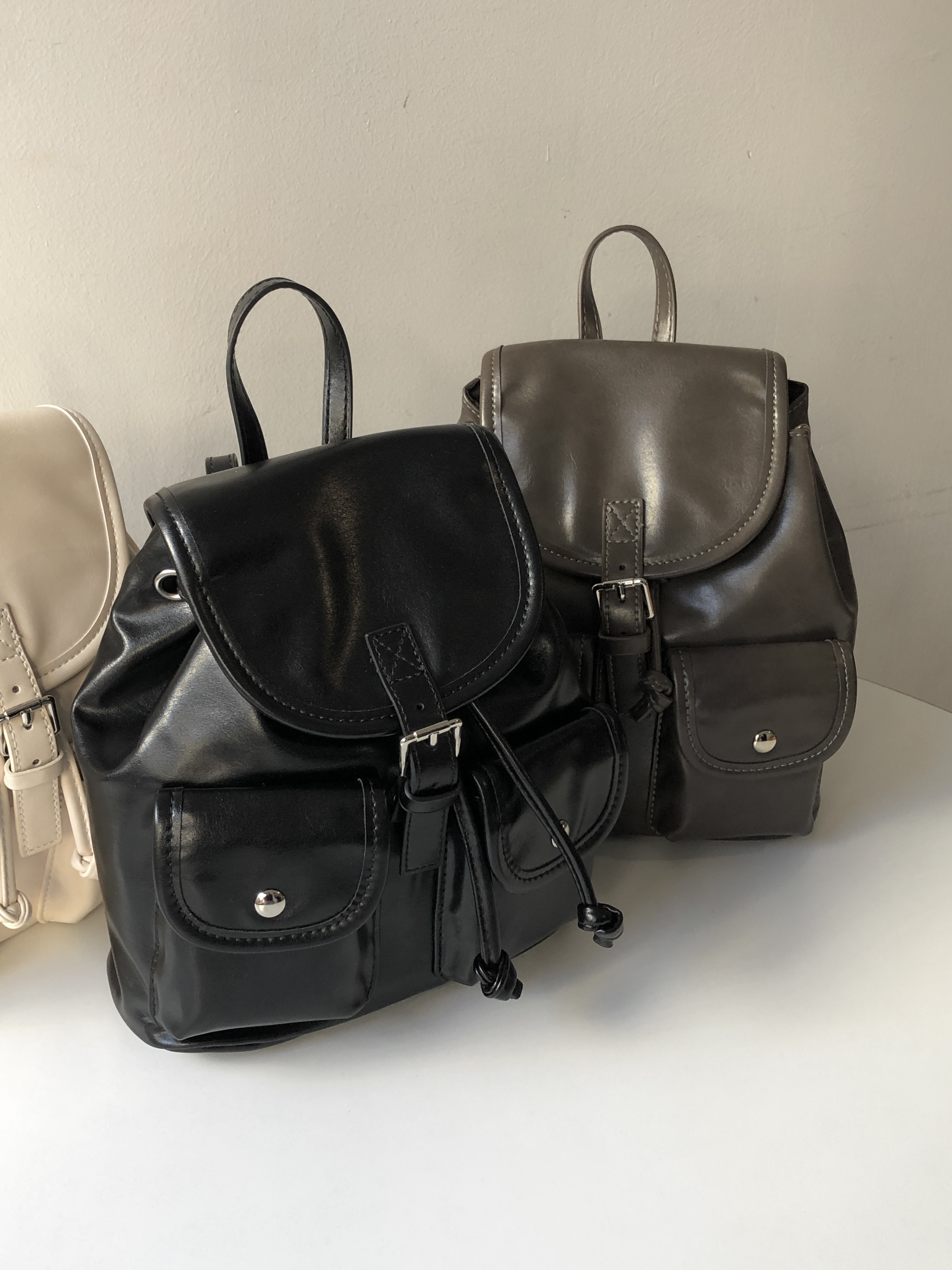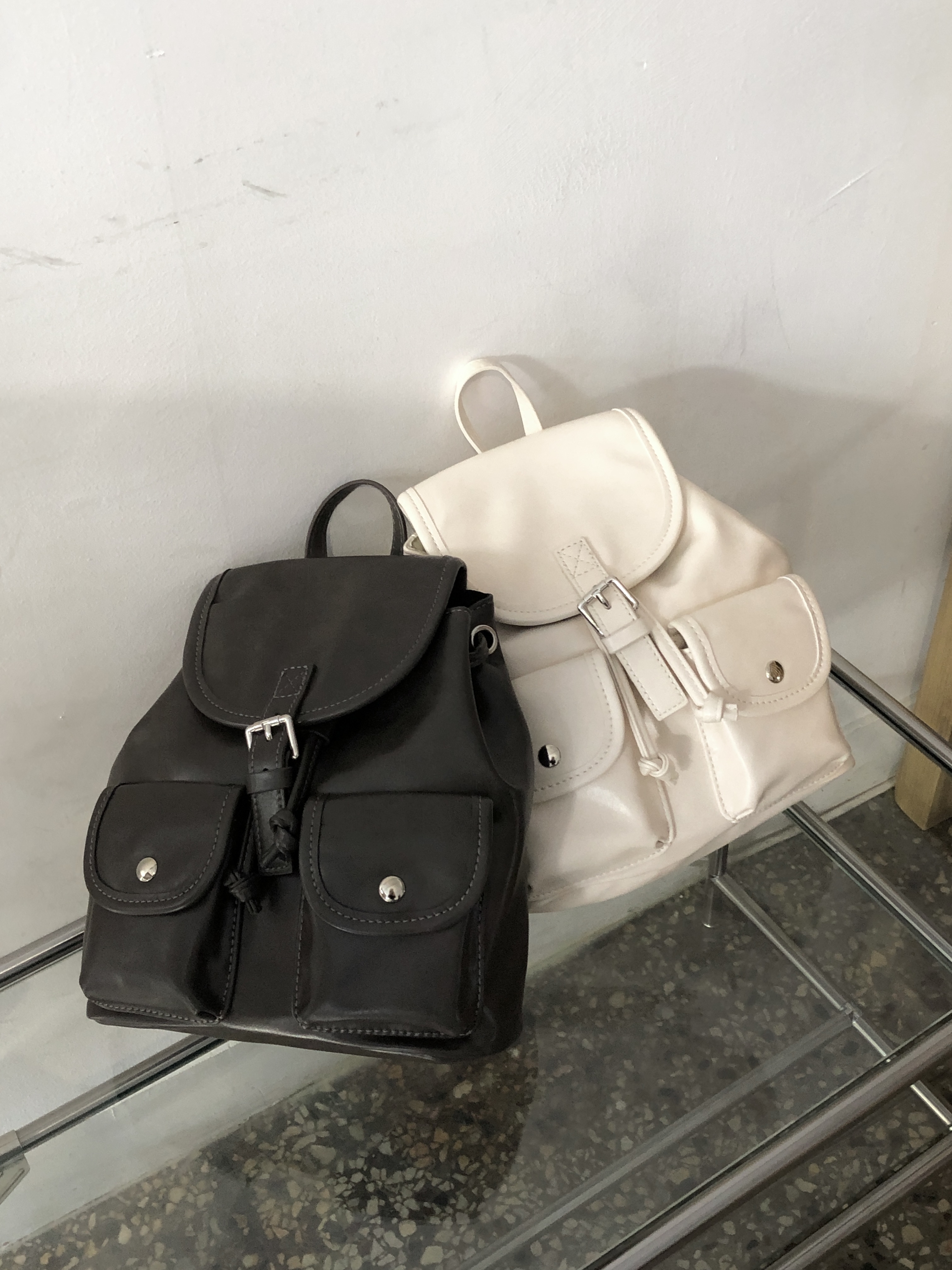 バックルフェイクレザーミニリュック