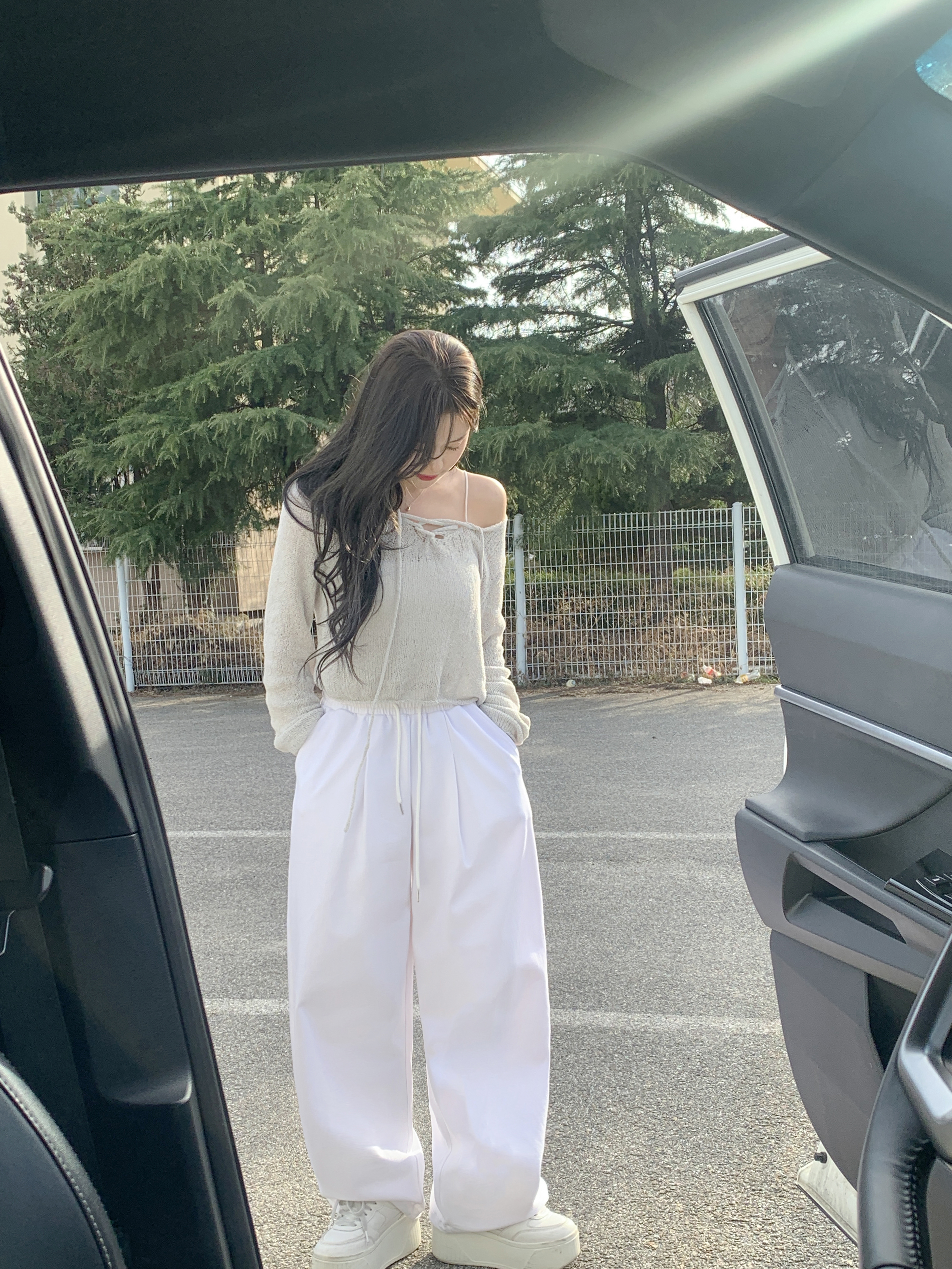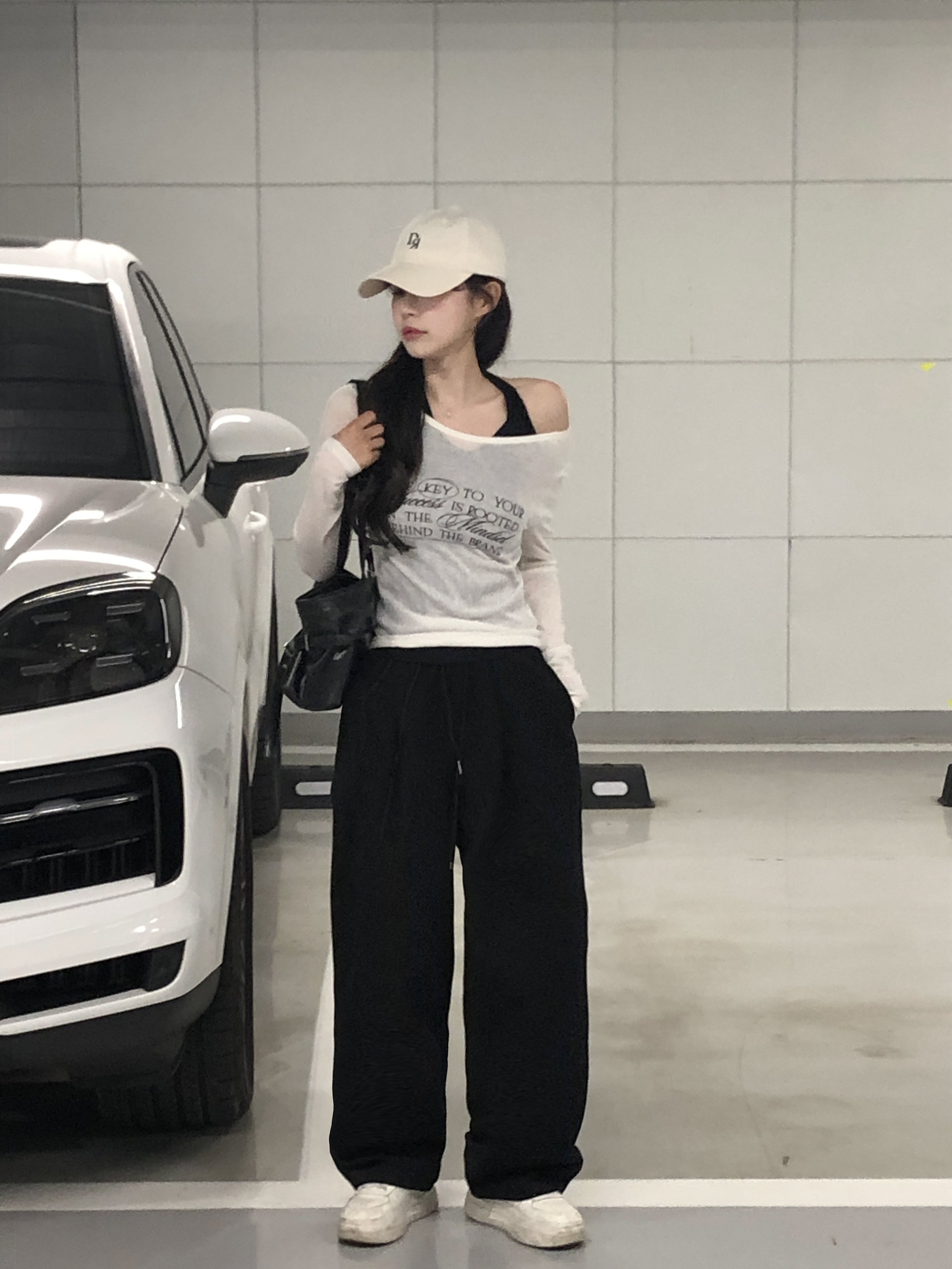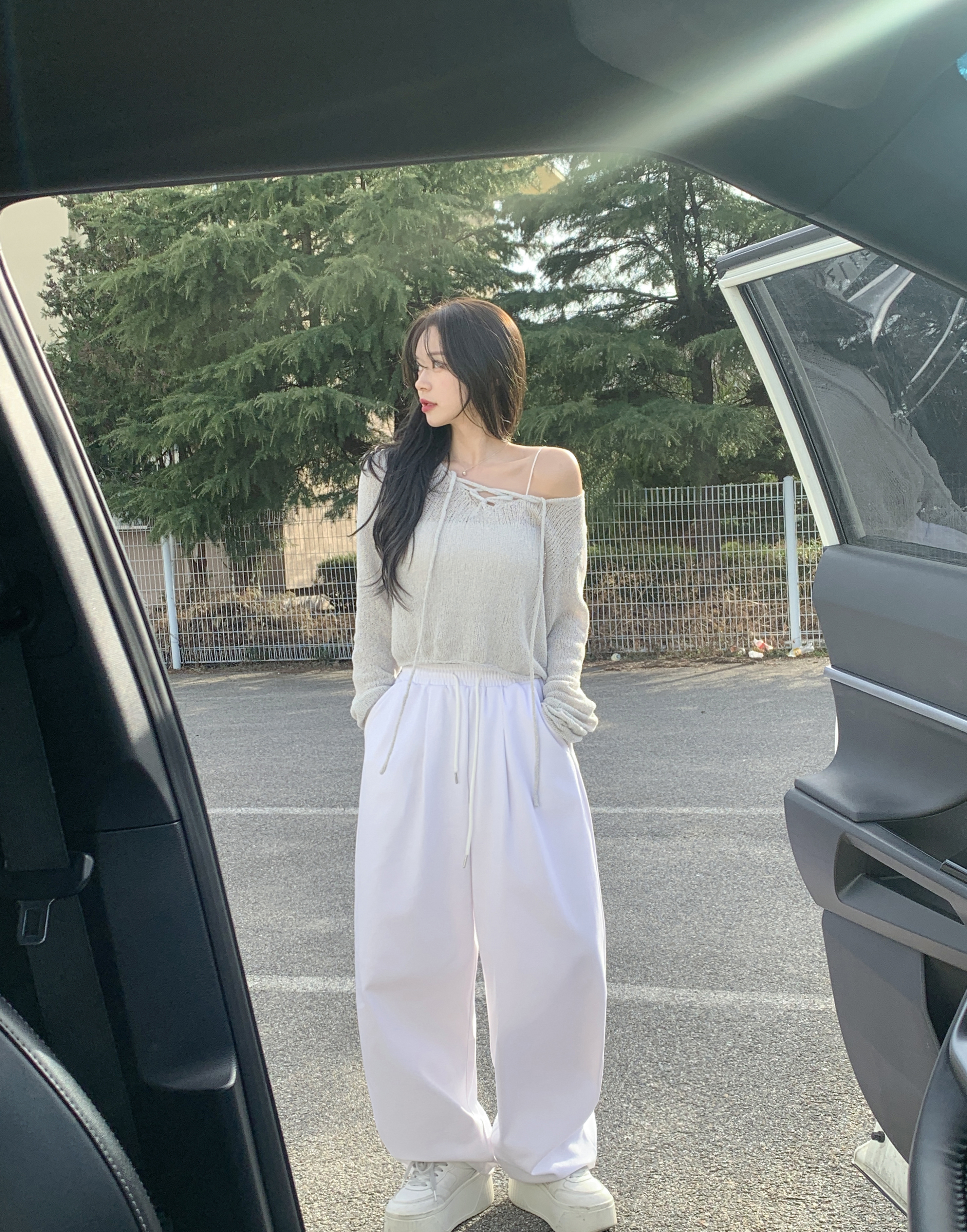 노바 오프숄더 크롭 맨투맨 (백메란지)