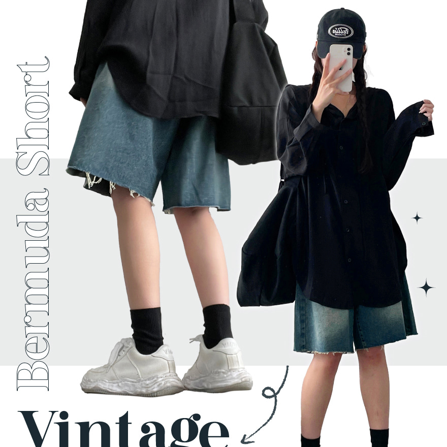 ラティビンテージカットウォッシングバミューダデニムショートパンツ(2color)
