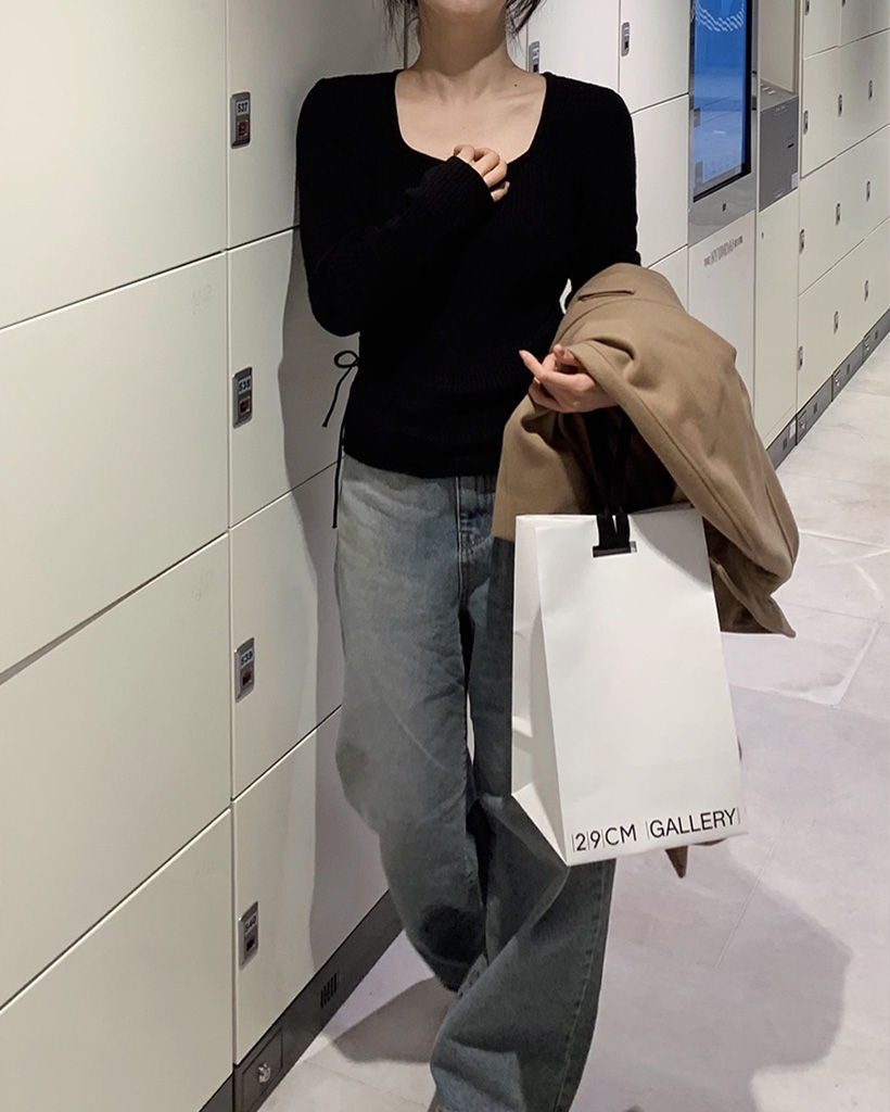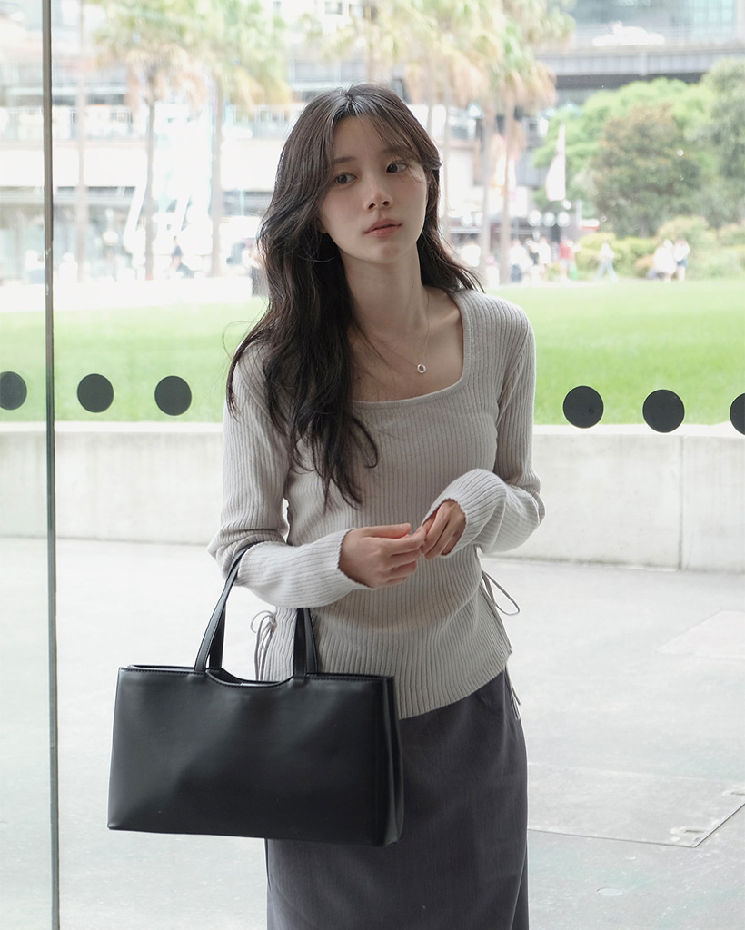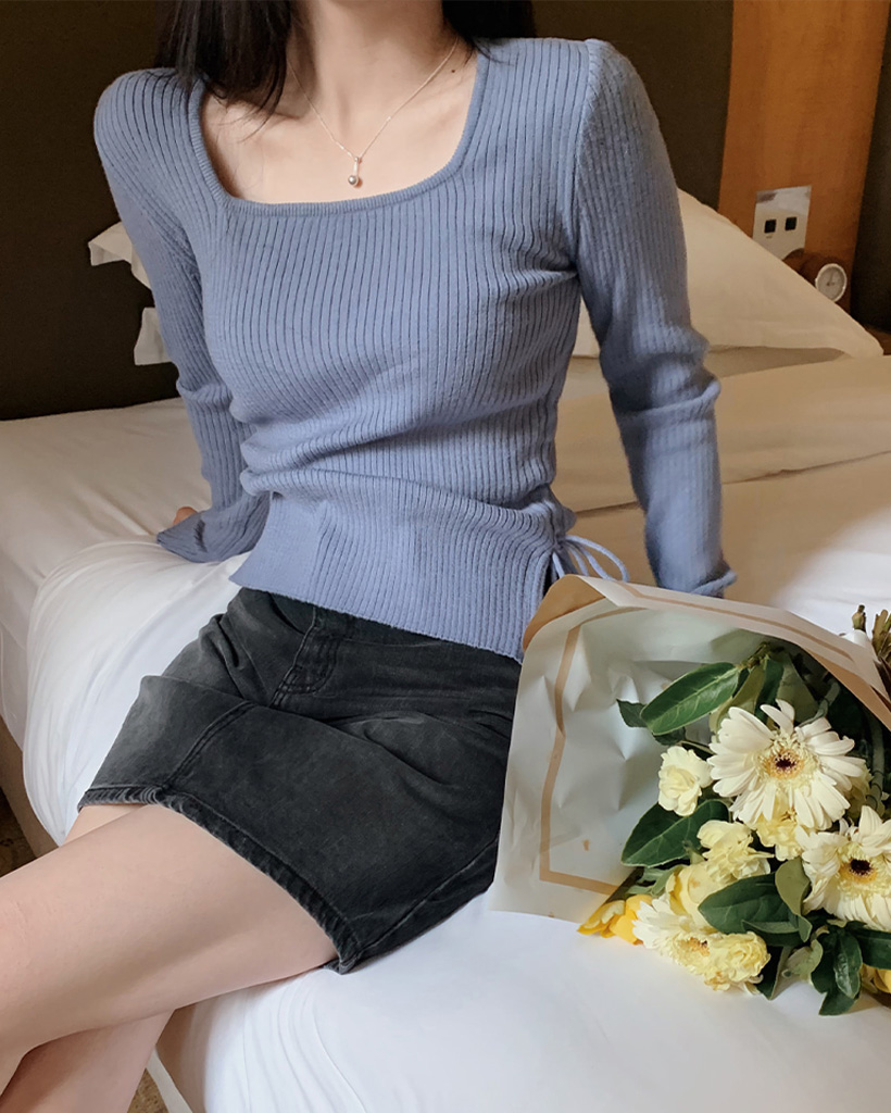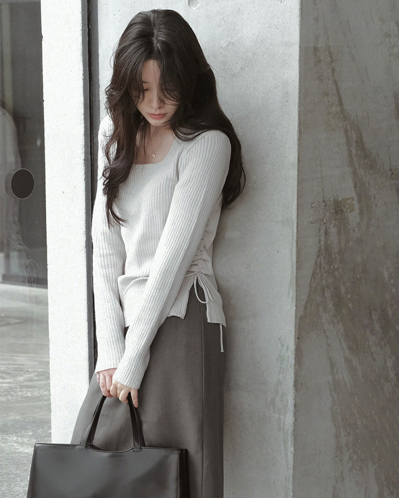 #SLOWMADE. サイドリボンスリムスクエアニット-4color