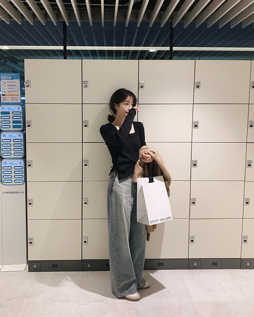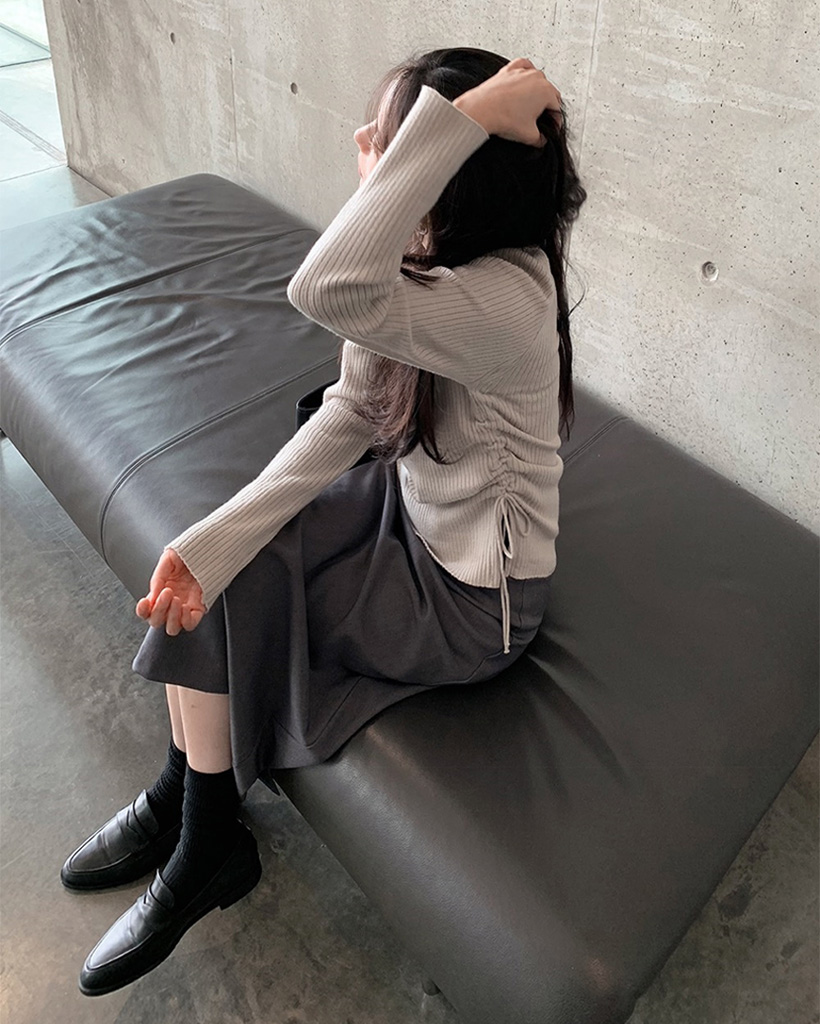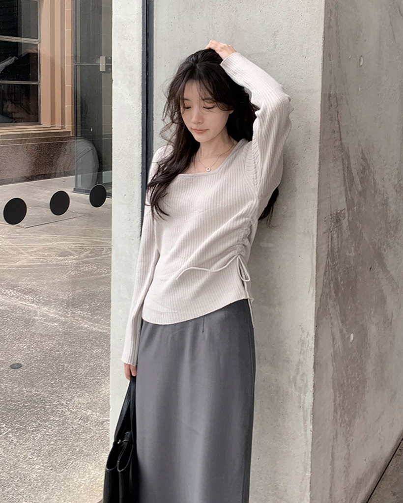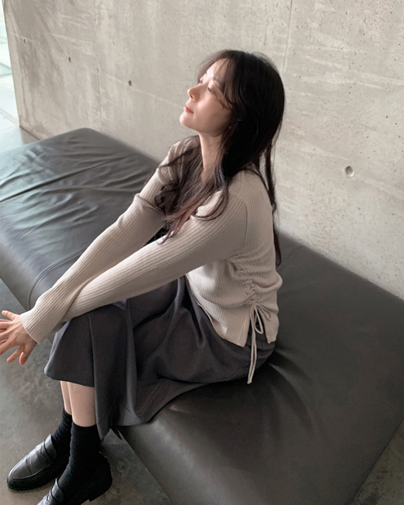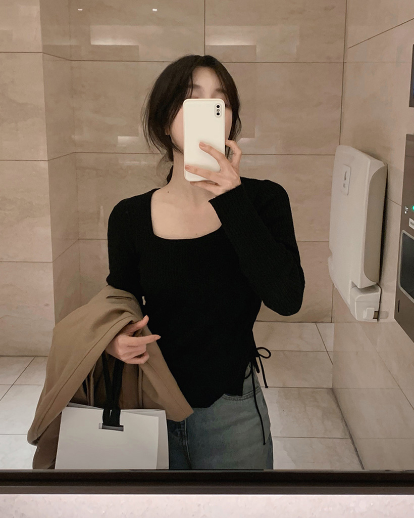 #SLOWMADE. サイドリボンスリムスクエアニット-4color